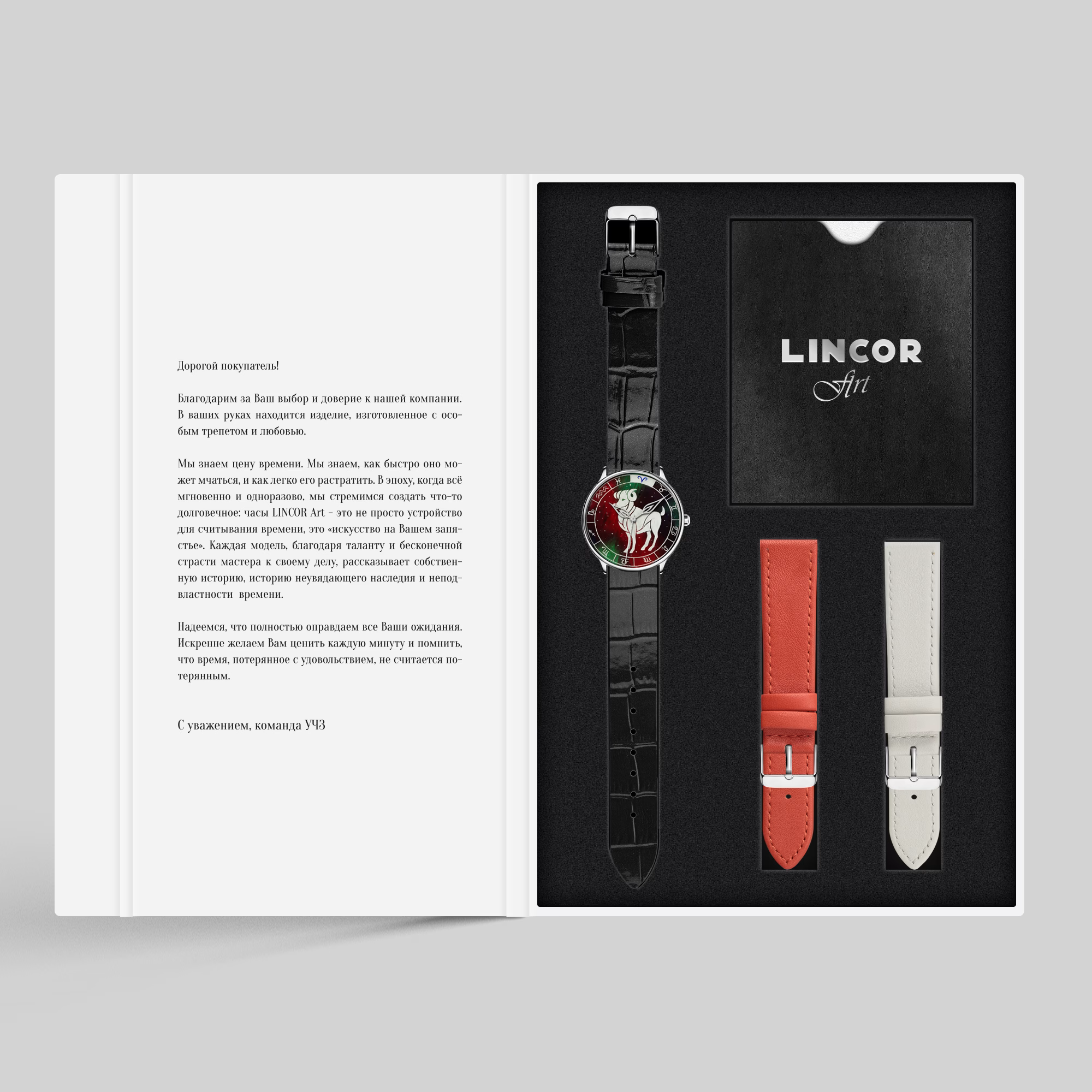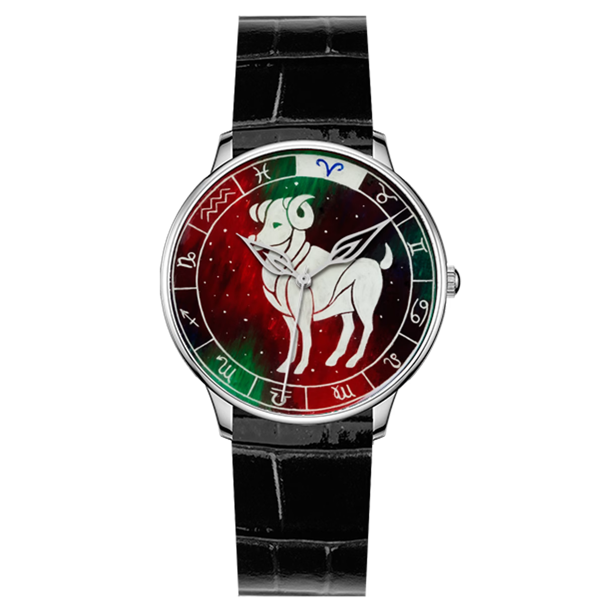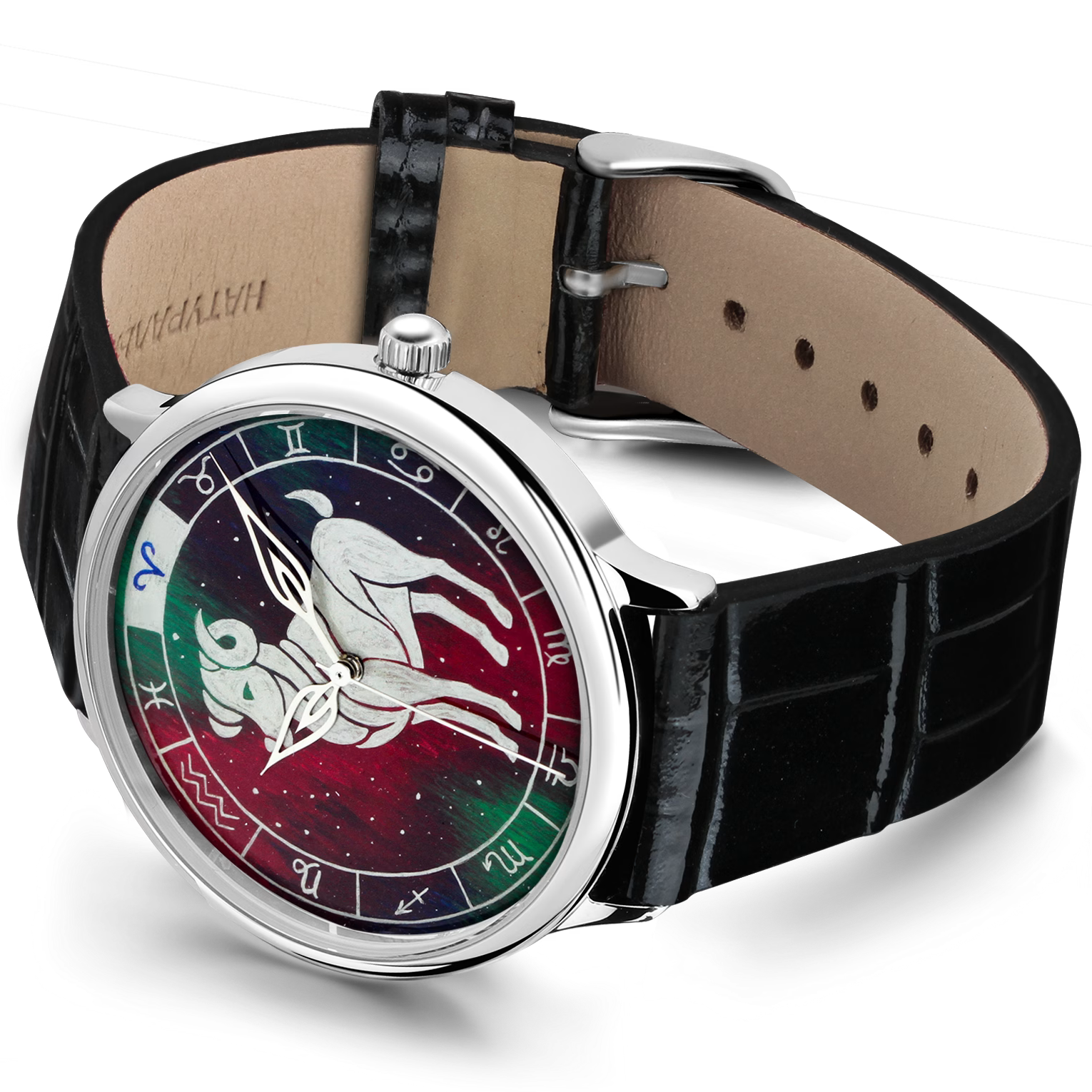 Наручные кварцевые часы Lincor "ART Знаки зодиака - Овен" серебристые с черным ремешком