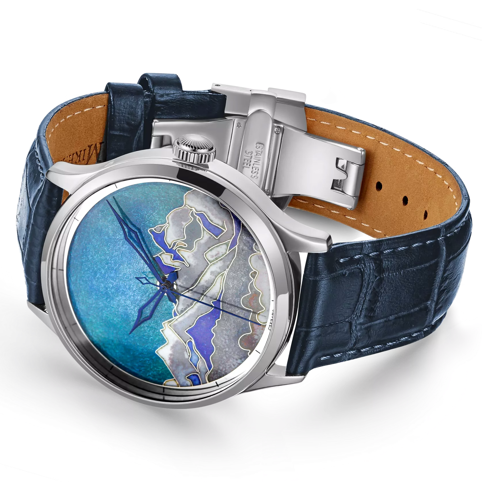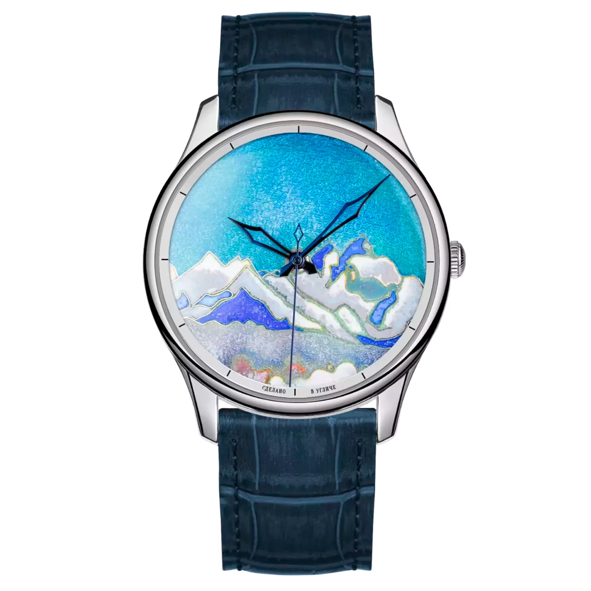 Наручные механические часы Lincor "ART Соло" с автоподзаводом, серебристые с темно-голубым ремешком