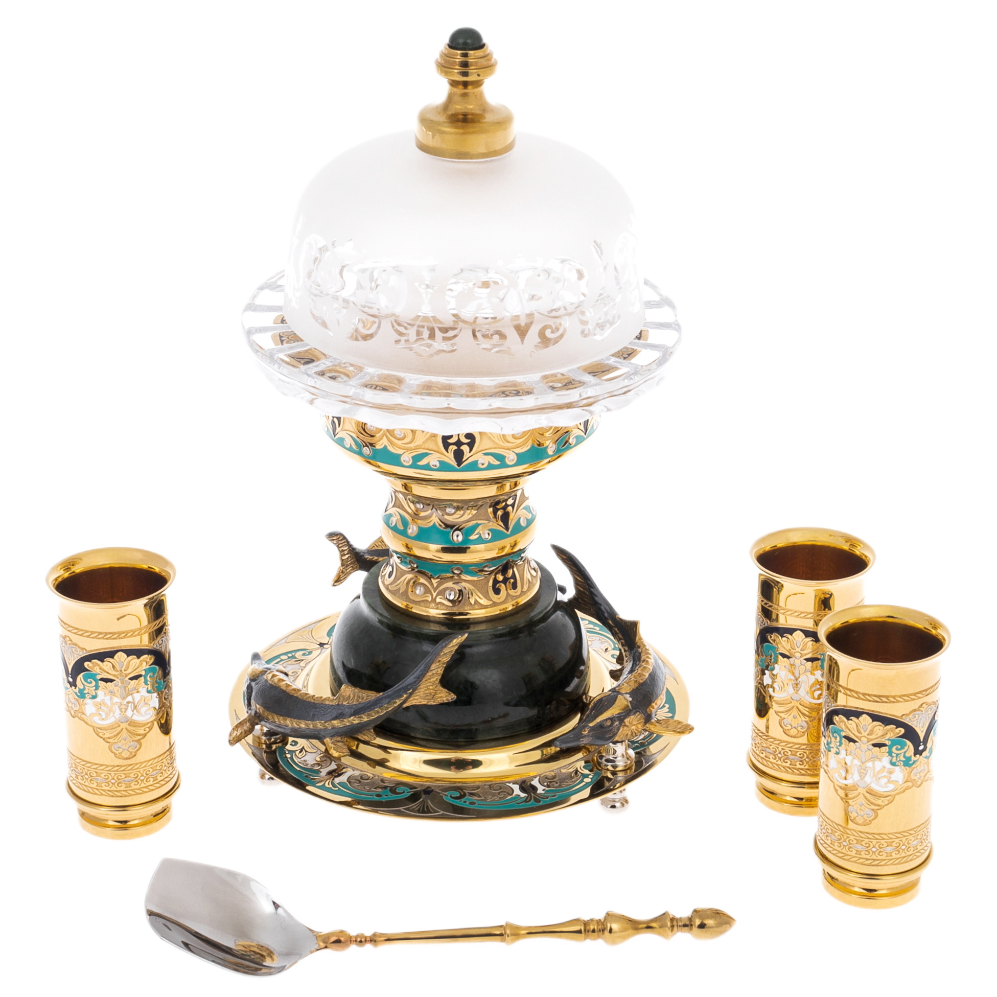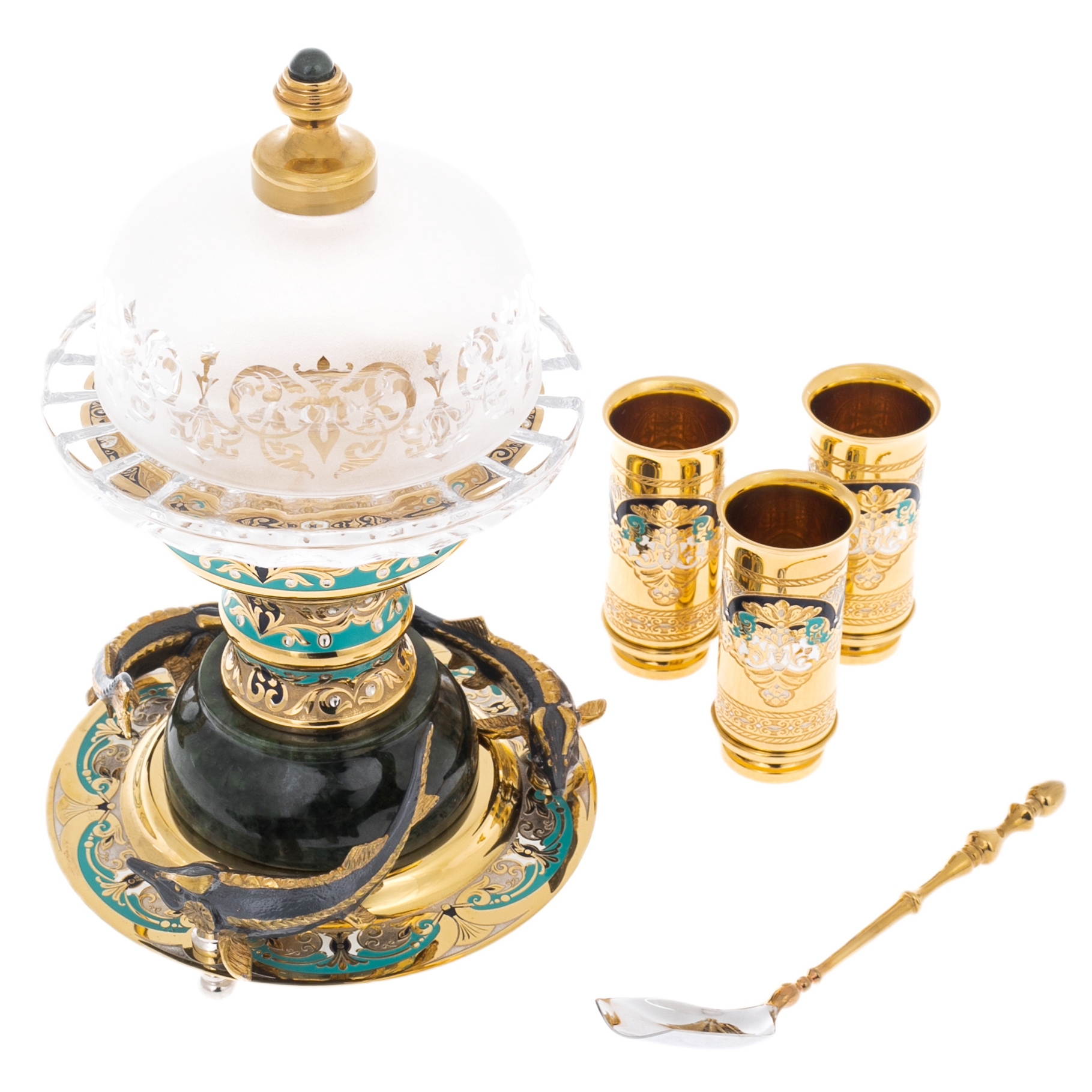 Набор для водки "Дары Нептуна" на нефрите, на 3 персоны, Златоуст