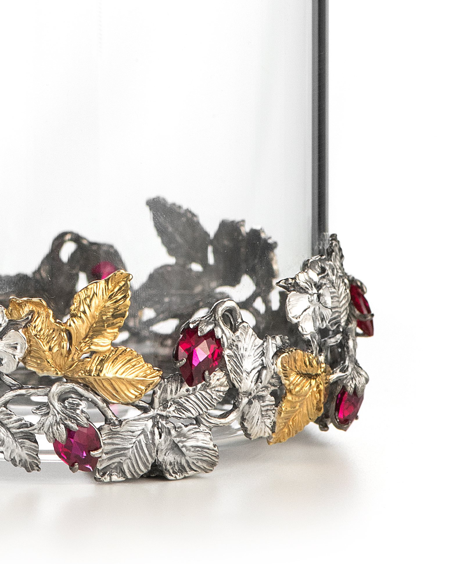 Вазочка для чая "Земляника" с серебром и корундами