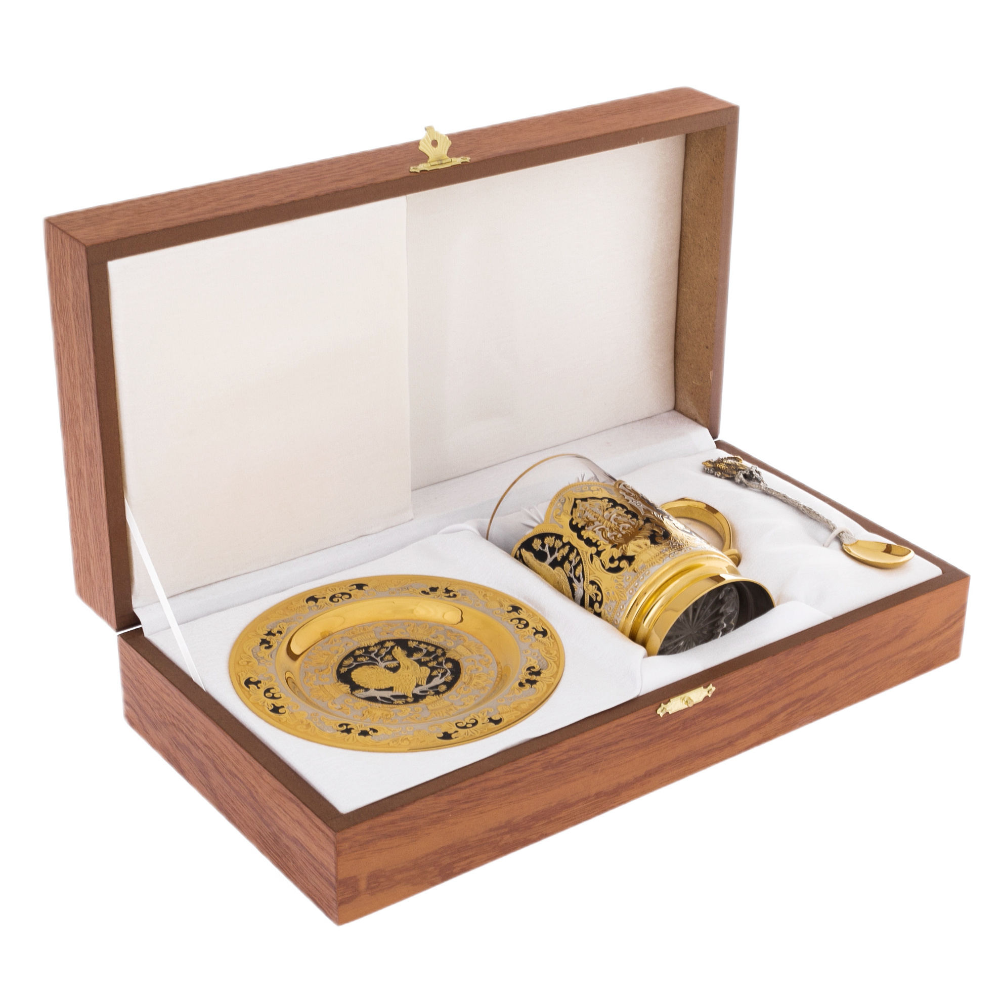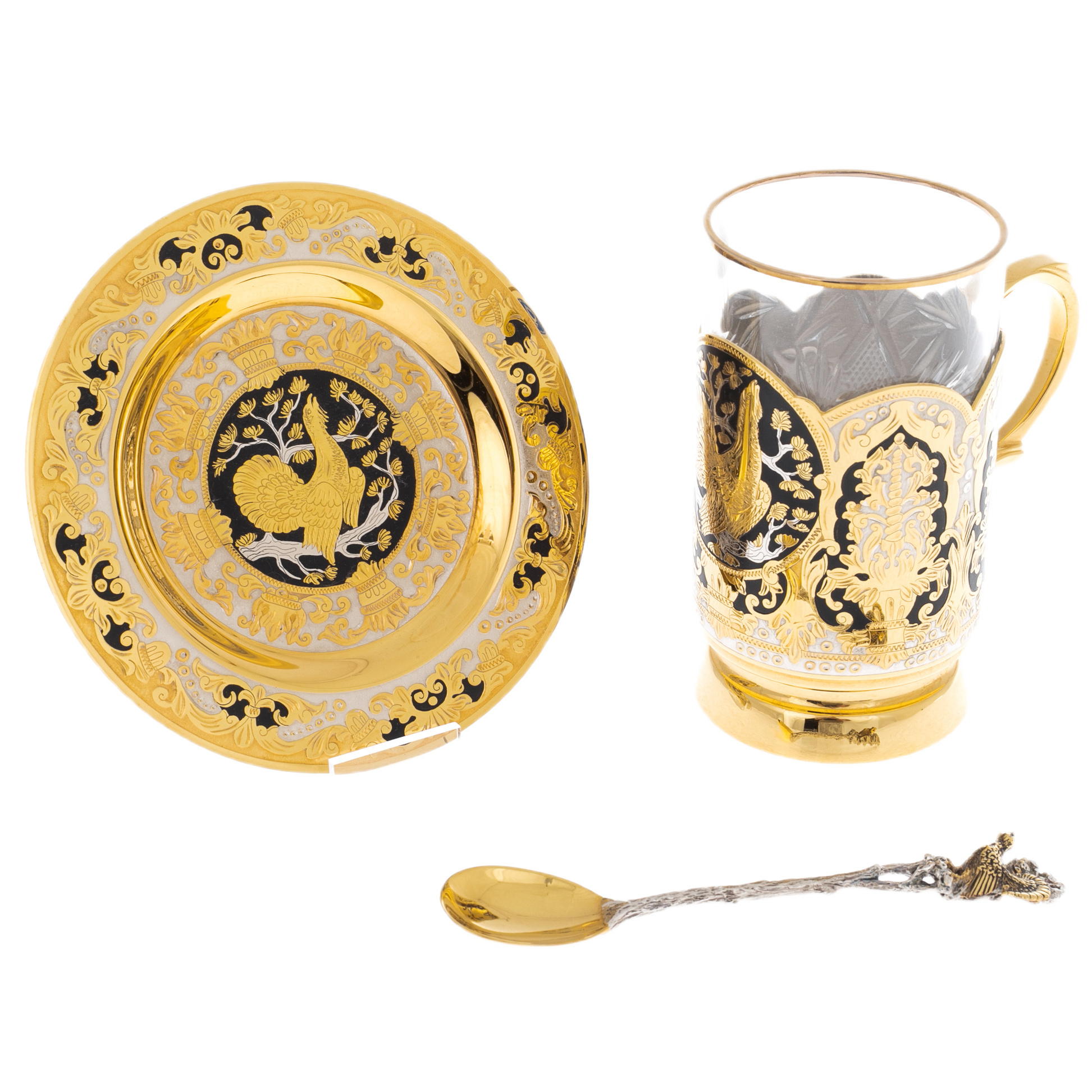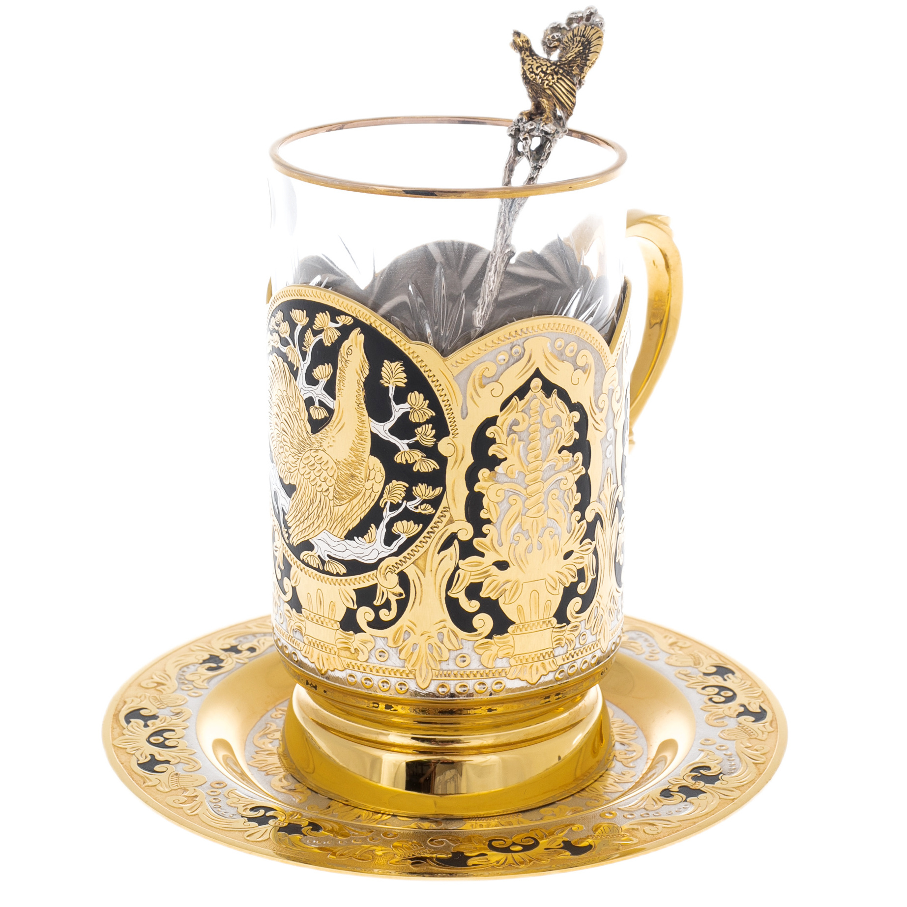Комплектация: подстаканник, чайная ложка, блюдце.