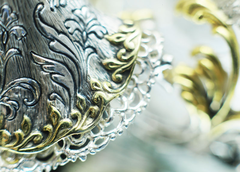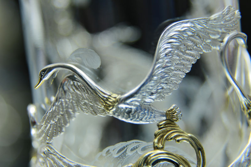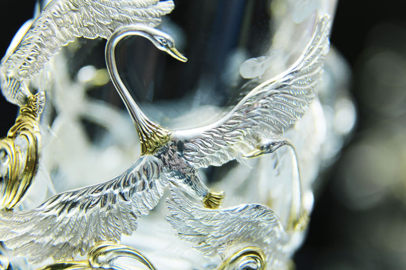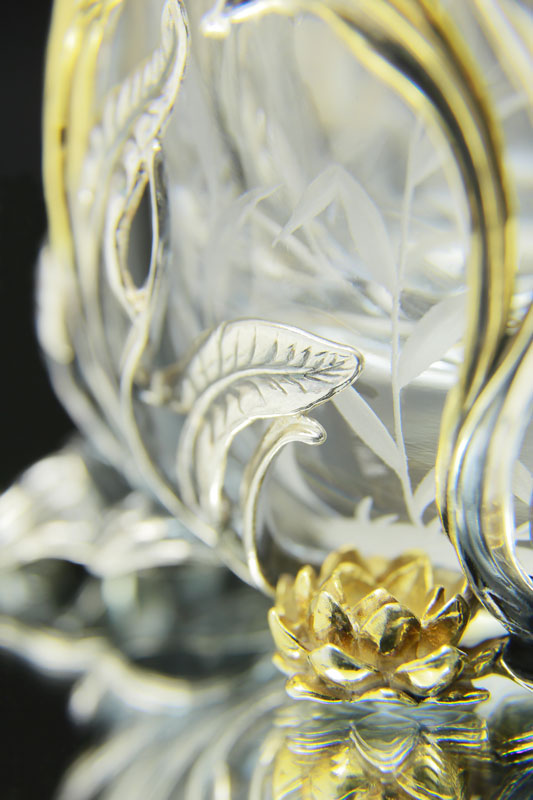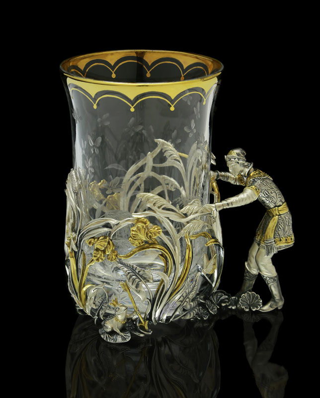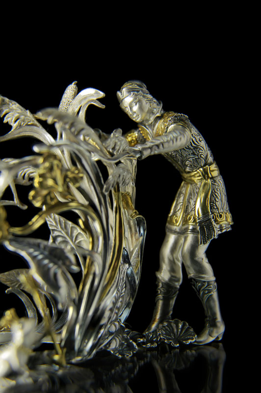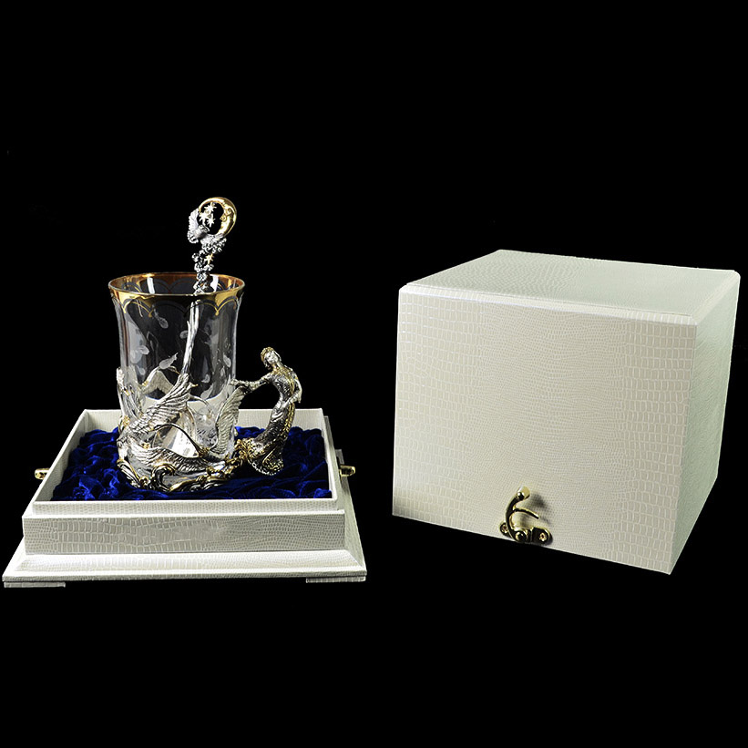 Коллекция чайных чашек из серебра "Царевна лягушка" на 2 персоны, с ложками