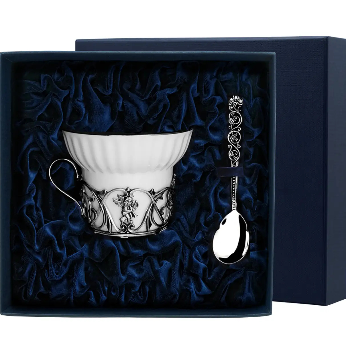 Чайная чашка из серебра "Ангел" с ложкой