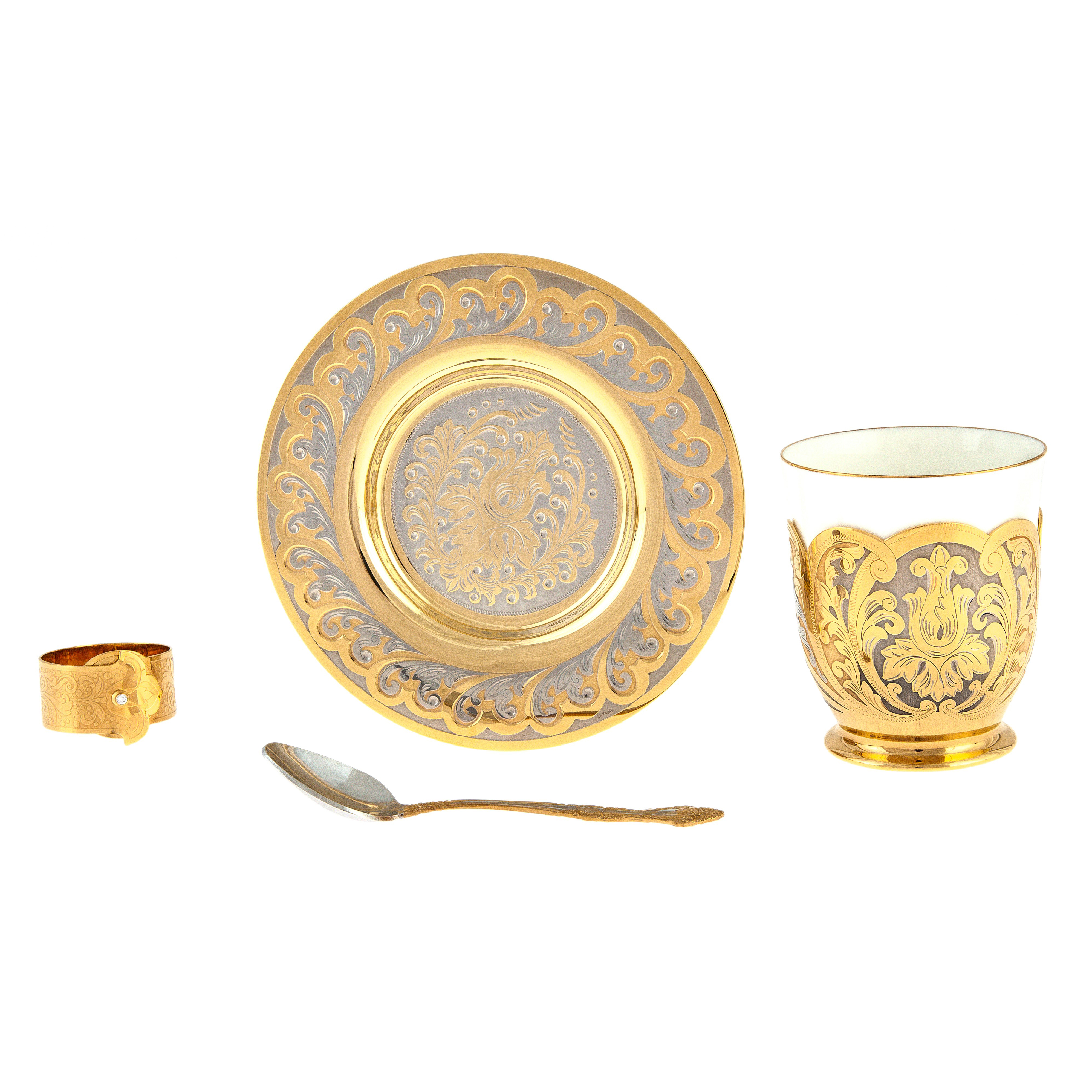 Комплектация:подстаканник, стакан, блюдо, чайная ложка, салфетница.