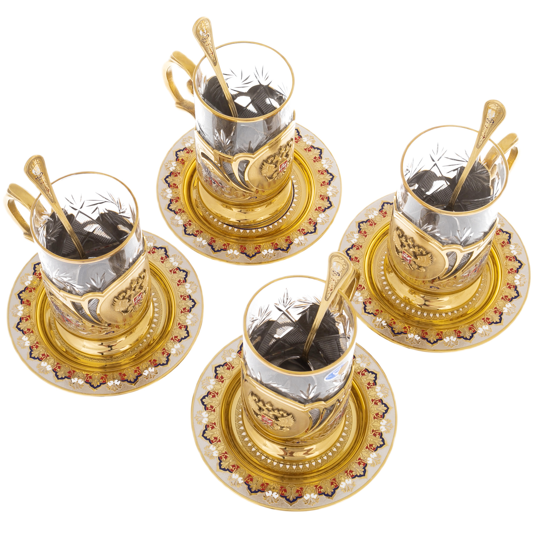 Чайный набор "Герб РФ" на 4 персоны, Златоуст