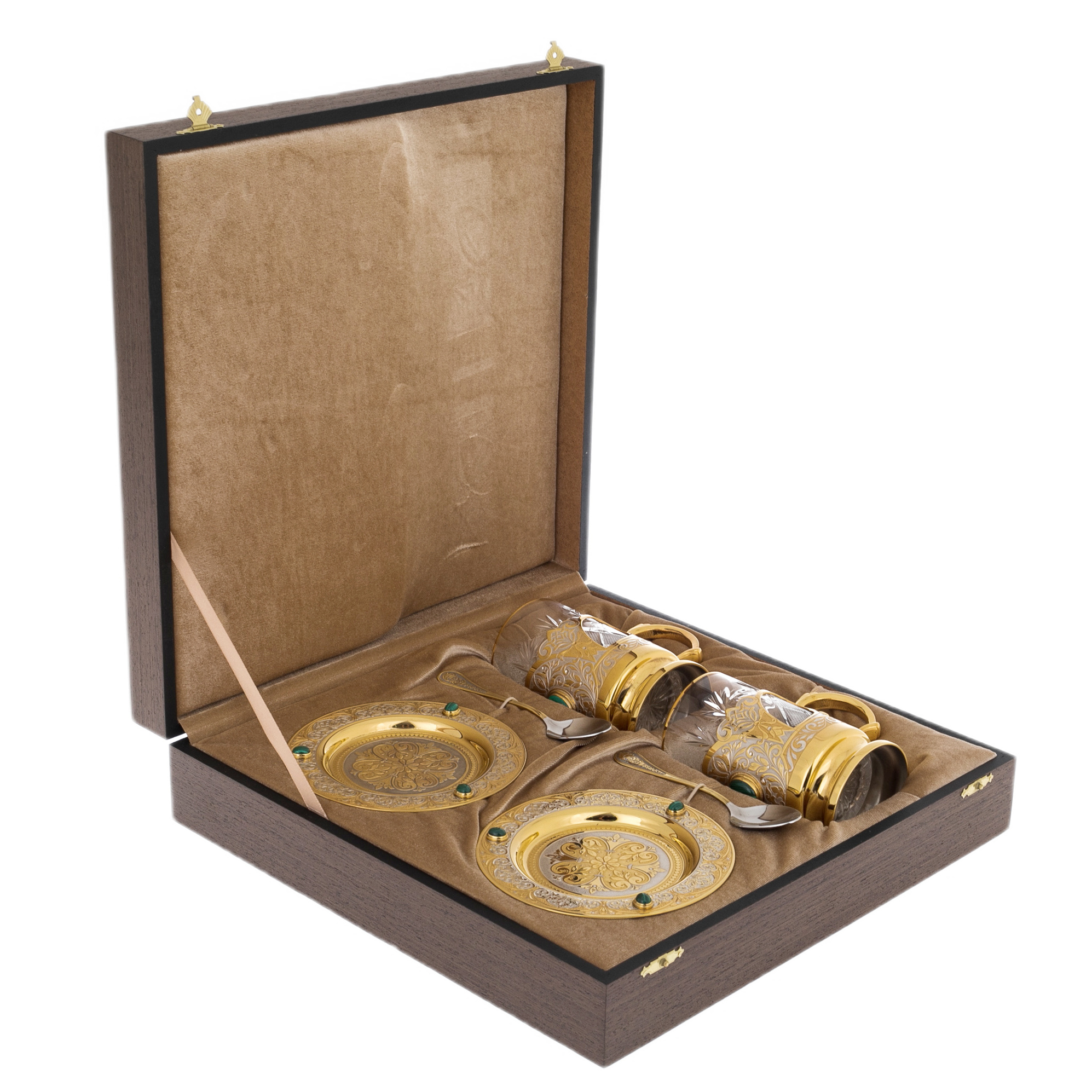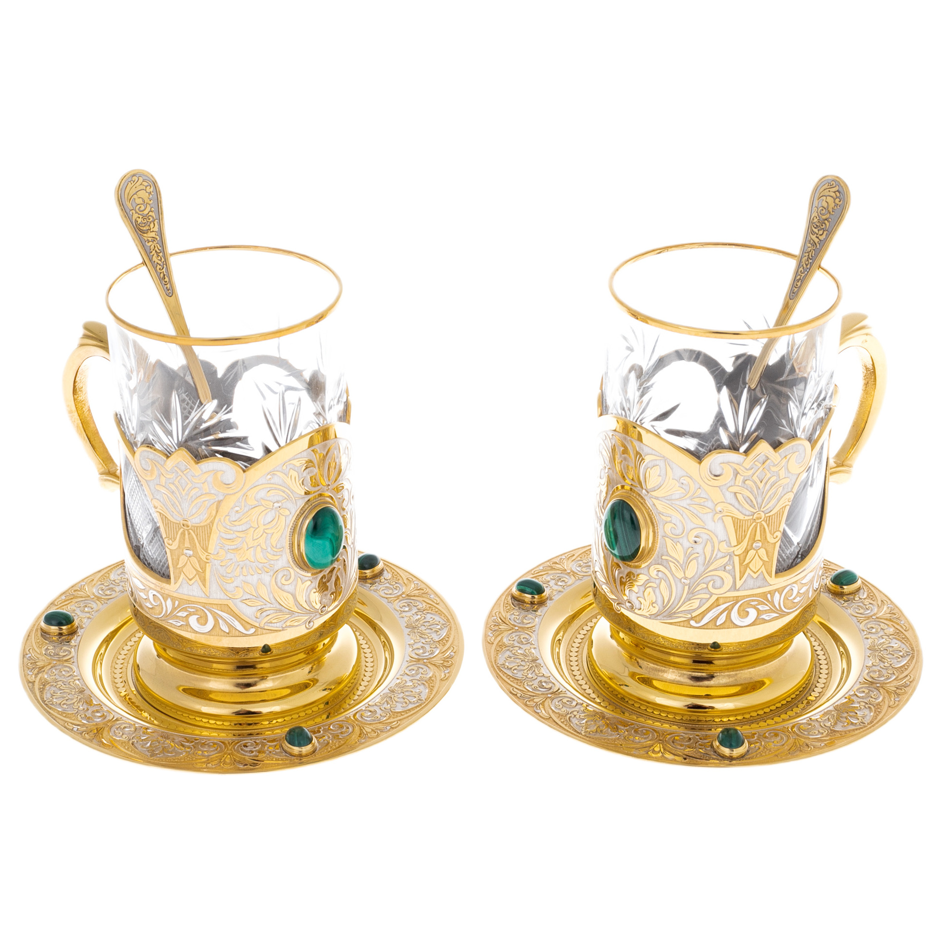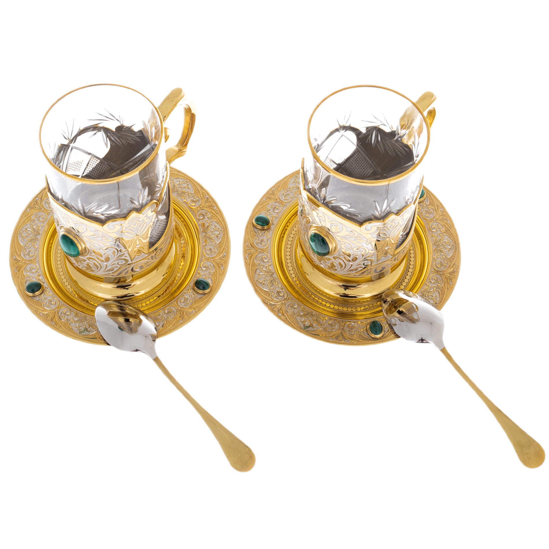Комплектация: 2 подстаканника, 2 блюдца, 2 ложечки.
