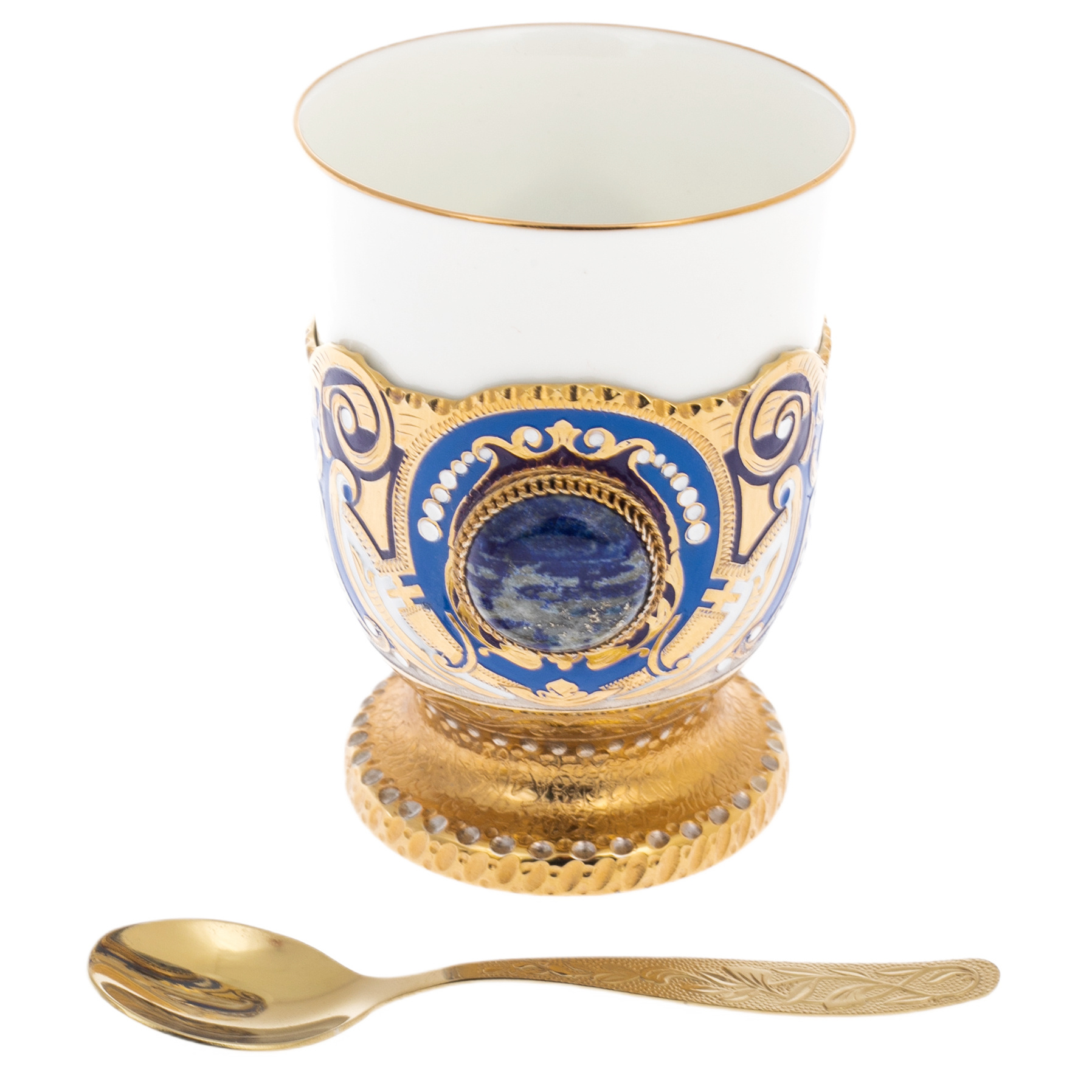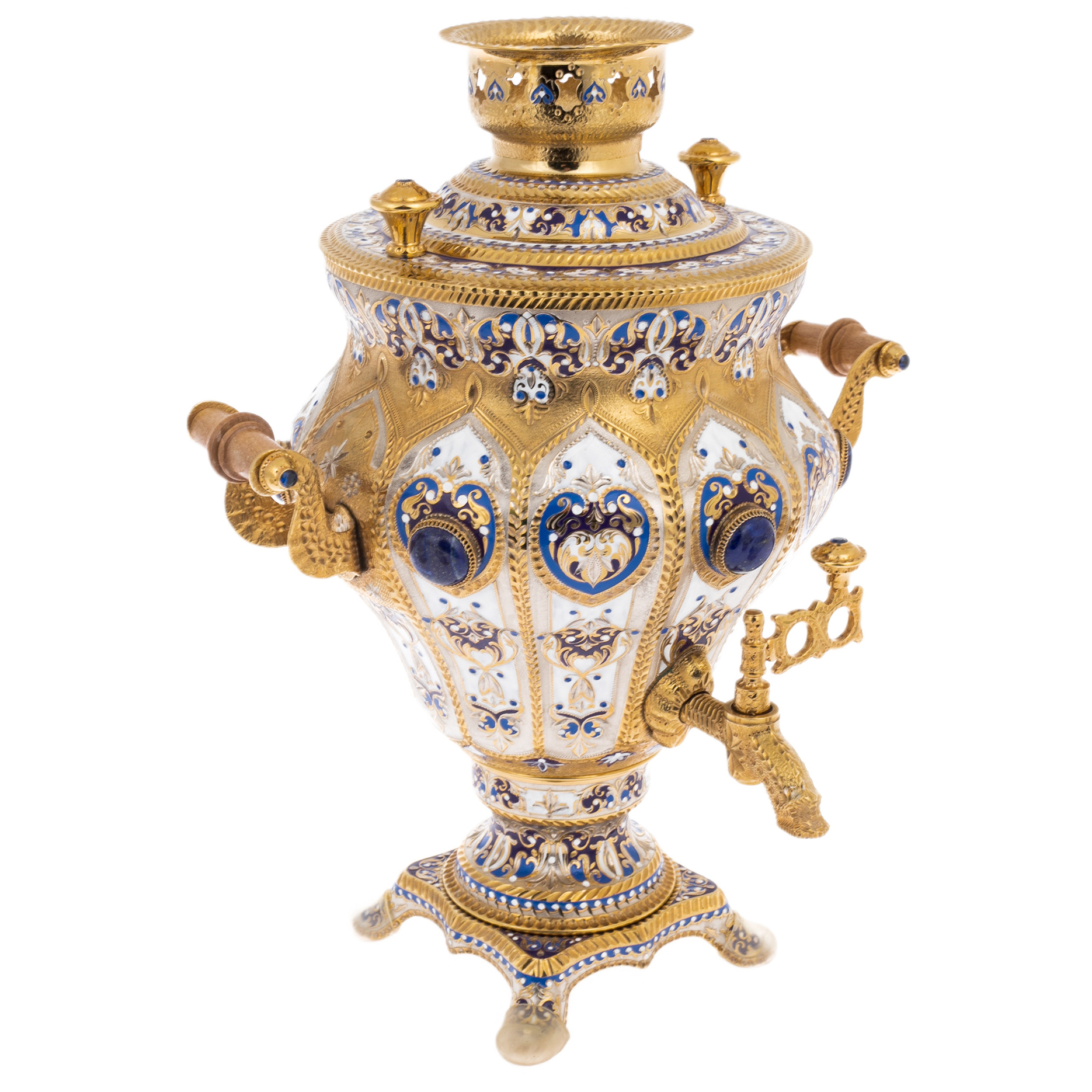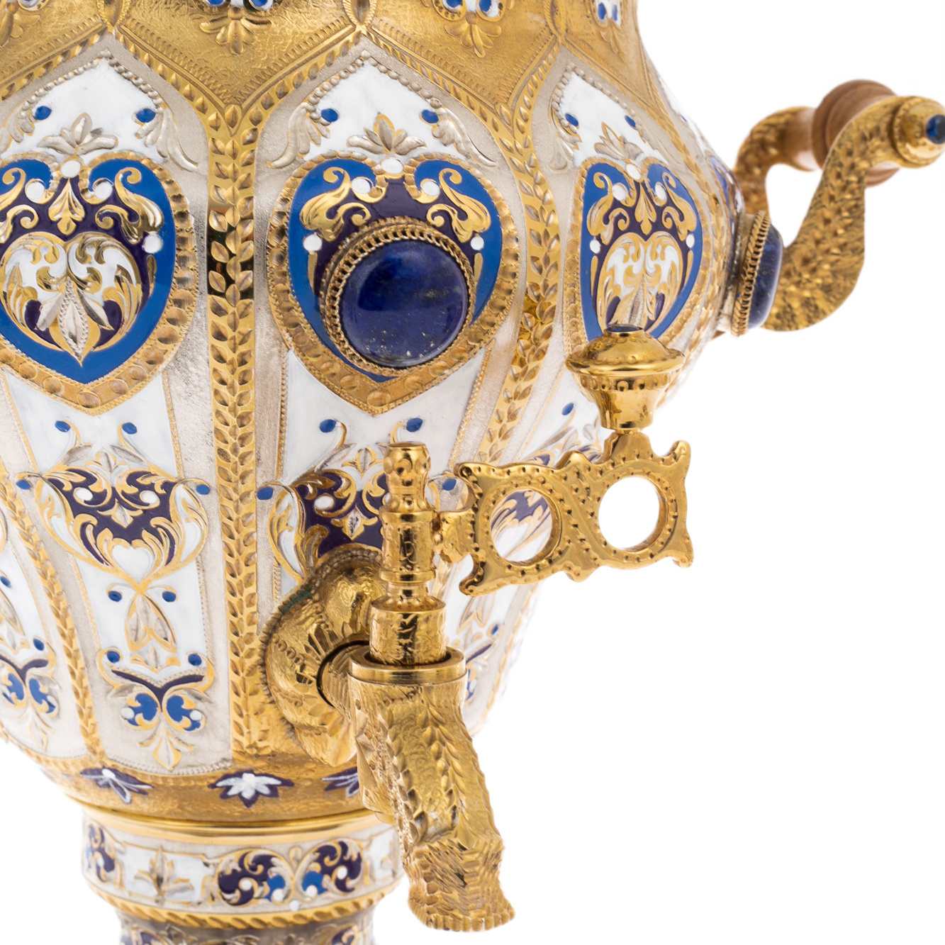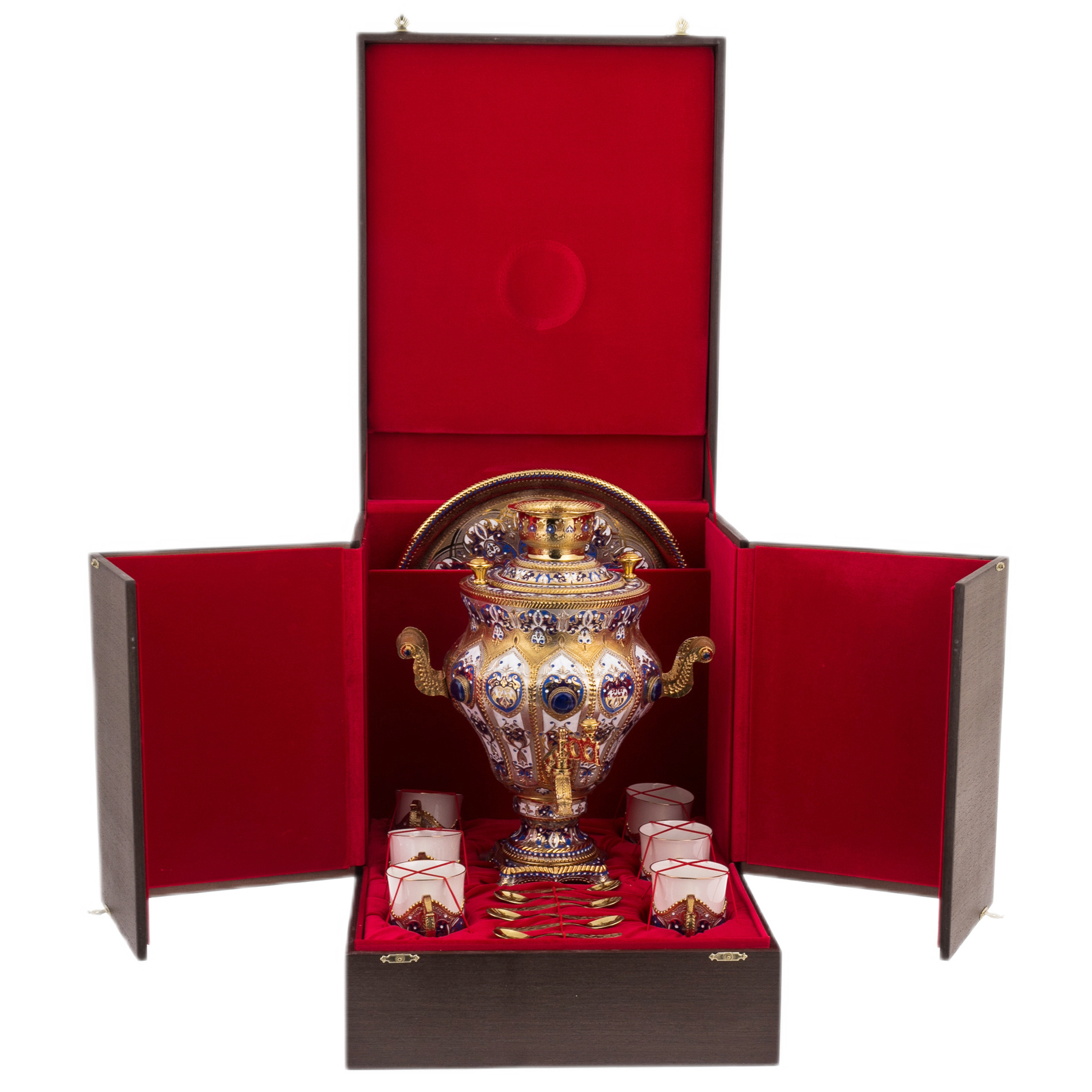 Чайный набор с лазуритом "Самоварный домик" на 6 персон, 14 предметов, Златоуст