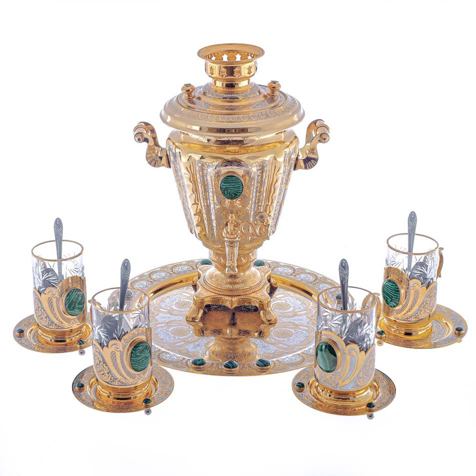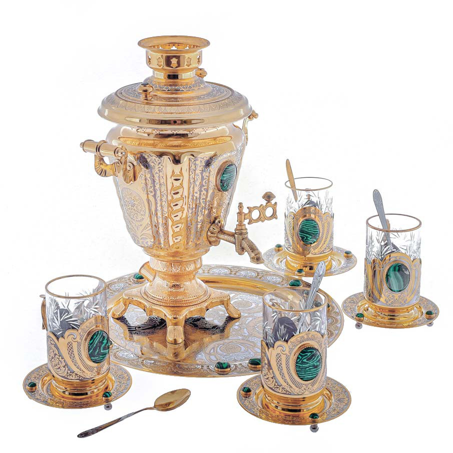Чайный набор с самоваром "Царский" на 4 персоны, Златоуст
