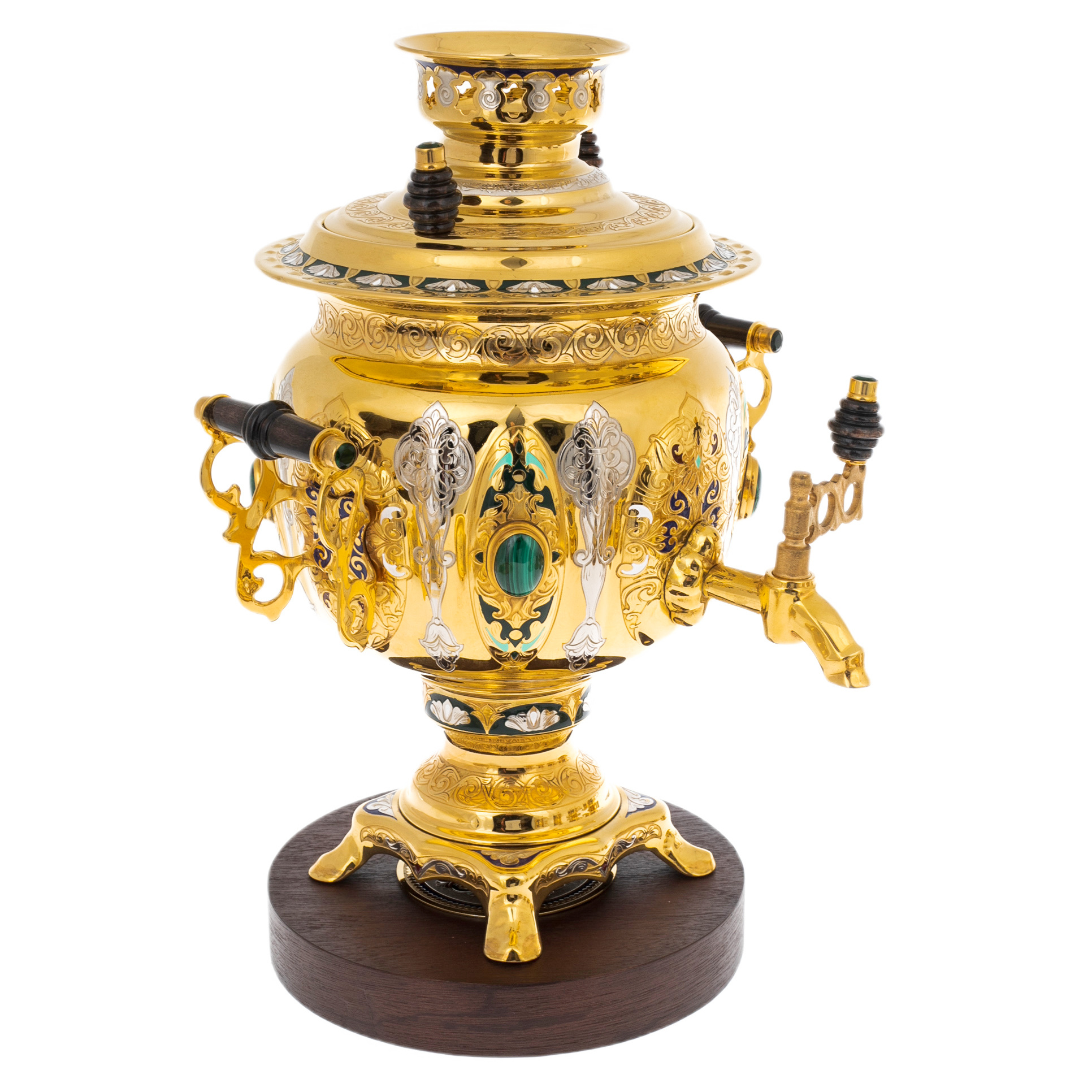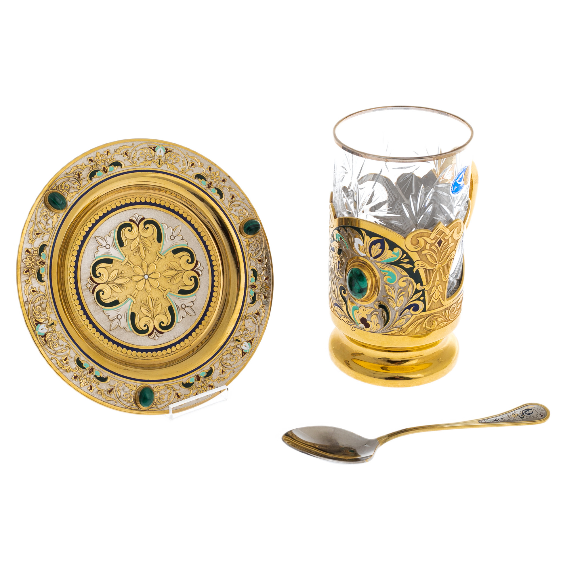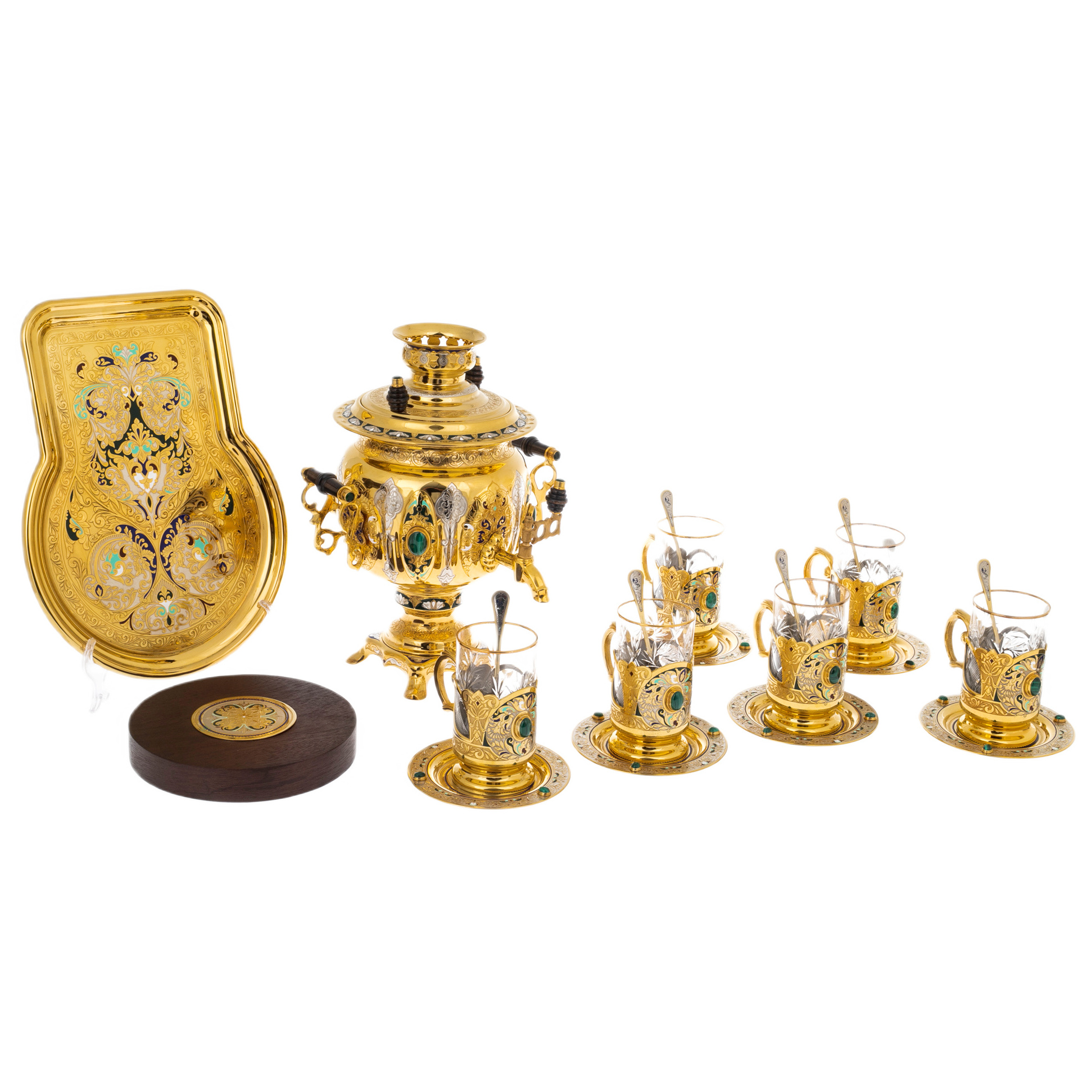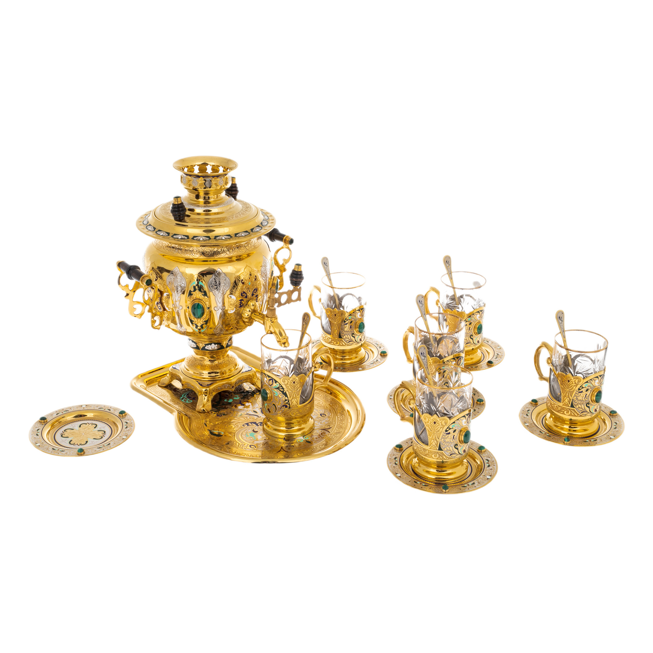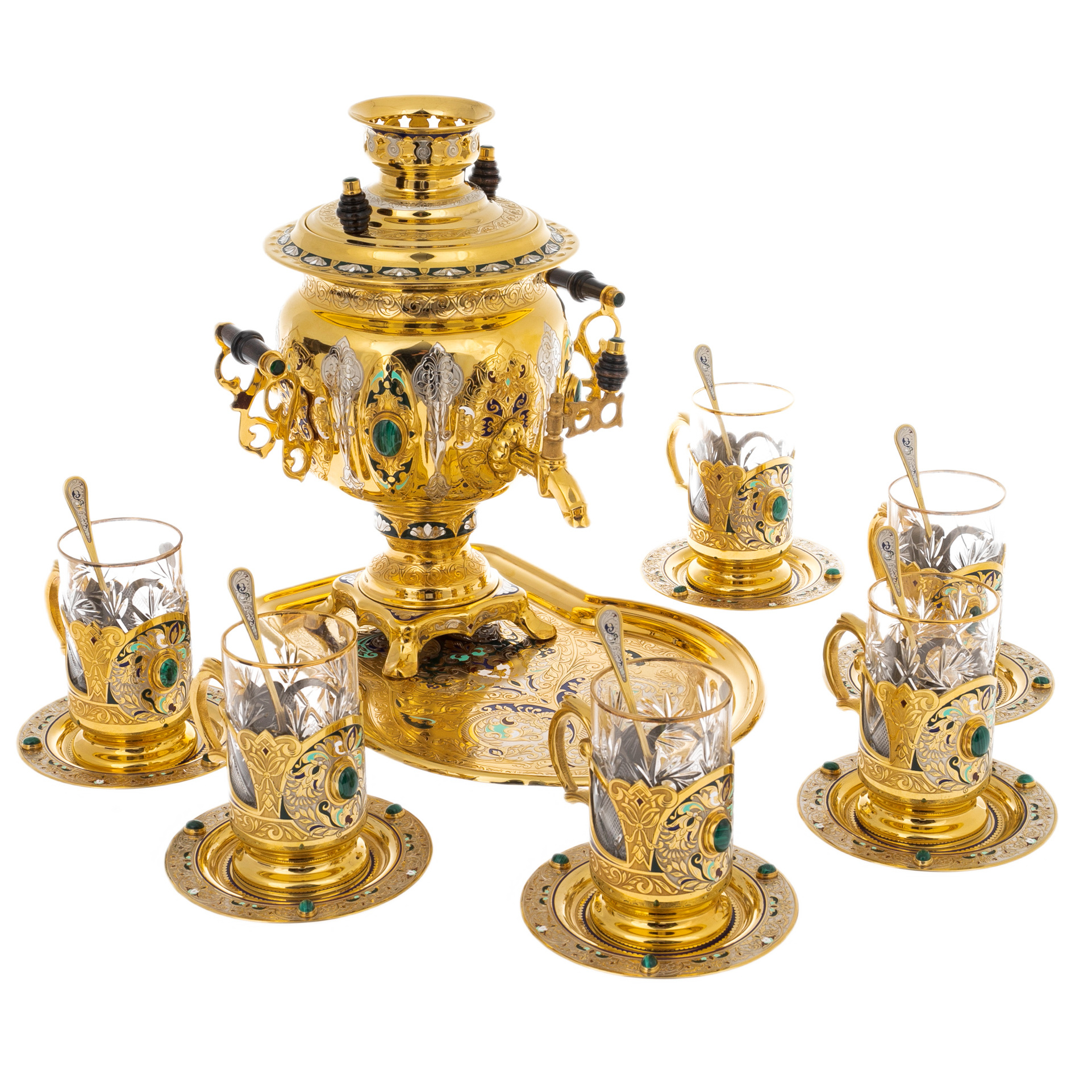 Чайный набор с самоваром "Малахит" на 6 персон, 21 предмет, Златоуст