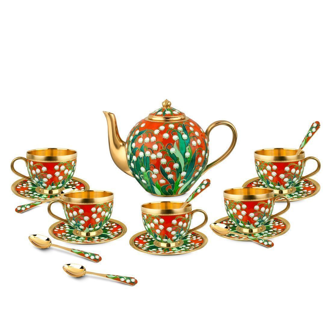Чайный сервиз "Шедевры перегородчатой эмали" из серебра с эмалью, на 5 персон