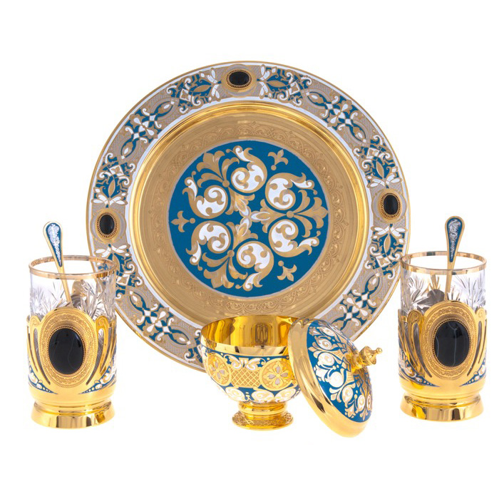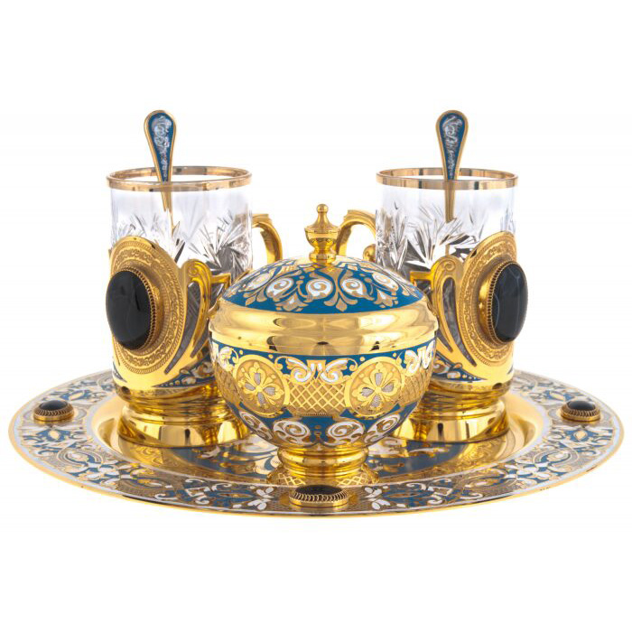 Чайный набор "Чёрный агат" на 2 персоны, с эмалями, Златоуст