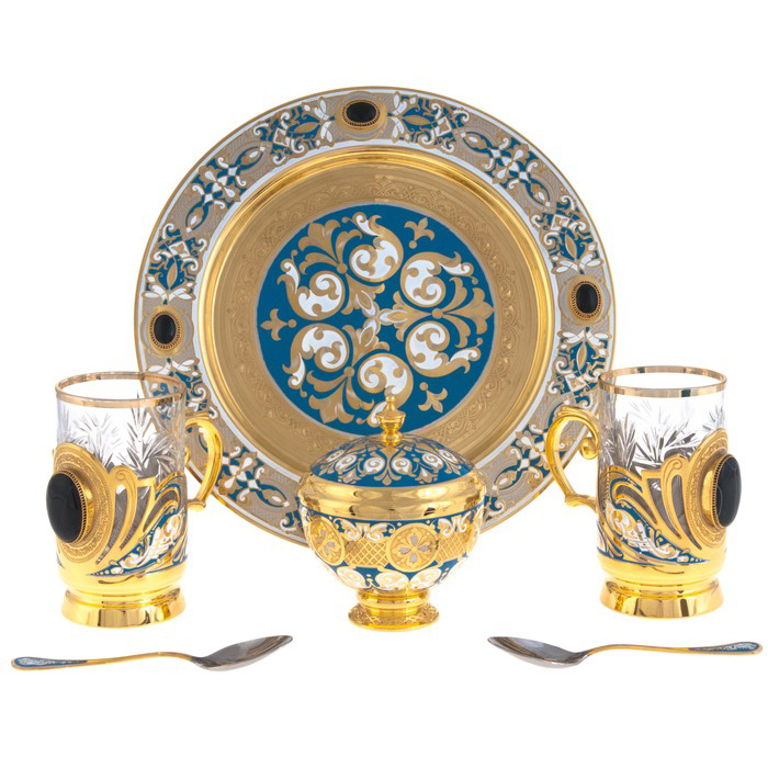 Комплектация:подстаканники - 2 шт, ложки - 2 шт, сахарница, поднос.