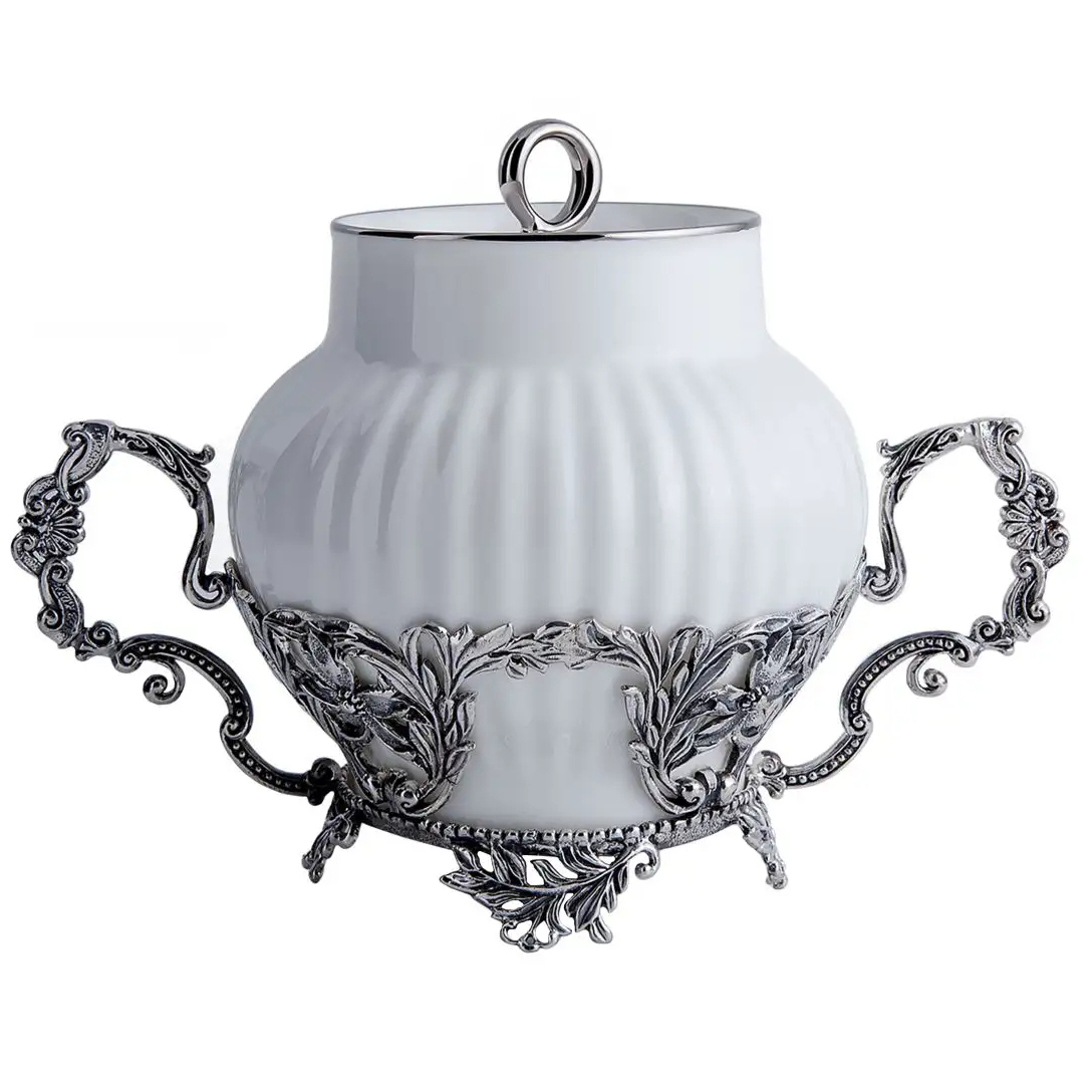 Серебряный чайный набор "Симфония": вилка для лимона, совок для сахара, сахарница, чашка