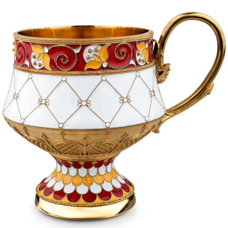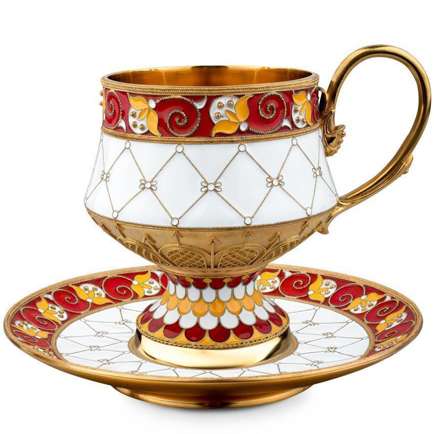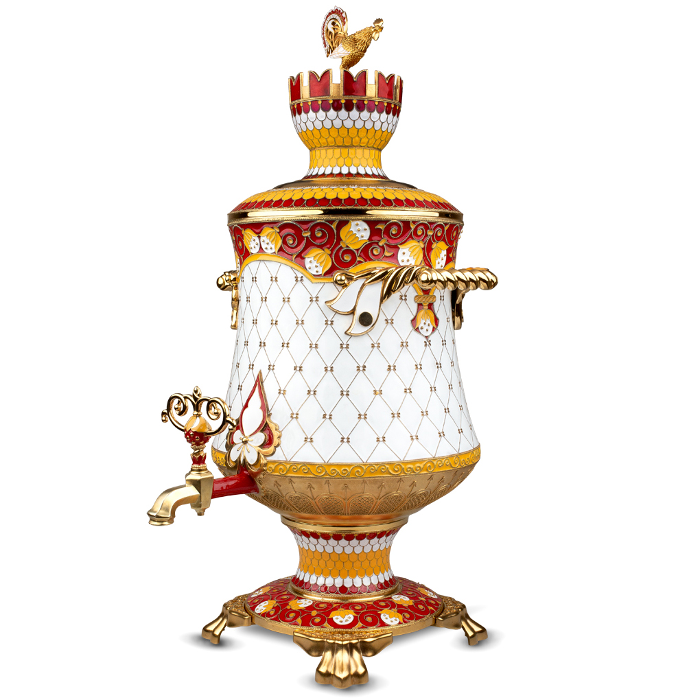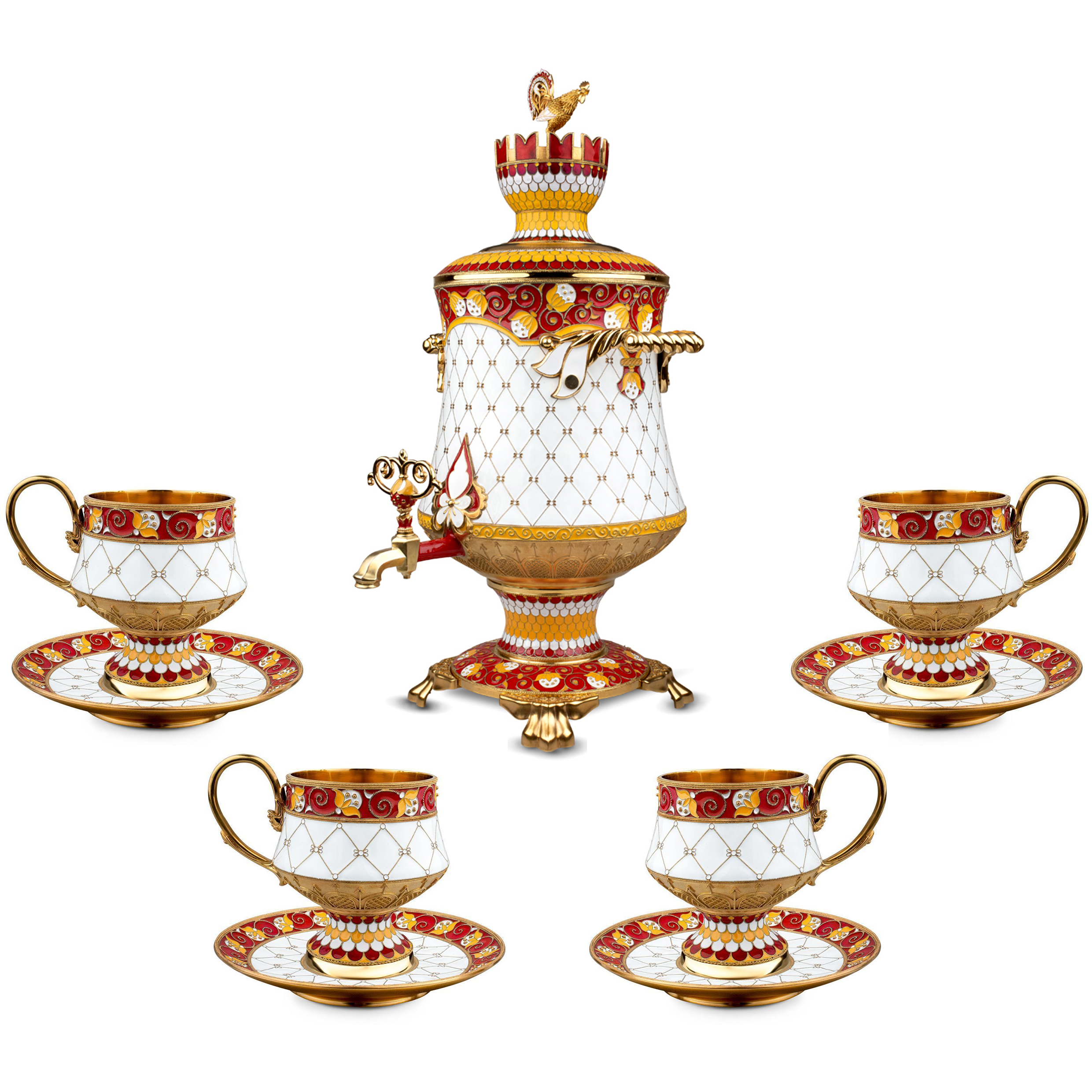 Сервиз чайный серебряный с самоваром "Золотой петушок" на 4 персоны