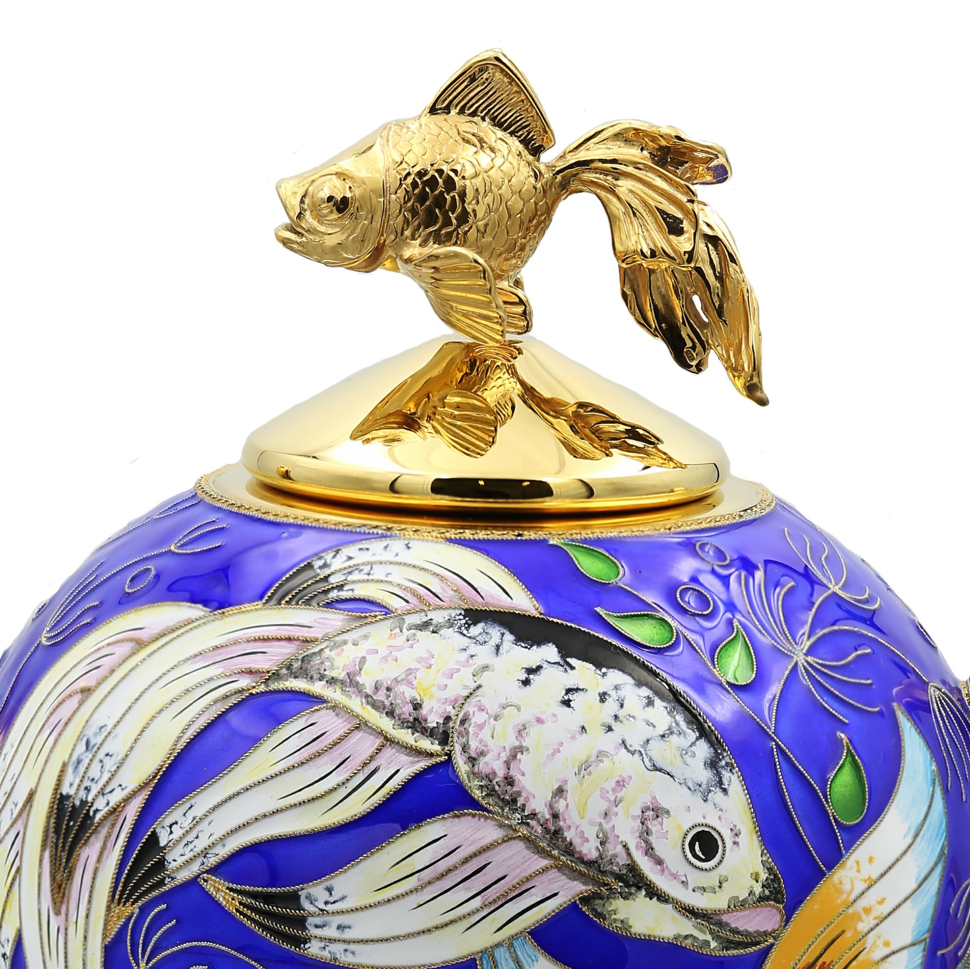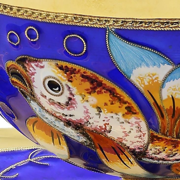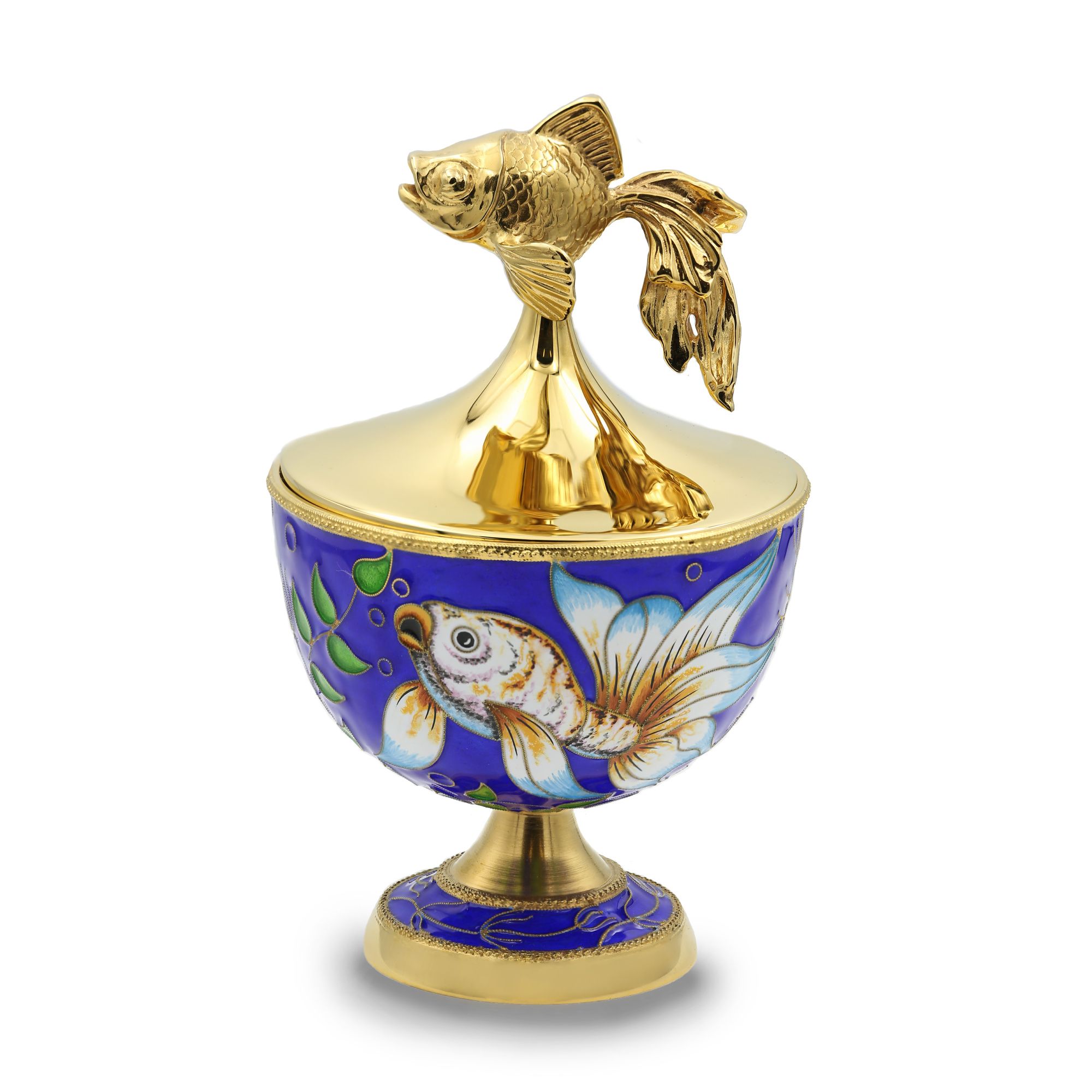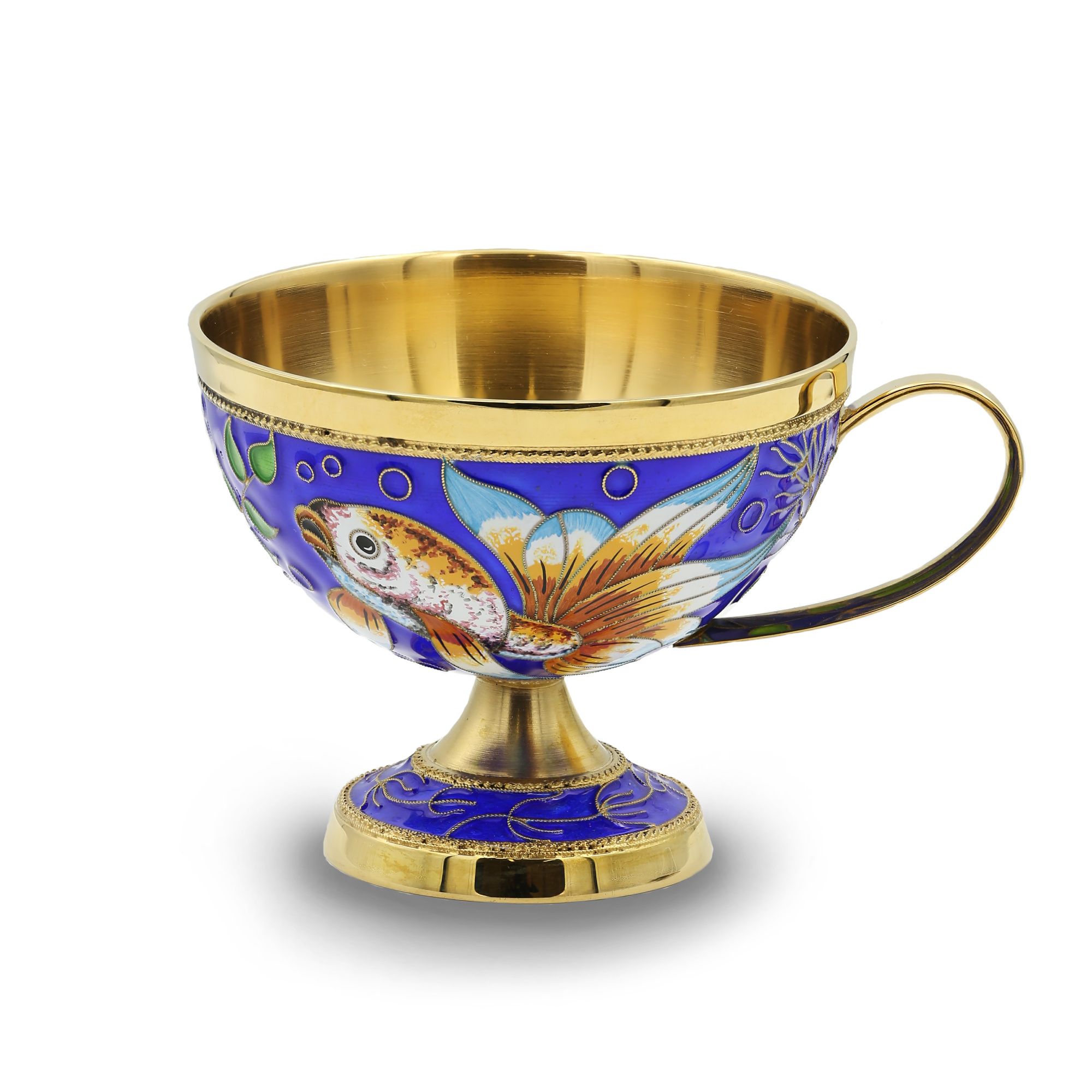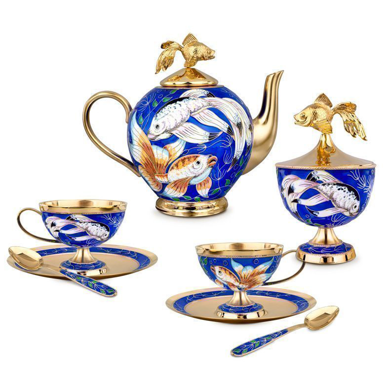 Сервиз чайный серебряный "Золотая рыбка" на 2 персоны, 8 предметов