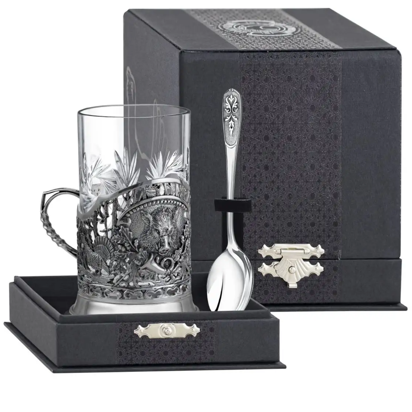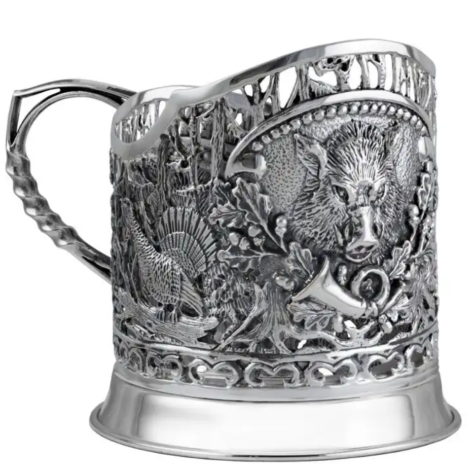 Подстаканник "Кабан" посеребренный с чернением - 1шт. (средний вес 1 х 206 гр. = 206 гр.)