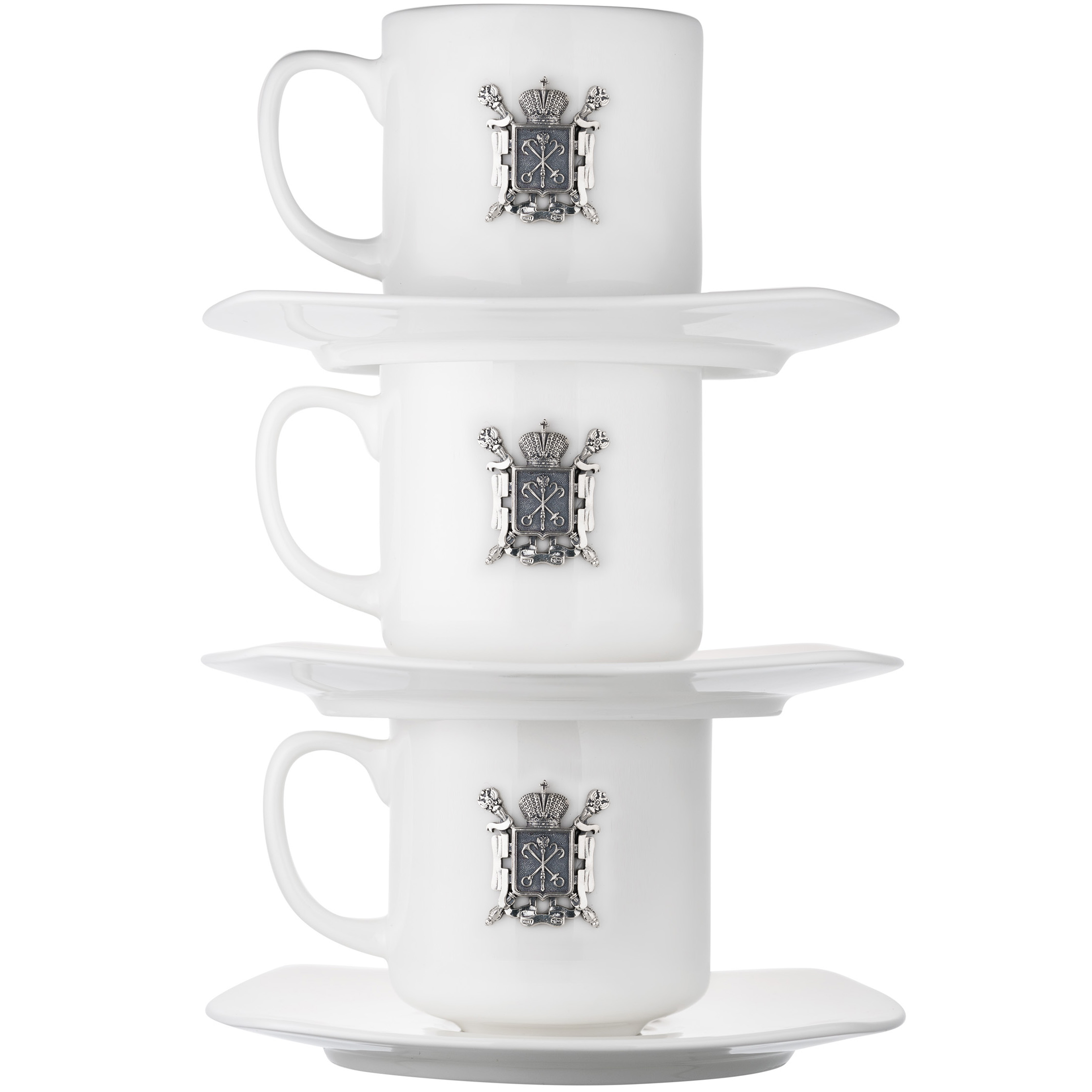 Трио кофейных чашек из фарфора "Петербург" с серебряными накладками