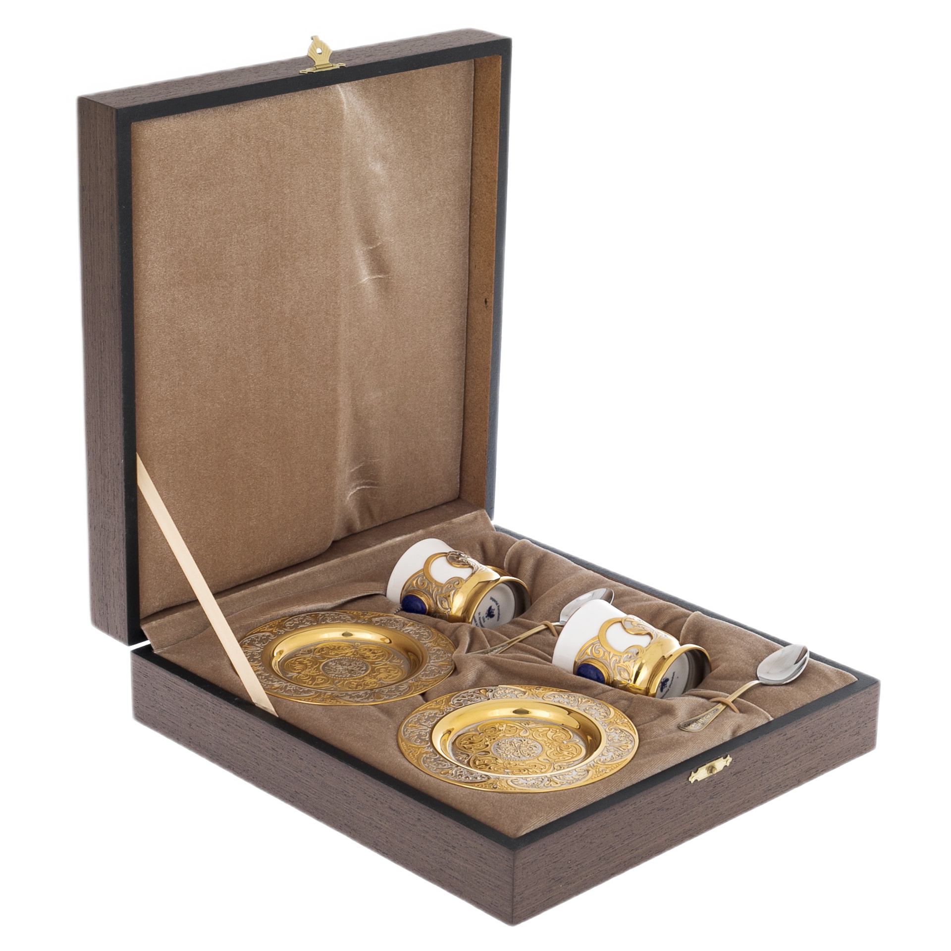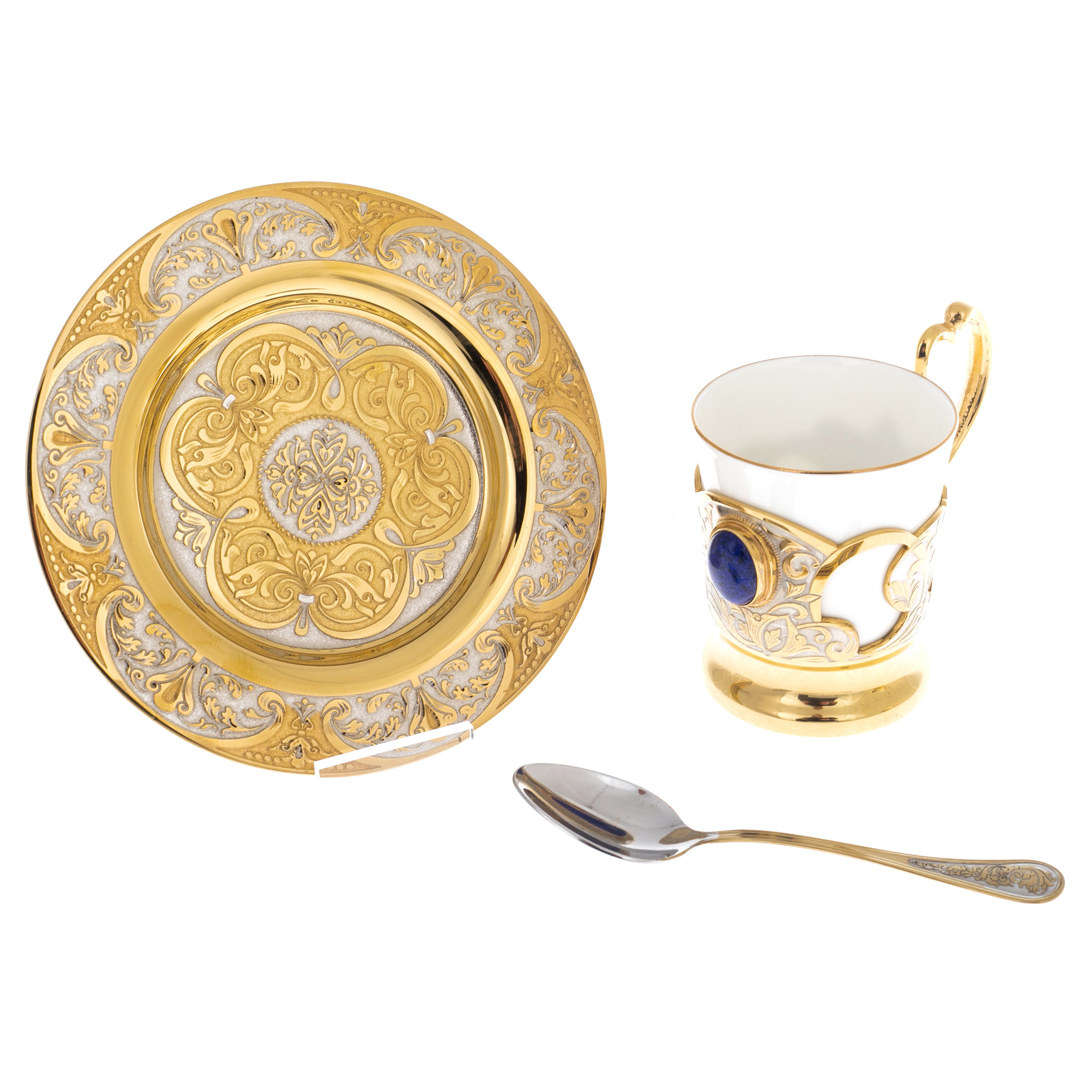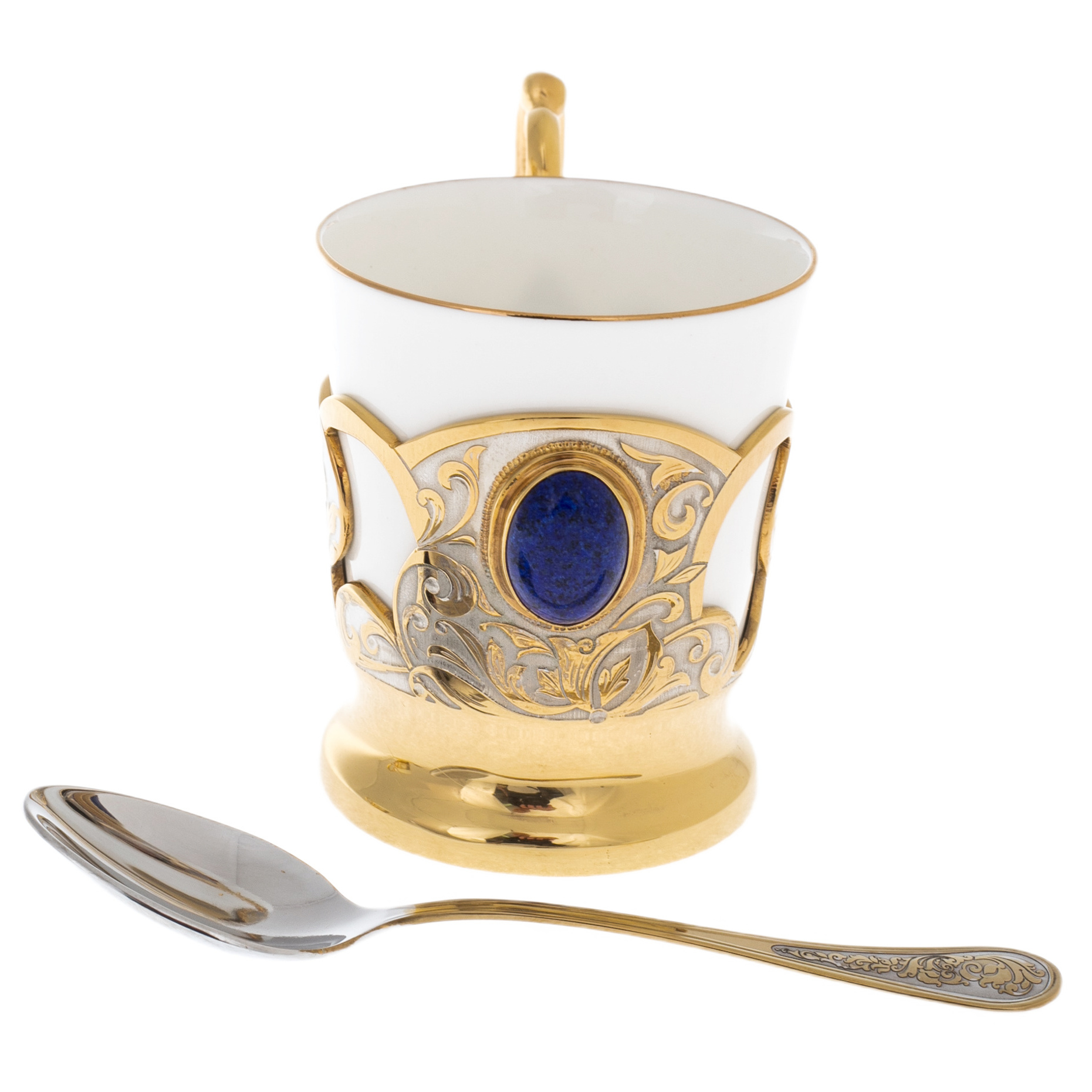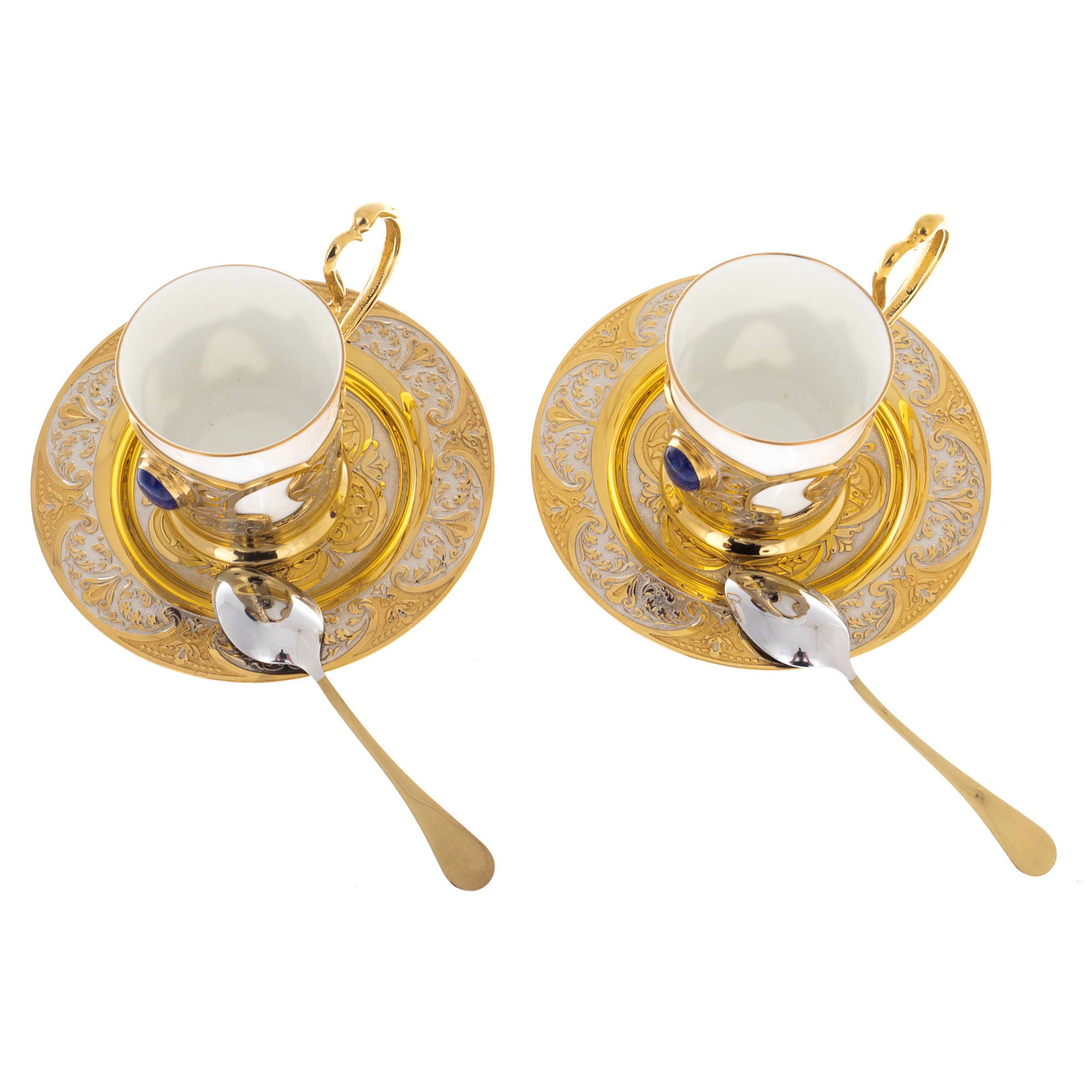 Этот набор — не просто функциональный элемент для кофепития, а предмет, который превращает каждую трапезу в утончённый ритуал. Лазуритовые акценты добавляют глубины и благородства, подчёркивая исключительность вашего выбора. Каждое прикосновение к этому набору напоминает о силе времени и традиций, которые невозможно повторить. Такие изделия достойны того, чтобы передаваться из поколения в поколение, становясь фамильной реликвией, хранящейся в доме истинных ценителей искусства.