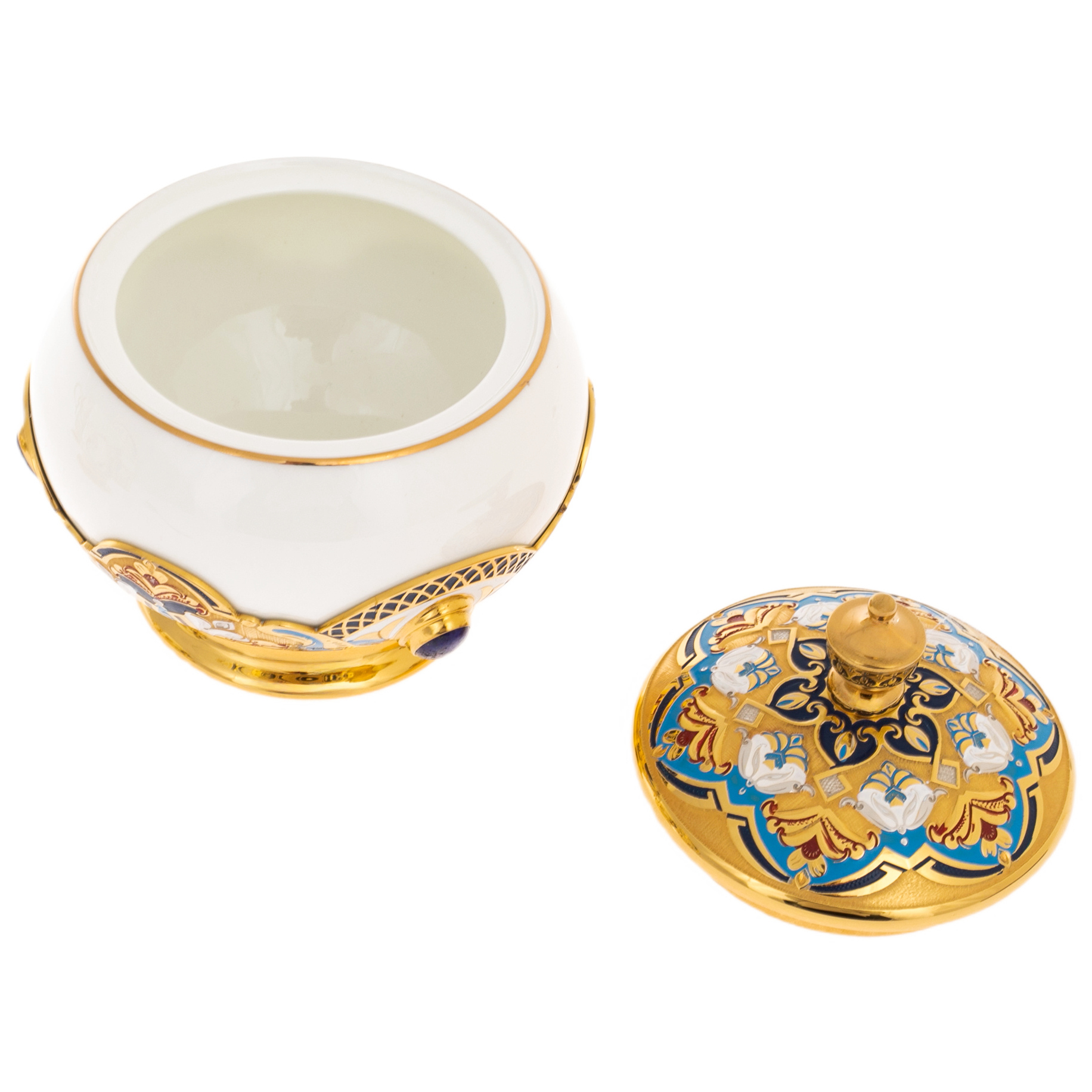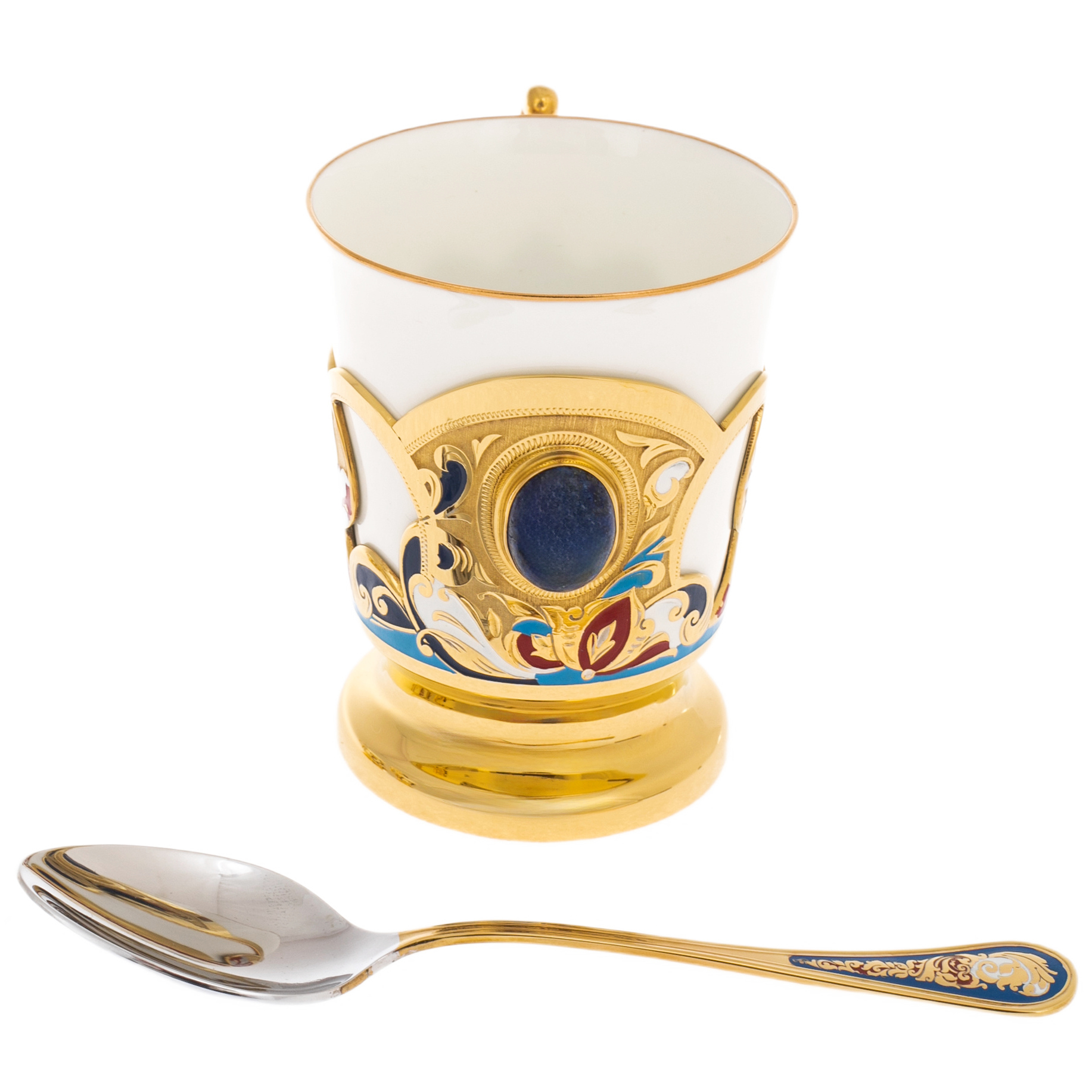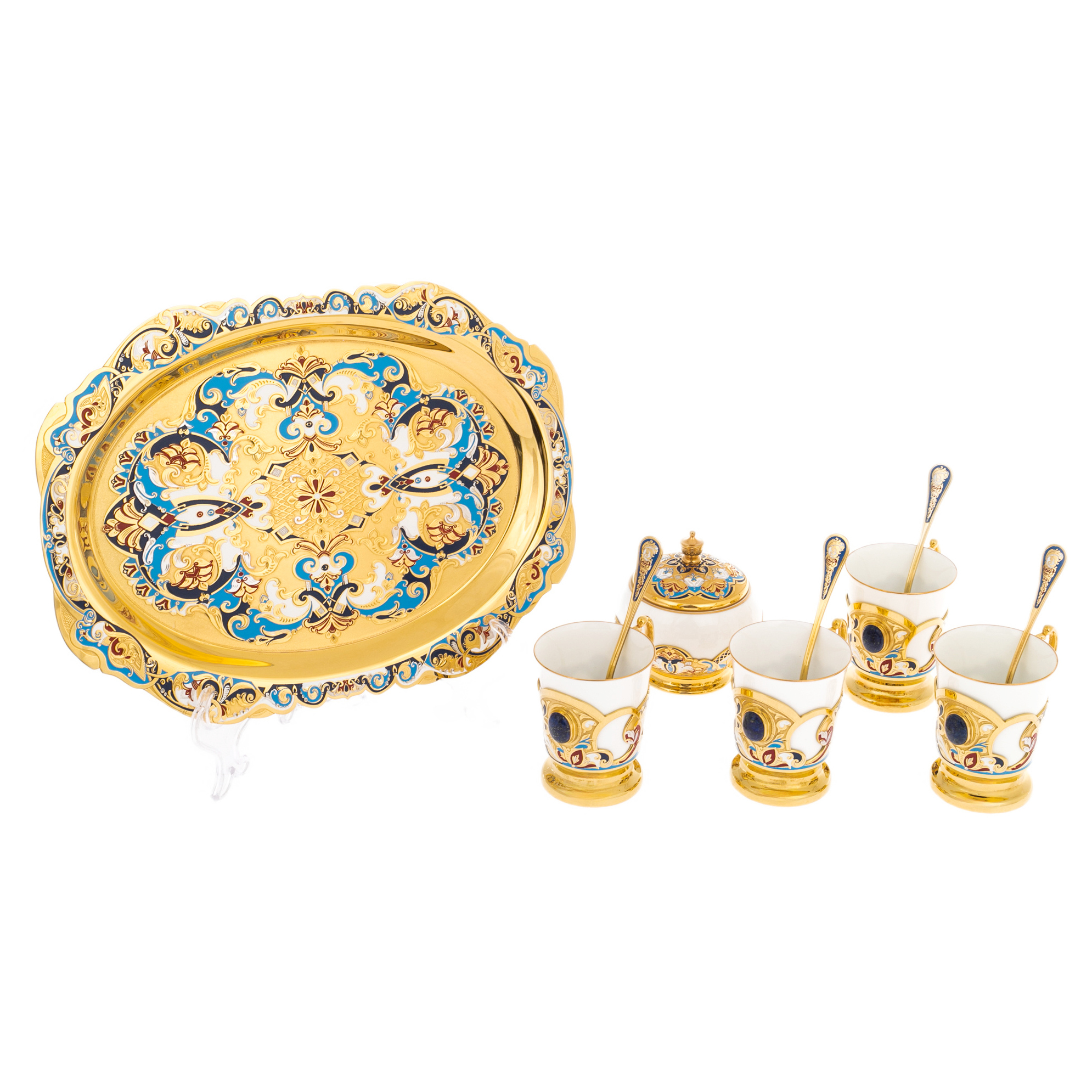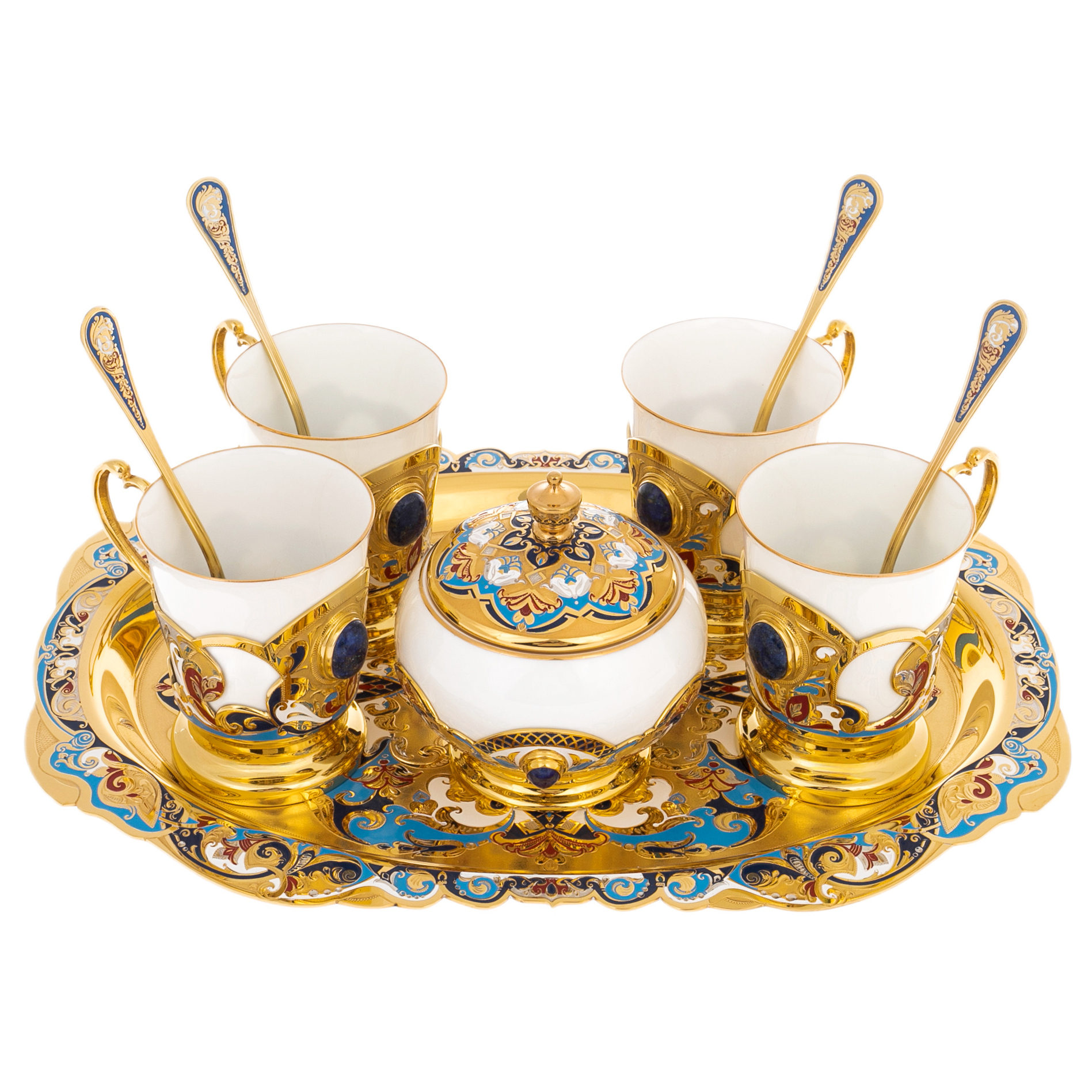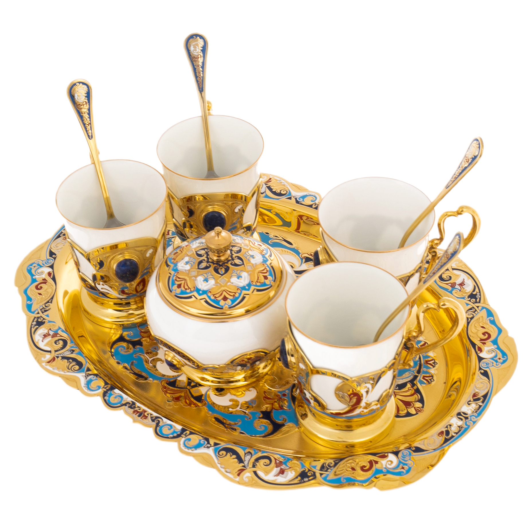 Кофейный набор "Рассвет" с лазуритом и эмалями, на 4 персоны, Златоуст