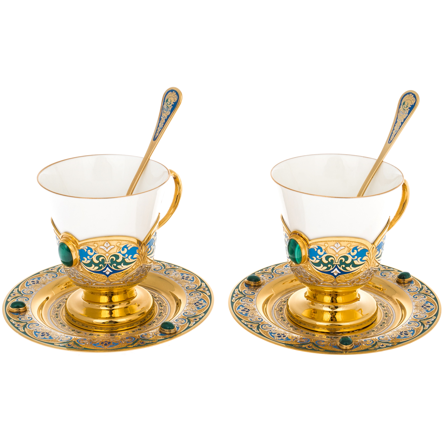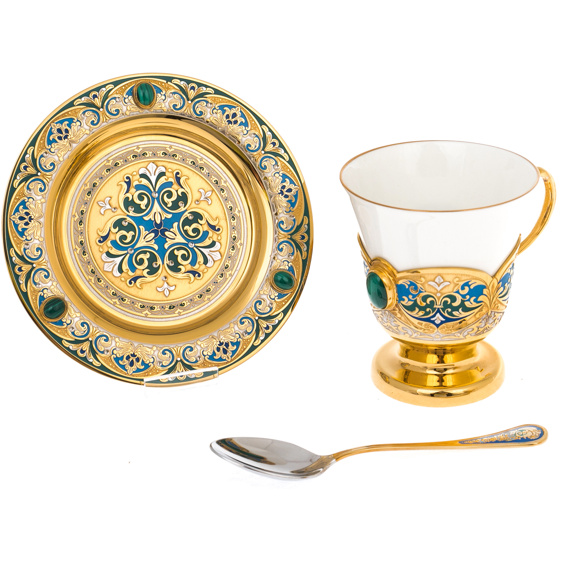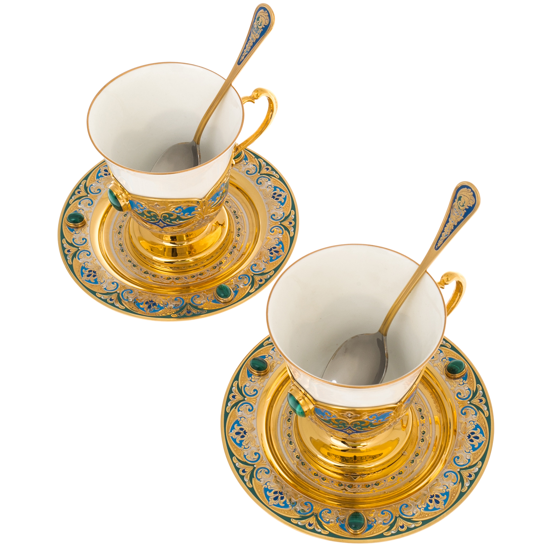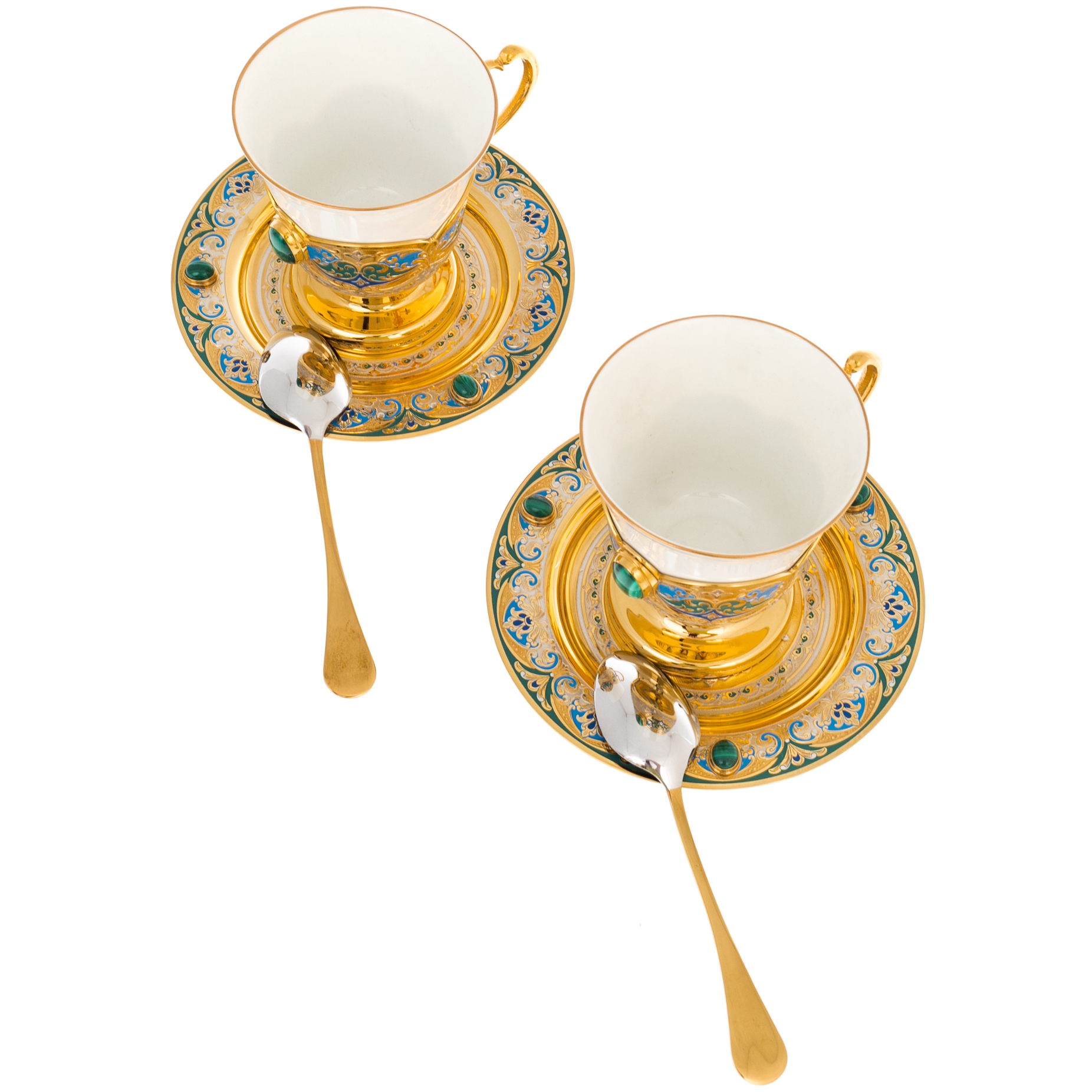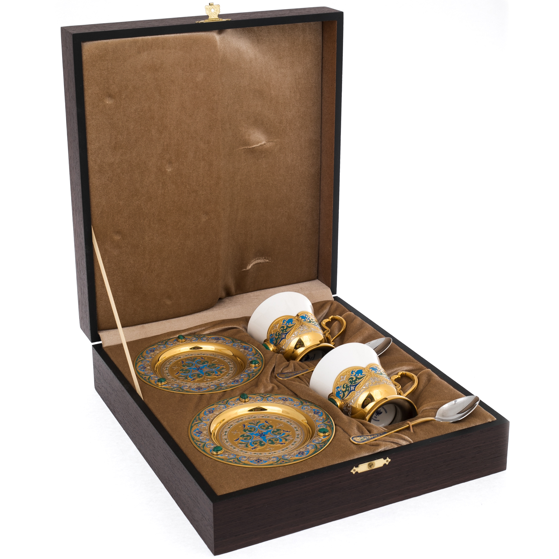 Кофейный набор с малахитом "Тюльпан" на 2 персоны, Златоуст