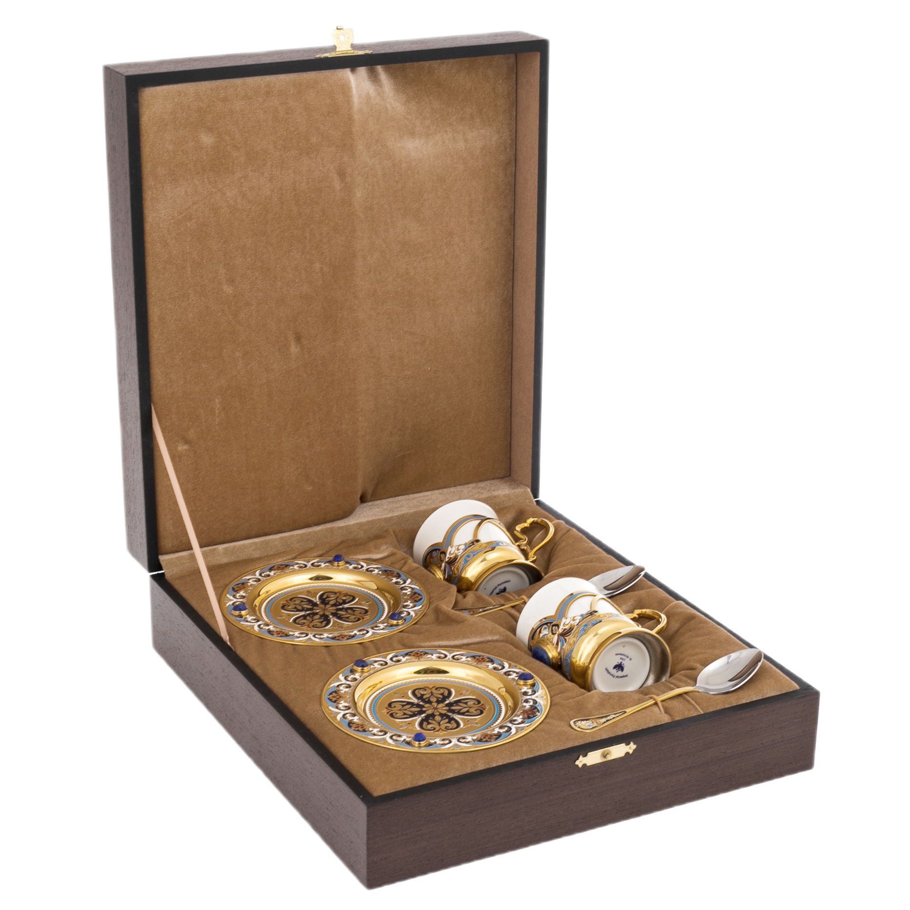 Кофейный набор "Утро" с лазуритом, на 2 персоны, Златоуст