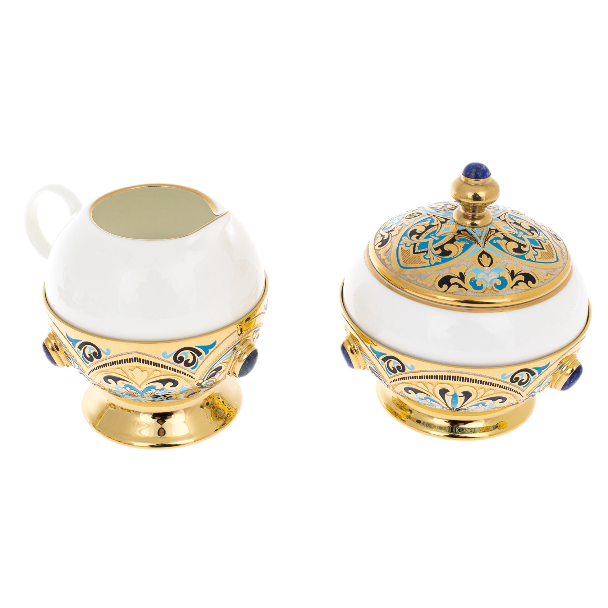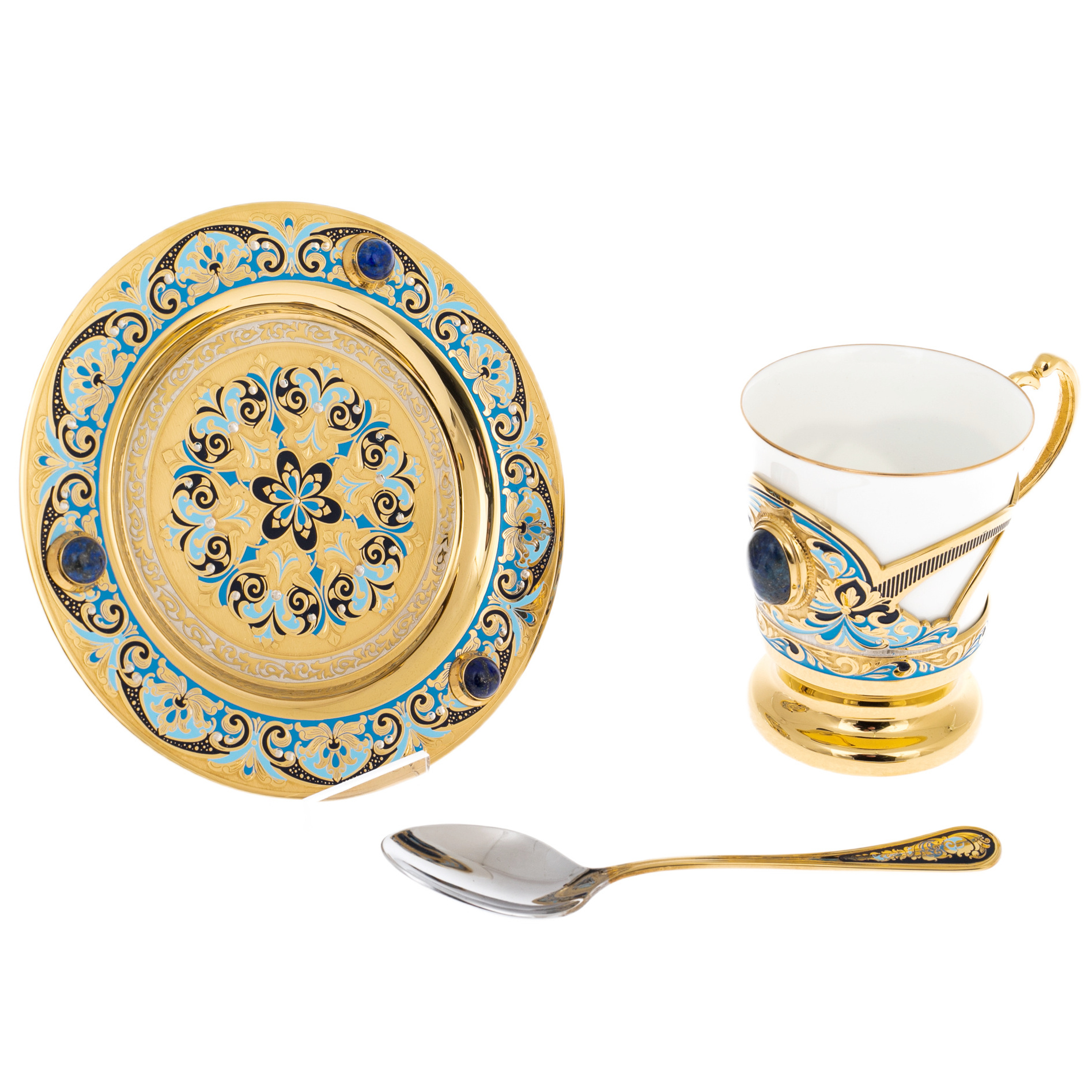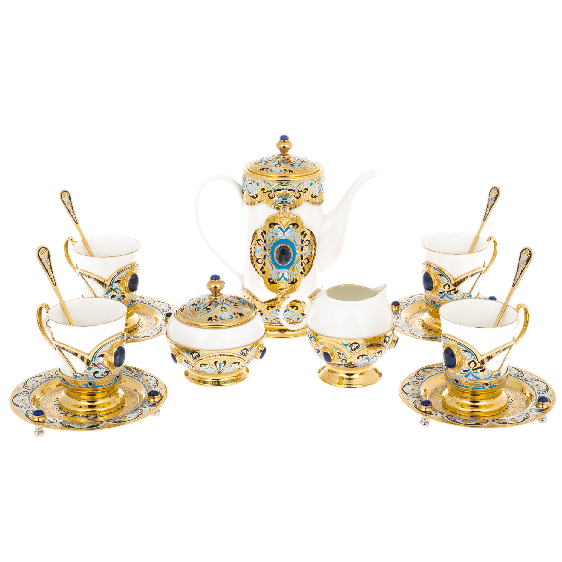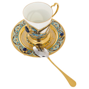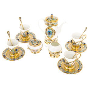 Кофейный сервиз "Грация" с лазуритом, на 4 персоны, 15 предметов, Златоуст