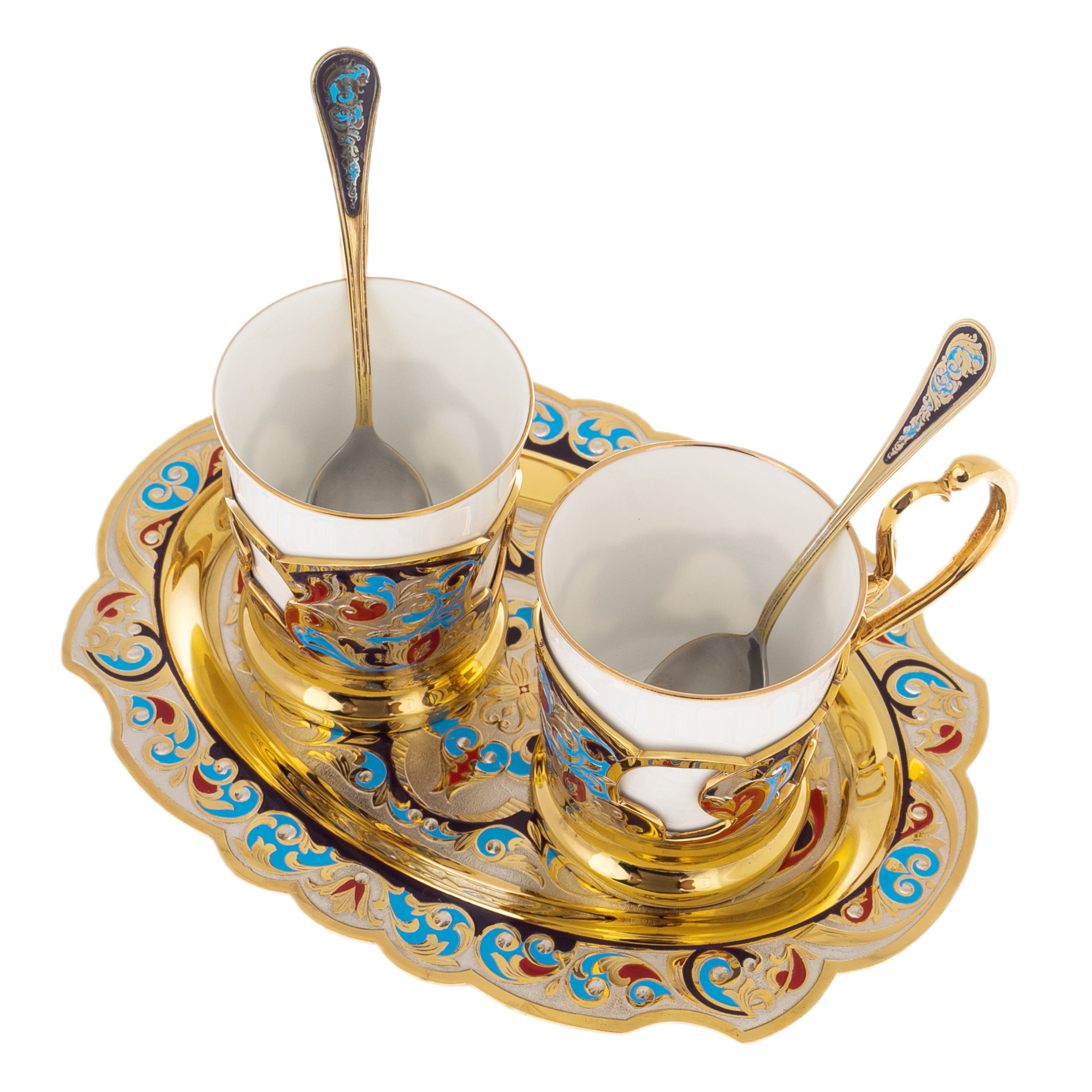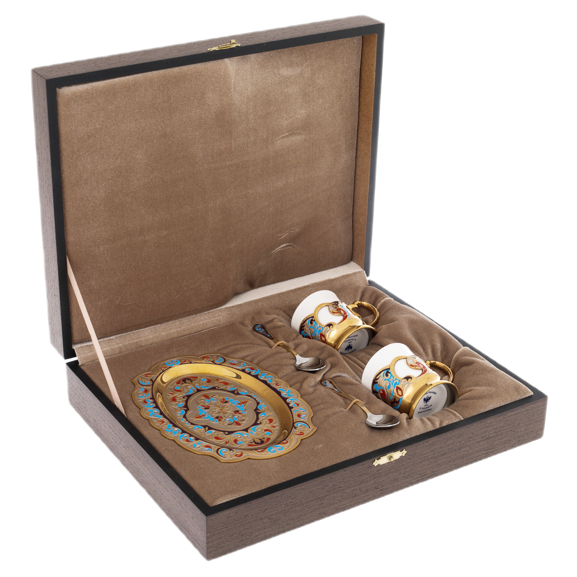 Комплектация: чашка — 2 шт., ложка — 2 шт., поднос, футляр.