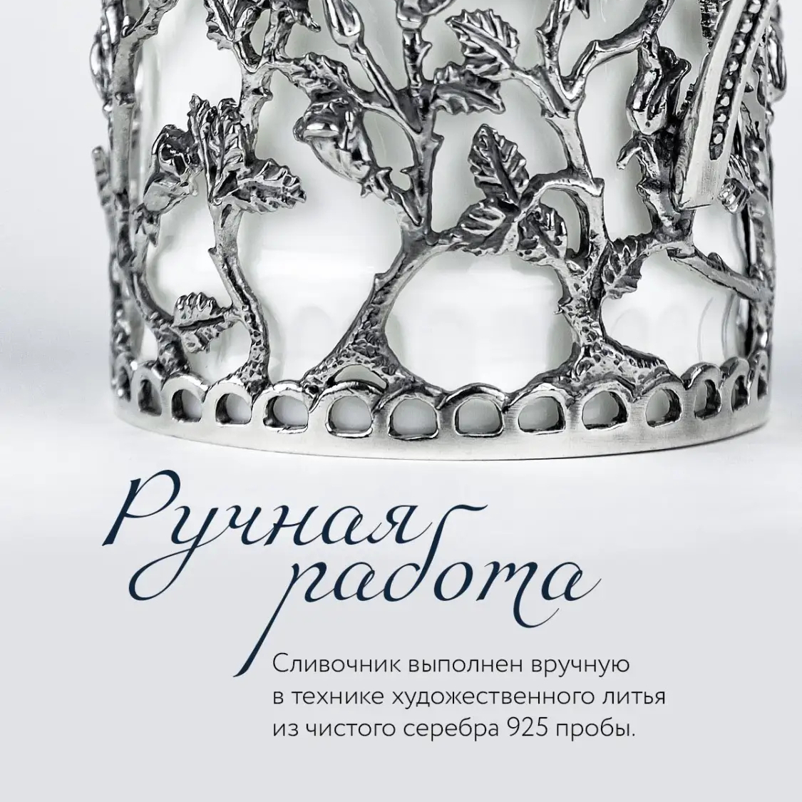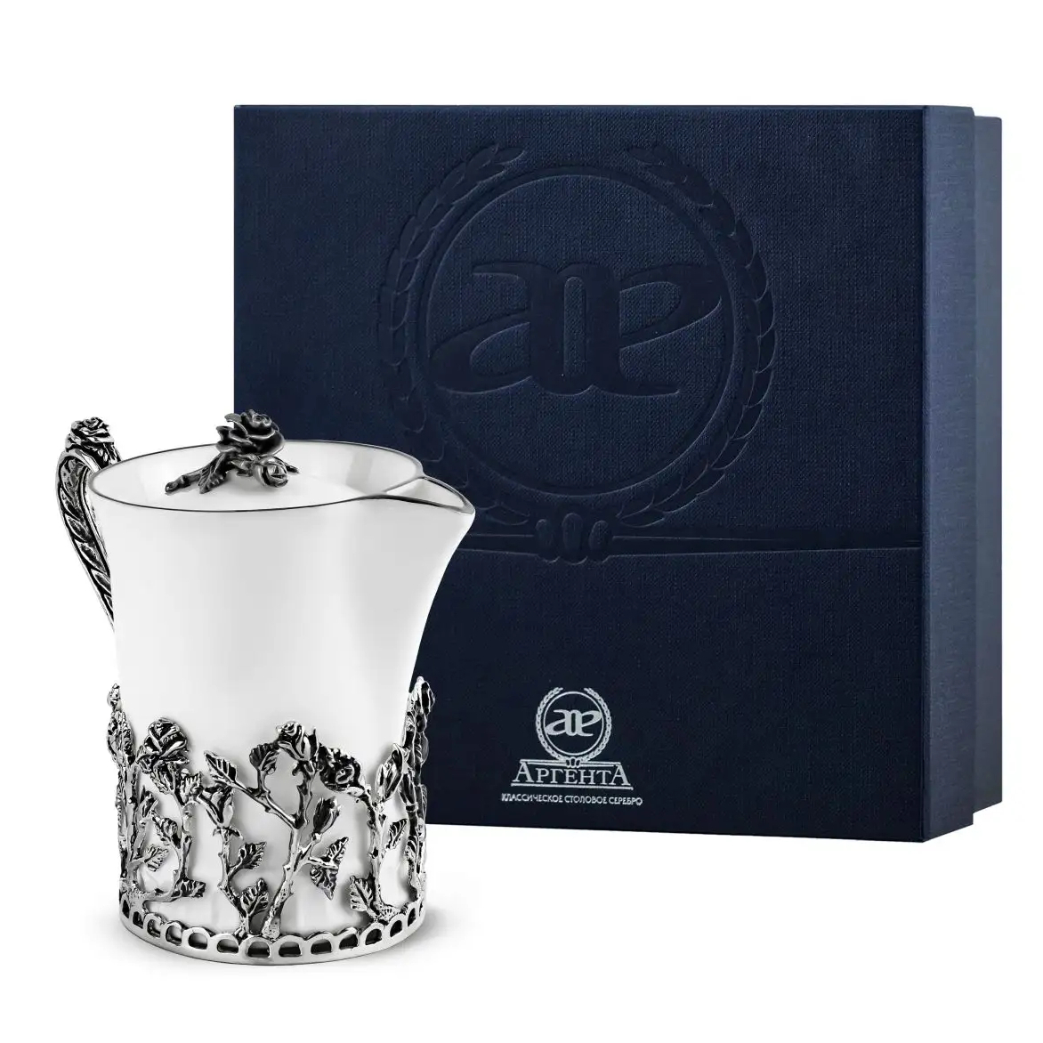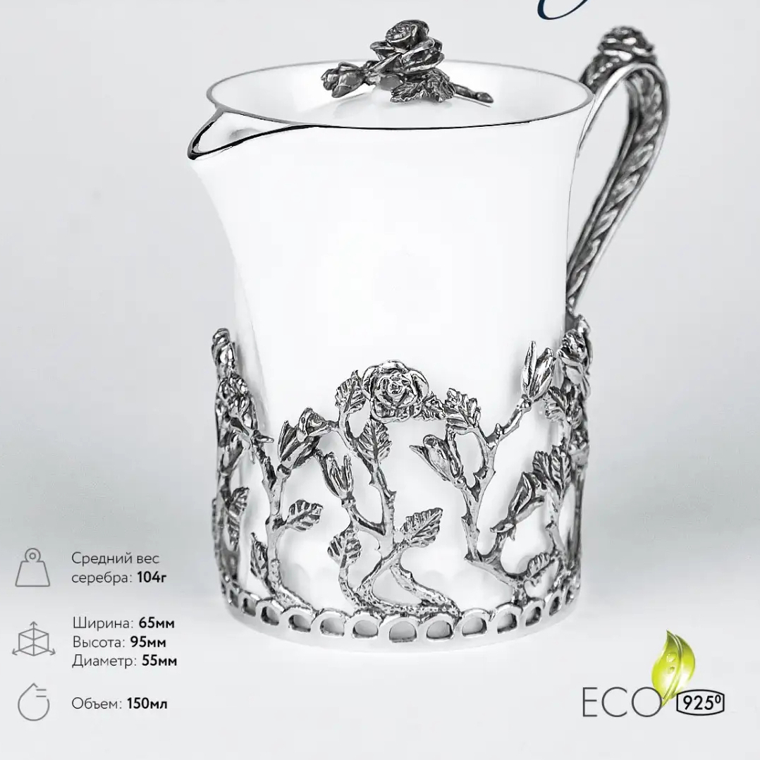 Сливочник из серебра и фарфора "Розалия" с чернением