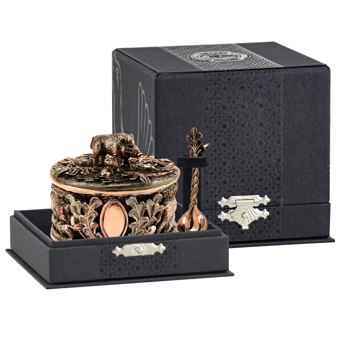 Медная солонка "Кабан" с чернением и ложкой в футляре