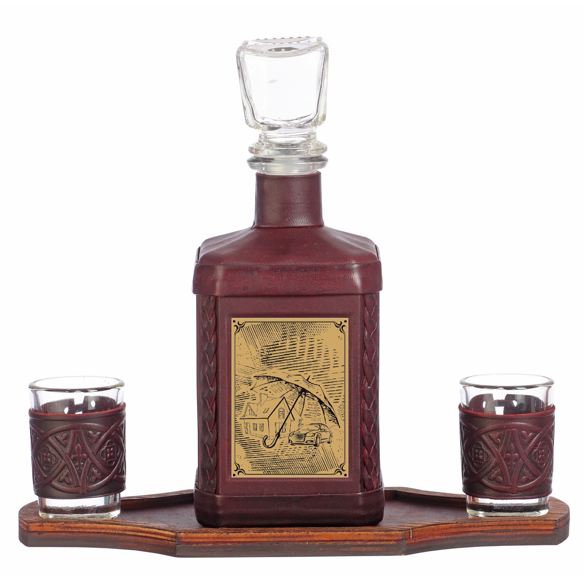 Графин в кожаном переплете "Страховщику-1" с сублимированной накладкой