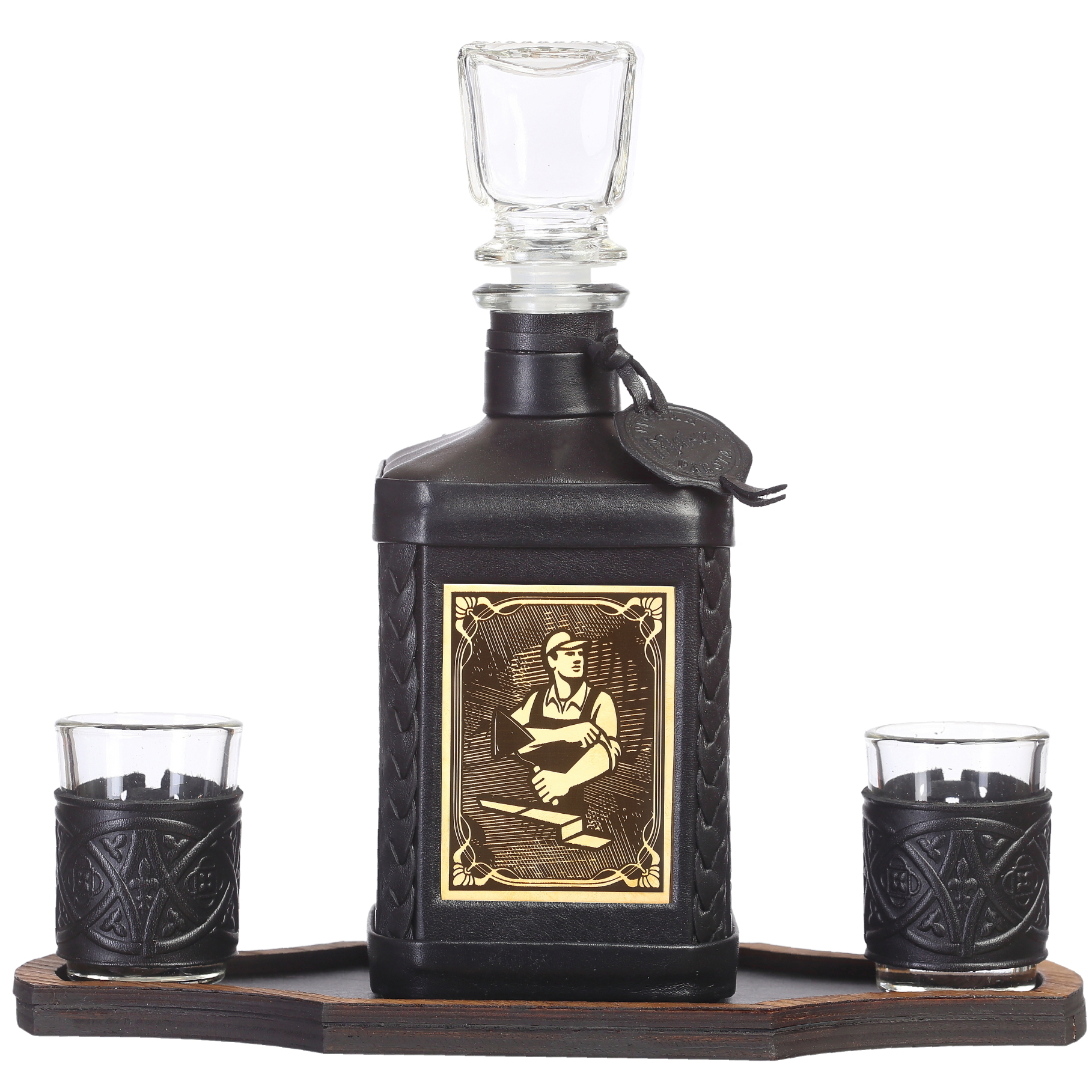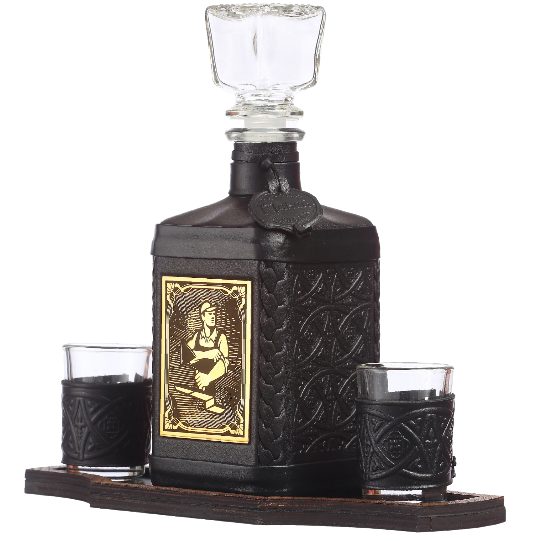 Графин в кожаном переплете "Строителю-4" с накладкой