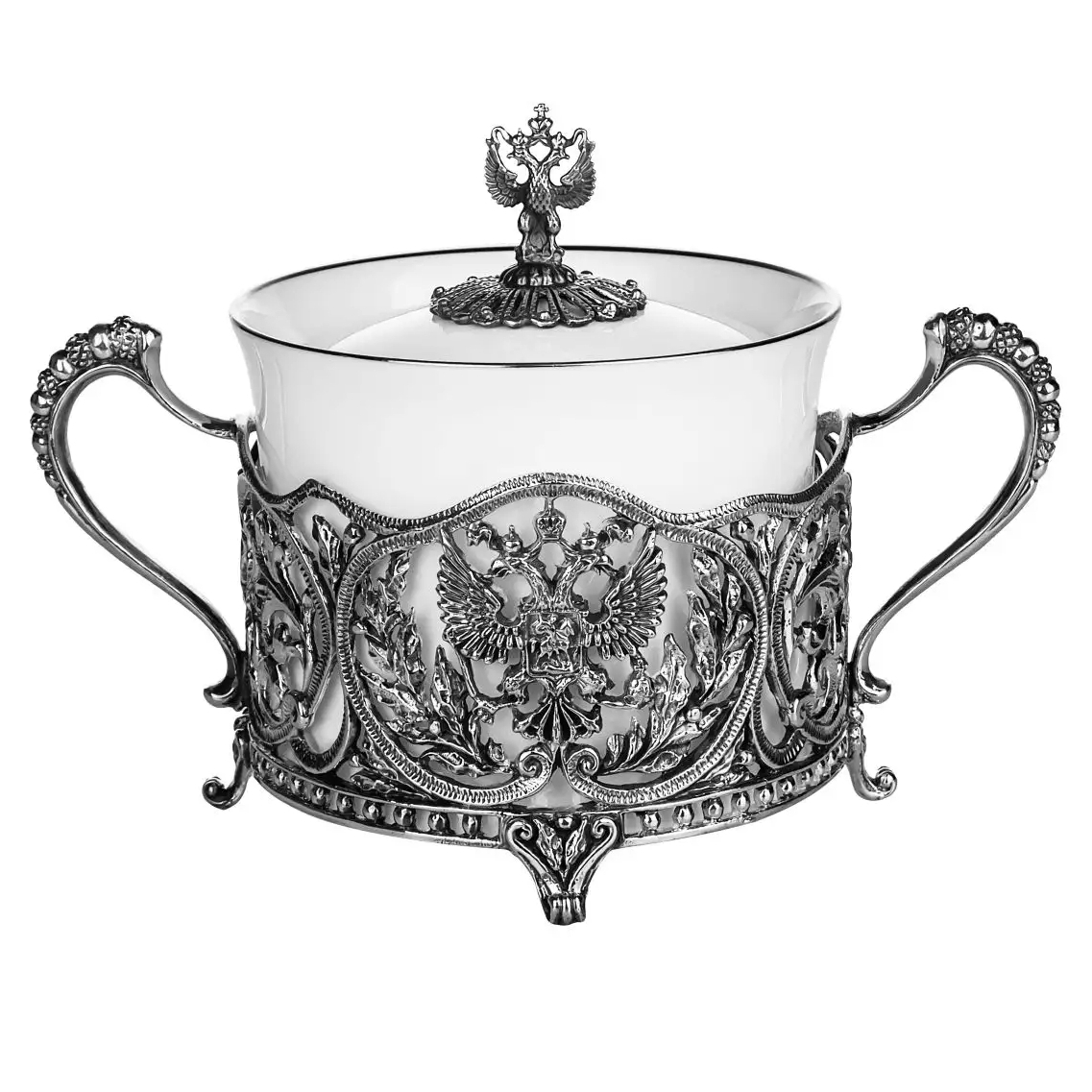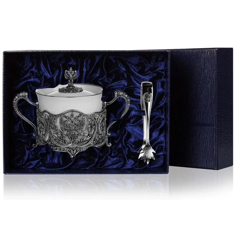 Серебряный набор "Герб": сахарница и щипцы для сахара