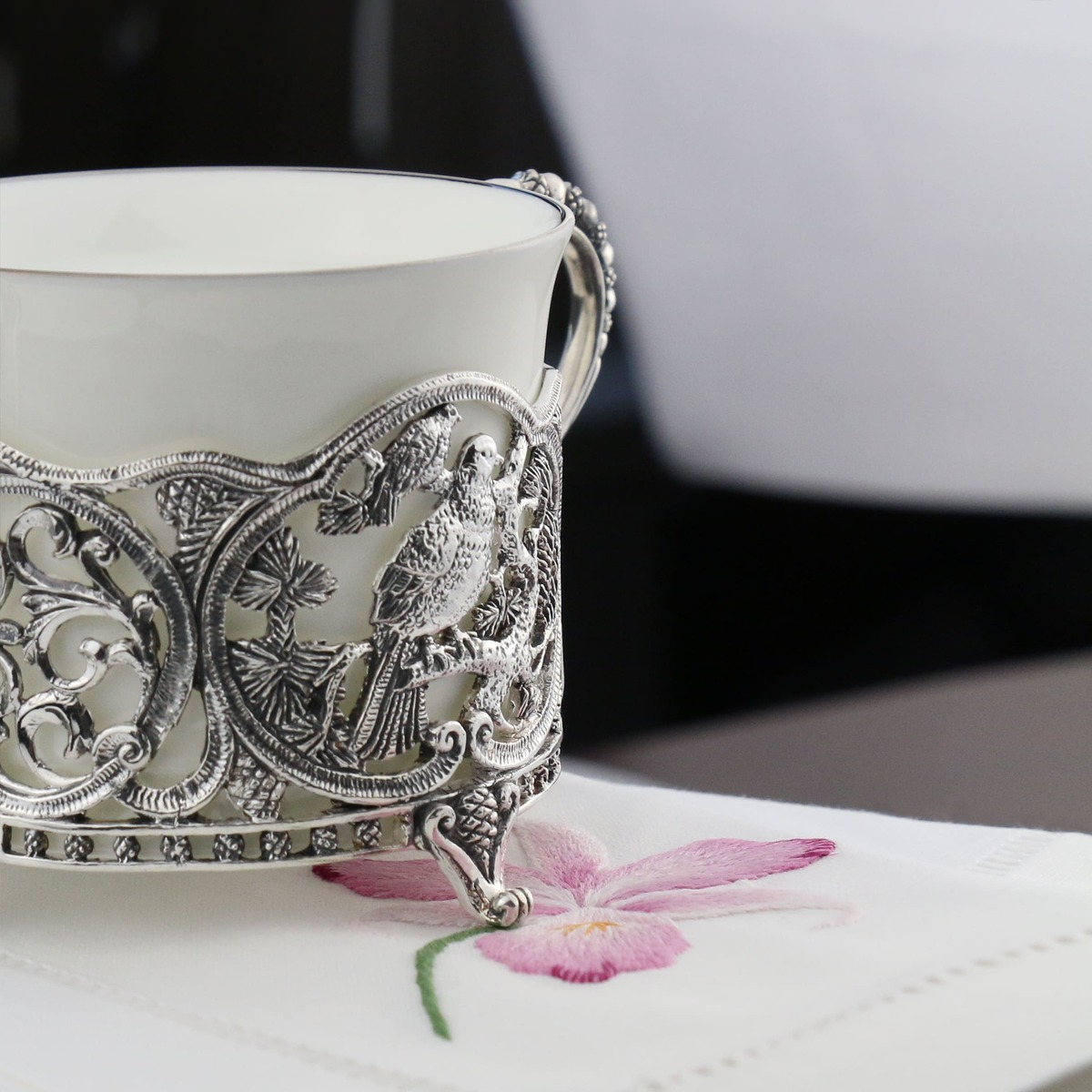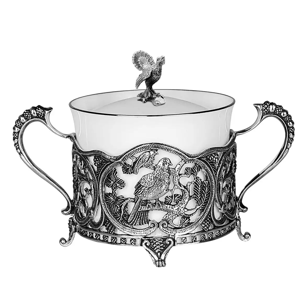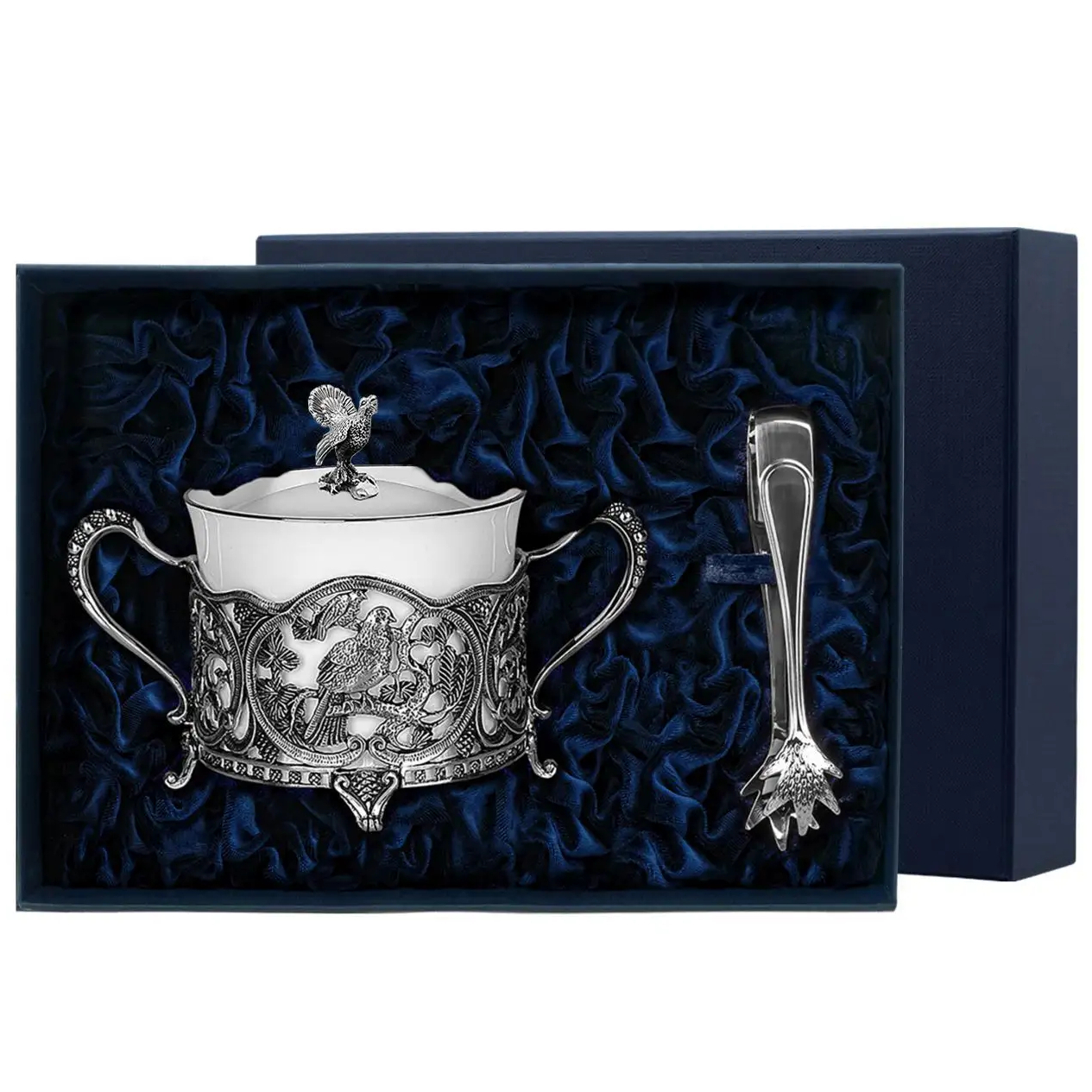 Серебряный набор "Глухариный край": сахарница и щипцы для сахара
