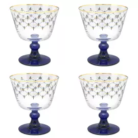 Императорский фарфоровый завод Набор стеклянных креманок "Кобальтовая сетка" 4 шт Набор стеклянных креманок "Кобальтовая сетка" 4 шт Ни одна трапеза не обходится без напитков. Придать изюминку любой сервировке, сделать ее более стильной поможет линейка столового стекла от Императорского фарфорового завода. Обновленная серия включает в себя бокалы для различных напитков, а также креманки. Дизайн сочетает в себе ненавязчивую классику форм с изящным декором, поэтому станет безупречным дополнением как к традиционным коллекциям, так и к креативным новинкам от «Императорского фарфора». В оформлении был использован самый известный рисунок ИФЗ – «Кобальтовая сетка». При создании столового стекла мы обратили особое внимание на удобство, поэтому все предметы стали легче и комфортнее в использовании. Изящные формы предметов достигаются благодаря ручной выдувке.