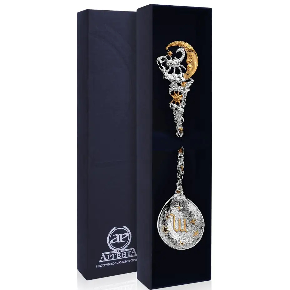 Серебряная чайная ложка "Зодиак - Скорпион" с позолотой