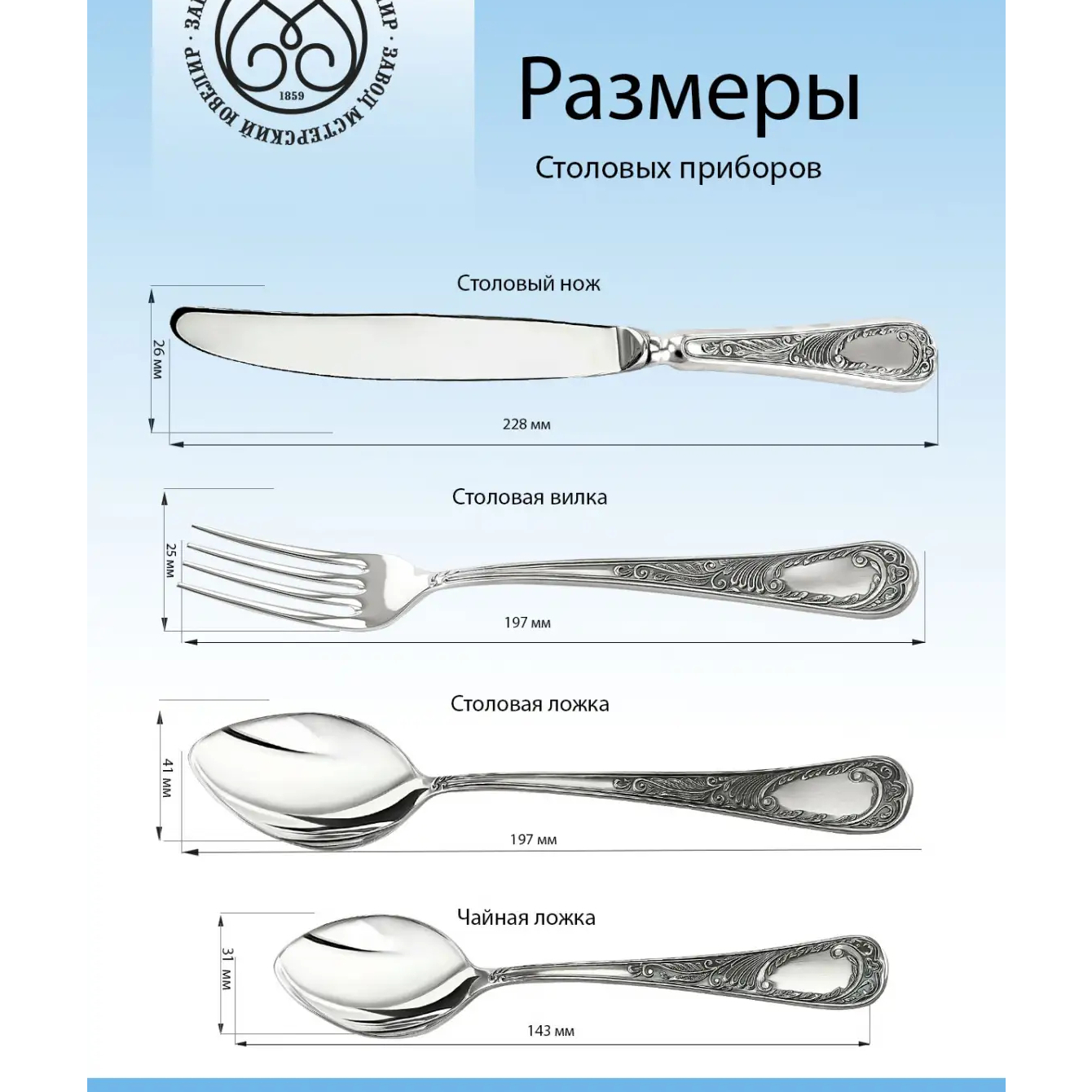 Материал:мельхиор МН19; нержавеющая сталь, покрытие - серебро 999 пр.