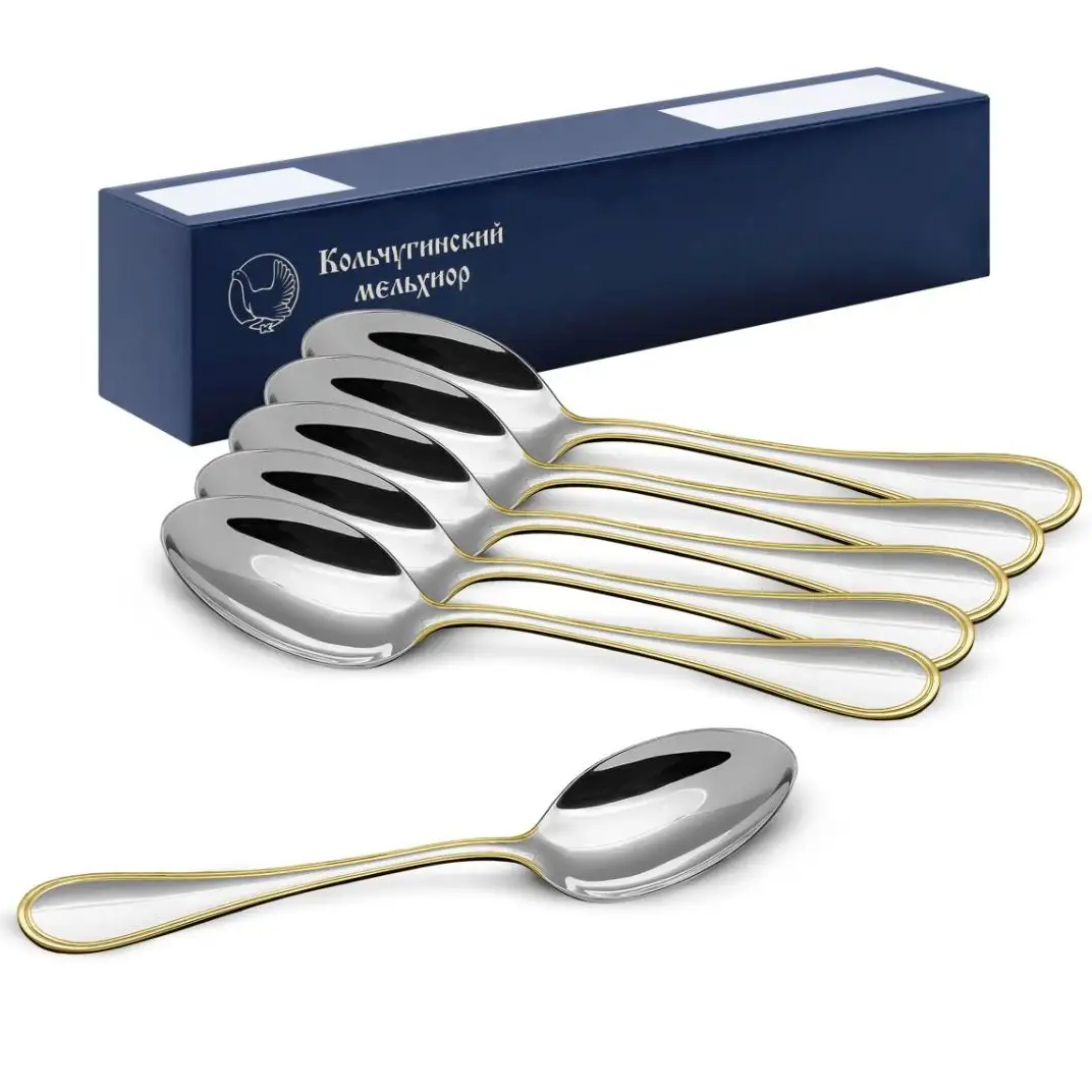Набор столовых ложек "Капелька" посеребренный, с позолотой, на 6 персон