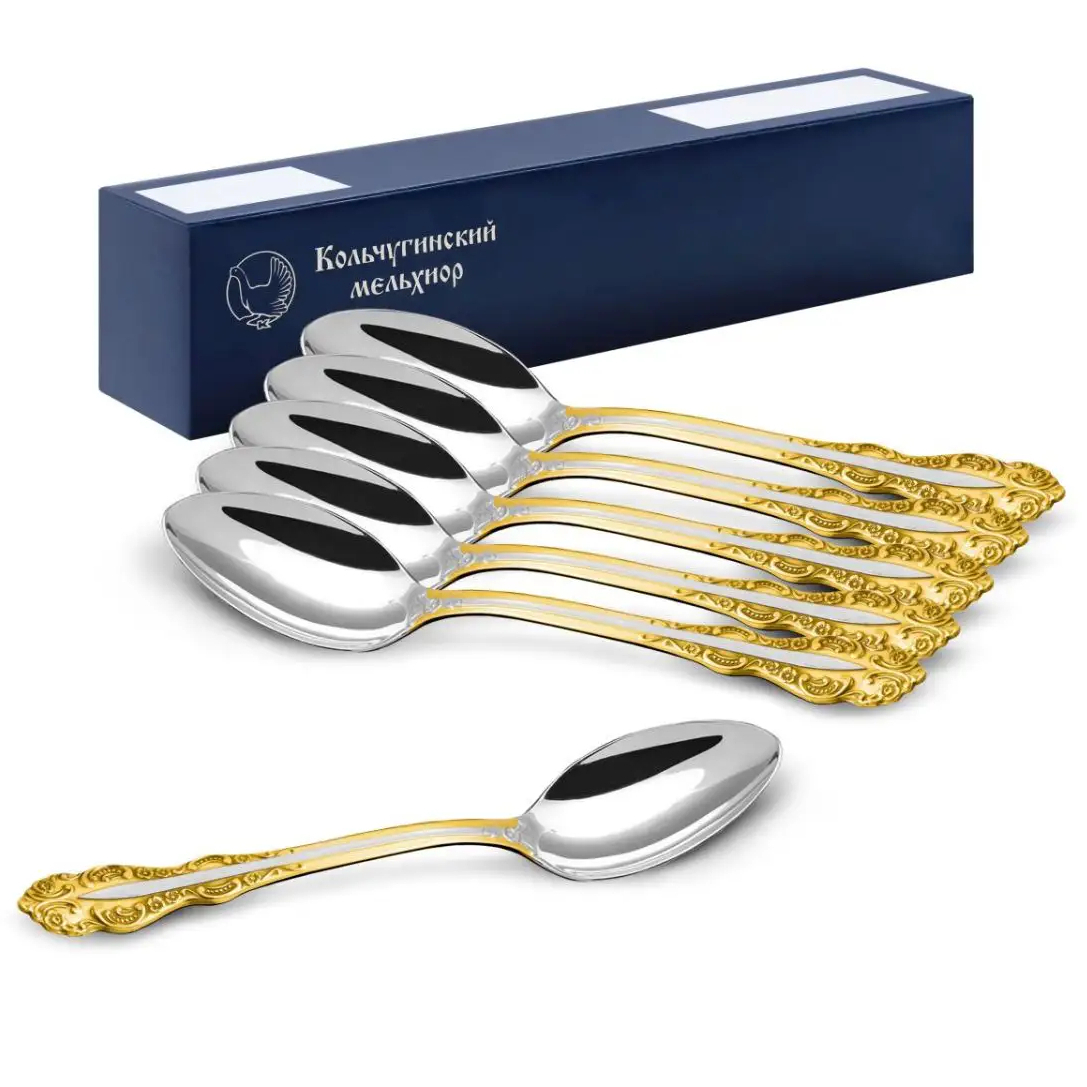 Набор столовых ложек "Юбилейный" посеребренный, с позолотой, на 6 персон