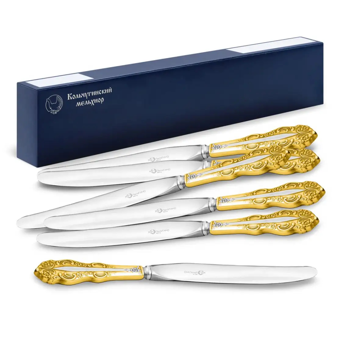 Набор столовых ножей "Юбилейный" посеребренный, с позолотой, на 6 персон
