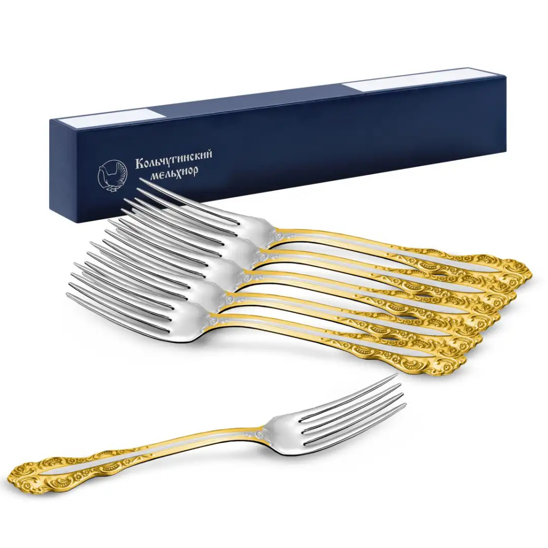 Набор столовых вилок "Юбилейный" посеребренный, с позолотой, на 6 персон