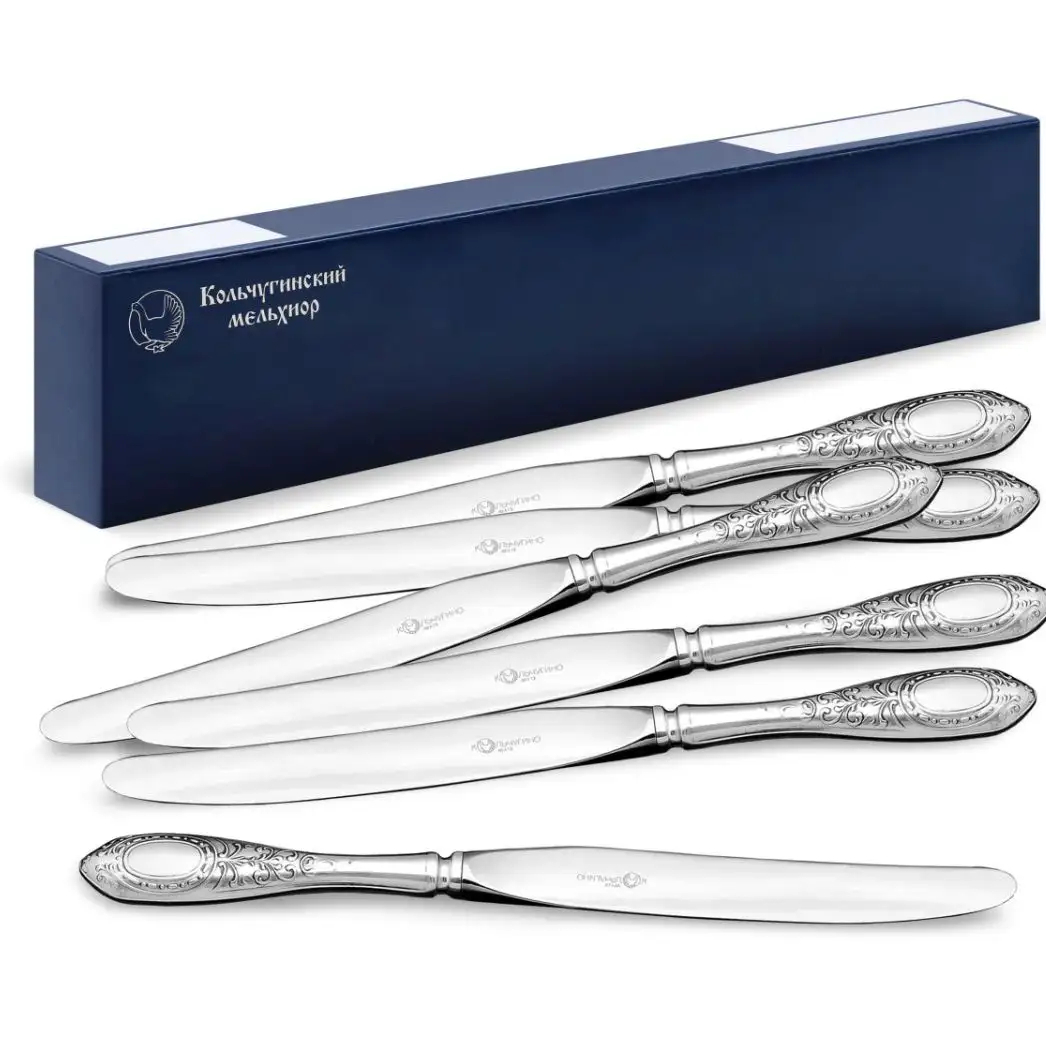Набор столовых ножей "№1" посеребренный, с чернением, на 6 персон
