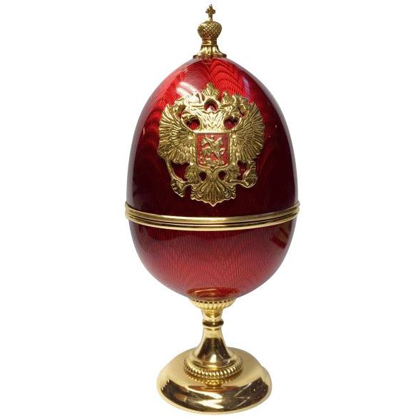 Яйцо выполнено в традиции пасхальных сувениров императорского времени, вдохновлённых работами Карла Фаберже, где каждый элемент несёт в себе отсылку к государственному статусу и исторической памяти. Гильоше — техника, придающая поверхности оптическую глубину и мерцание, достигается путём нанесения тончайших узоров на металл с последующим покрытием эмалью, что делает каждый экземпляр неповторимым. Внутренний отсек может быть использован как скрытая шкатулка — для украшений, памятных знаков или особенных посланий.
