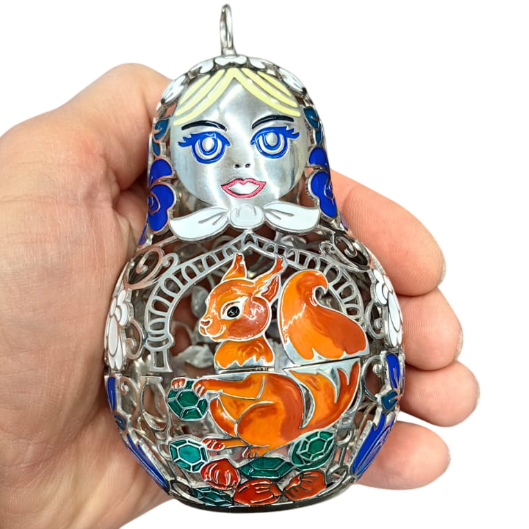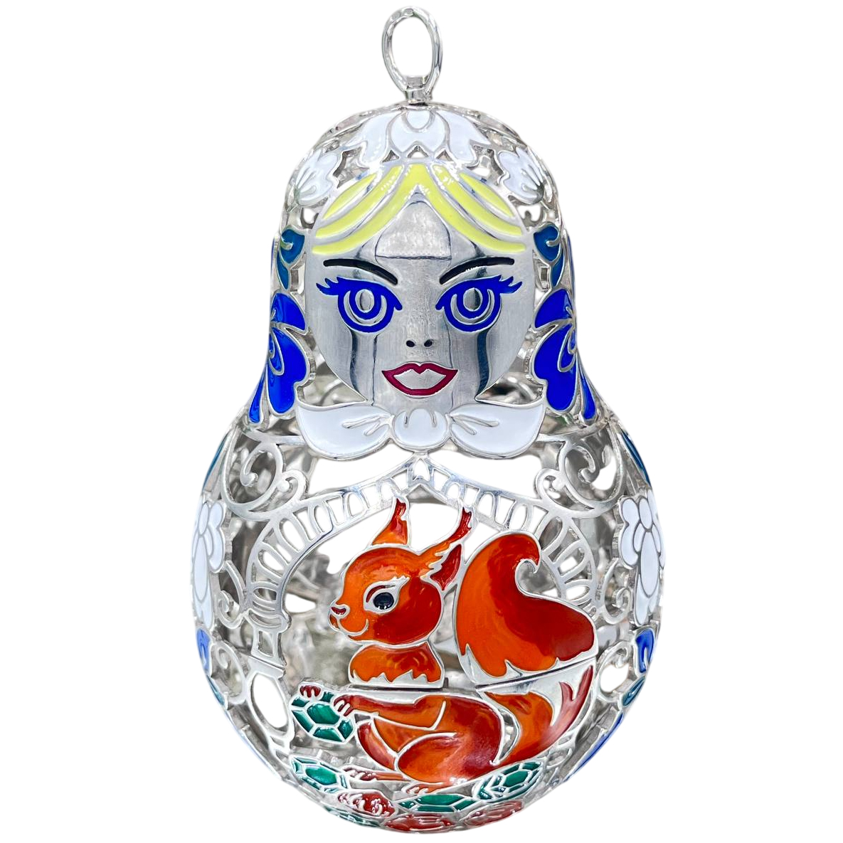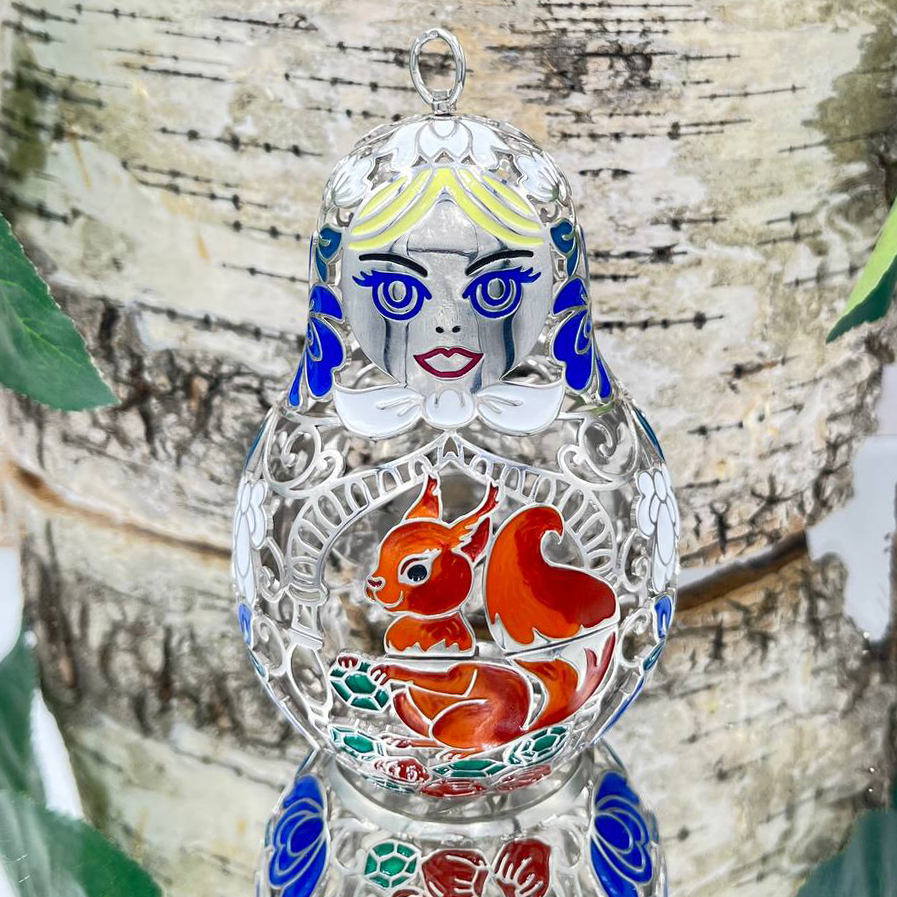 Елочная игрушка-матрешка разборная "Белка" из серебра