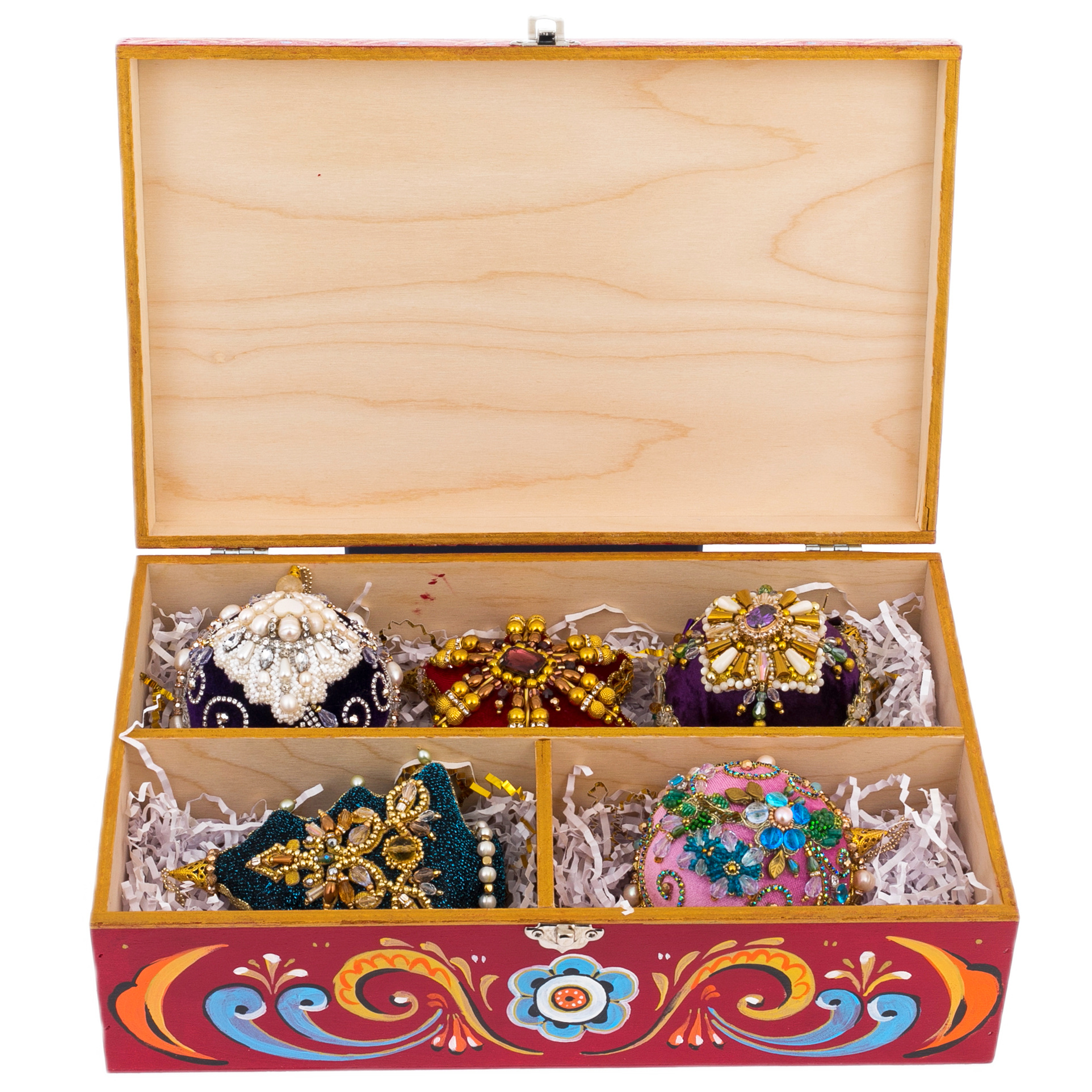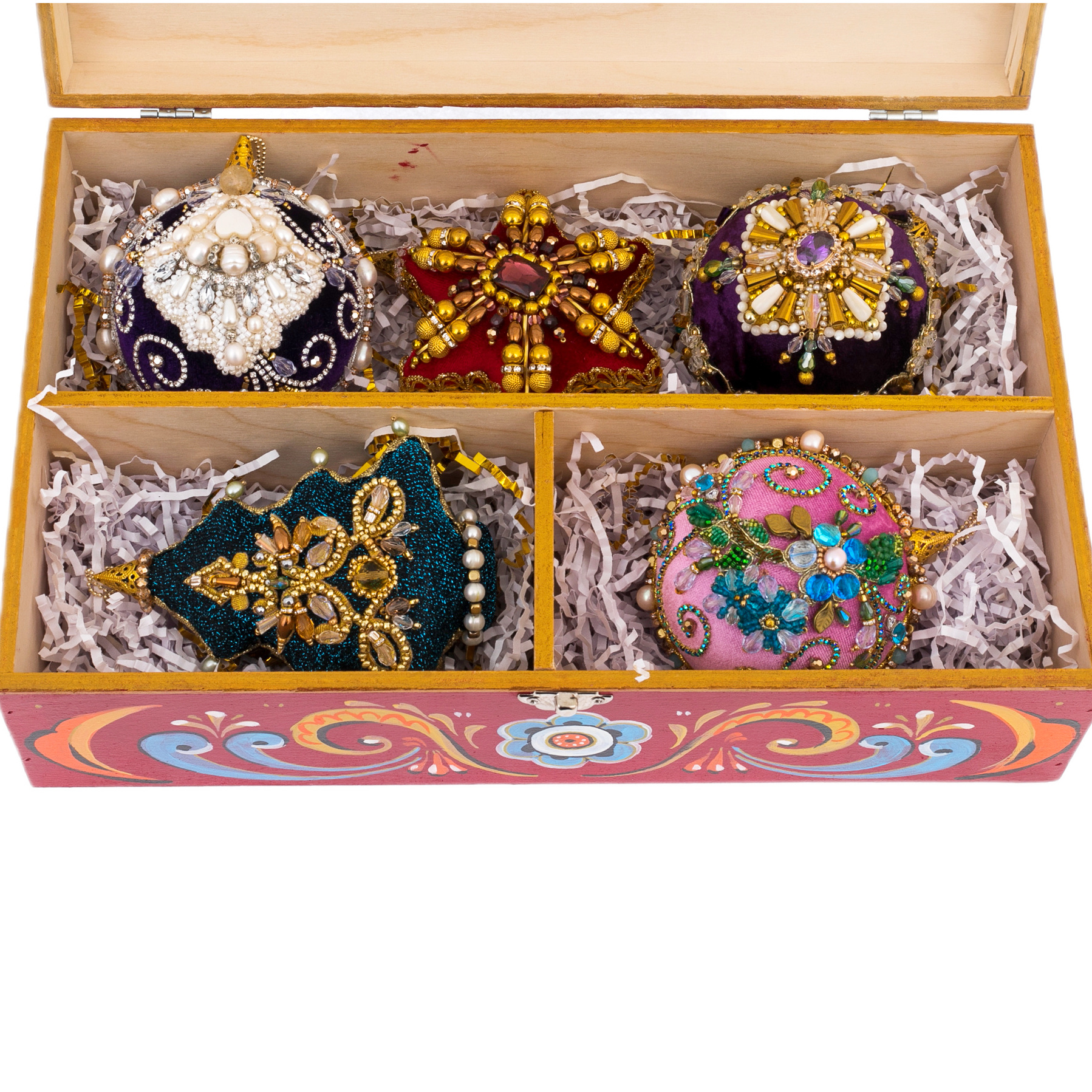 Набор из 5 елочных игрушек в подарочной красной коробке
