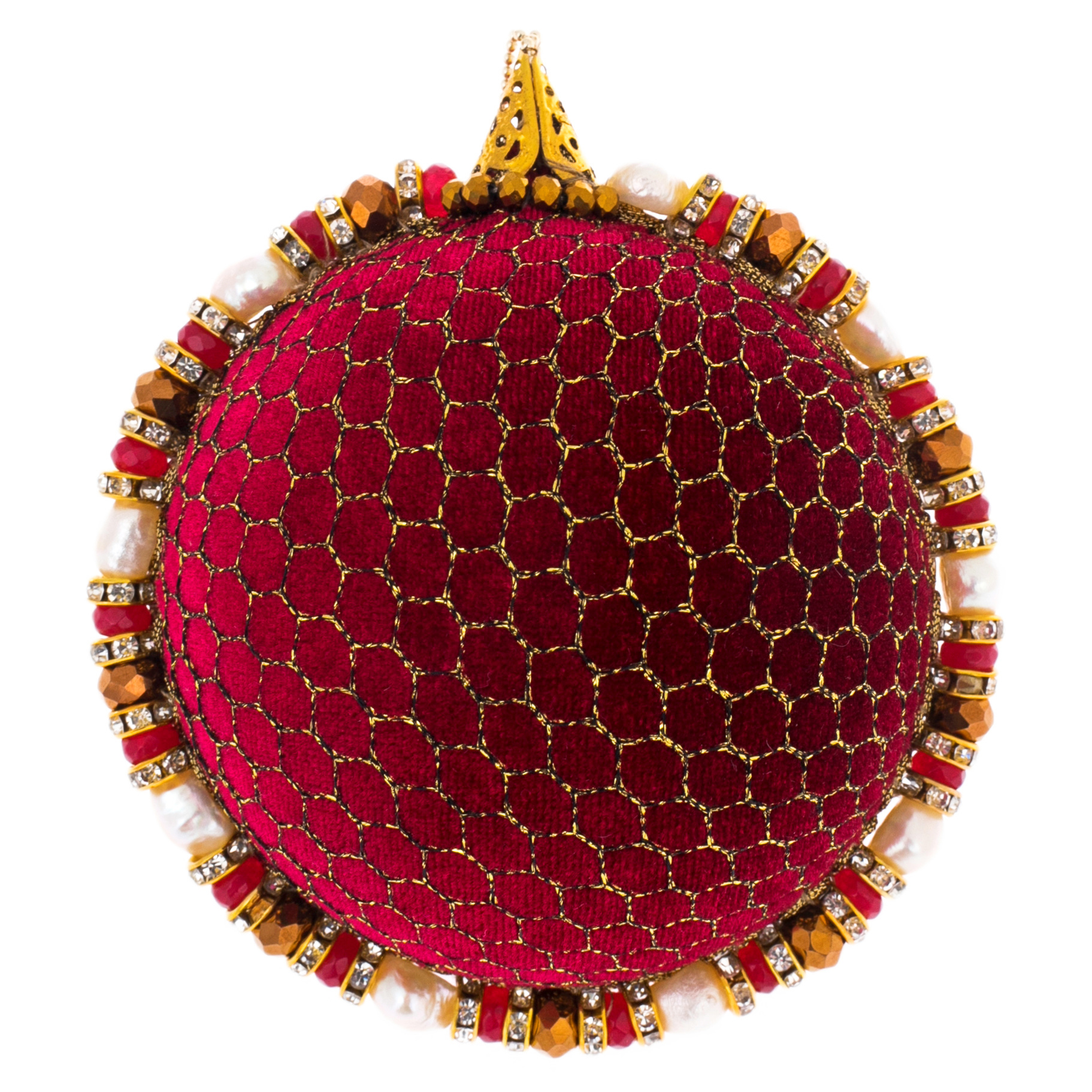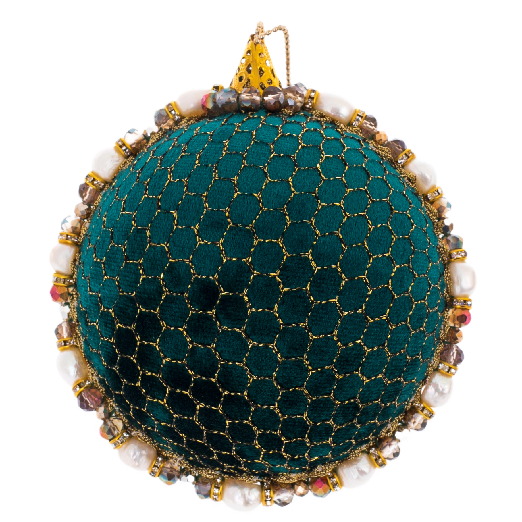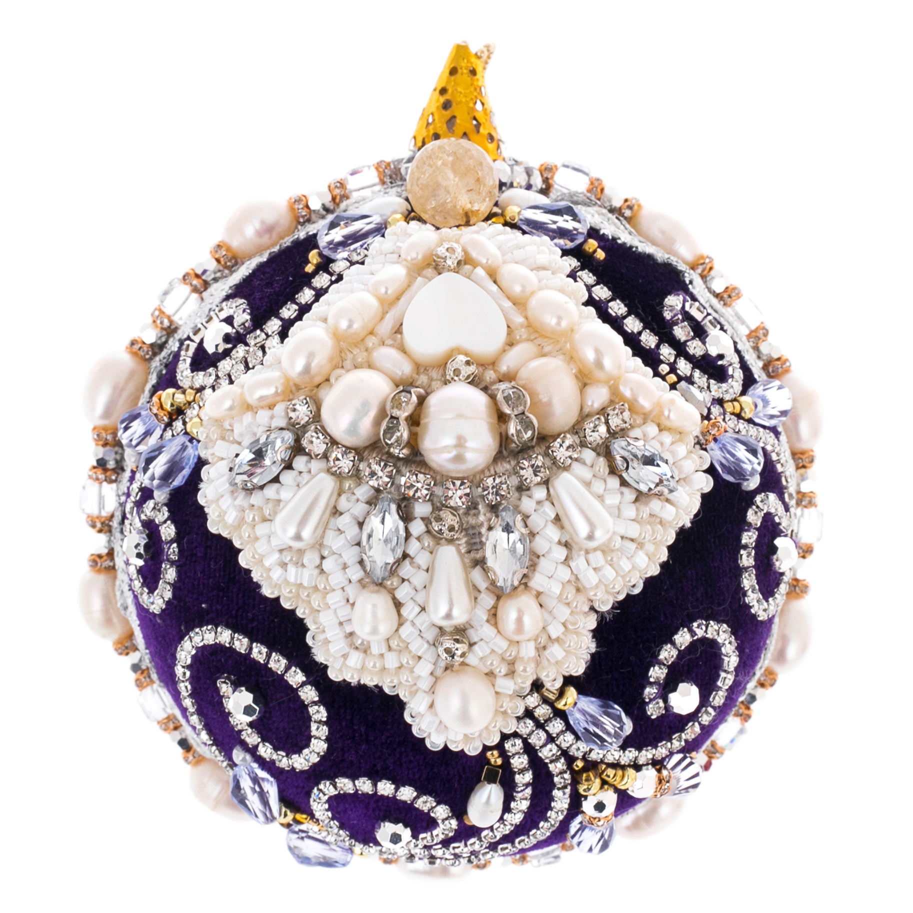 Богатая текстура подчеркивает глубину и насыщенность красок, взывая к воспоминаниям о величественных балах и светских приемах. Золотые цепочки и инкрустации из жемчужин обвивают шары, словно ожерелья, украшающие шею императрицы.