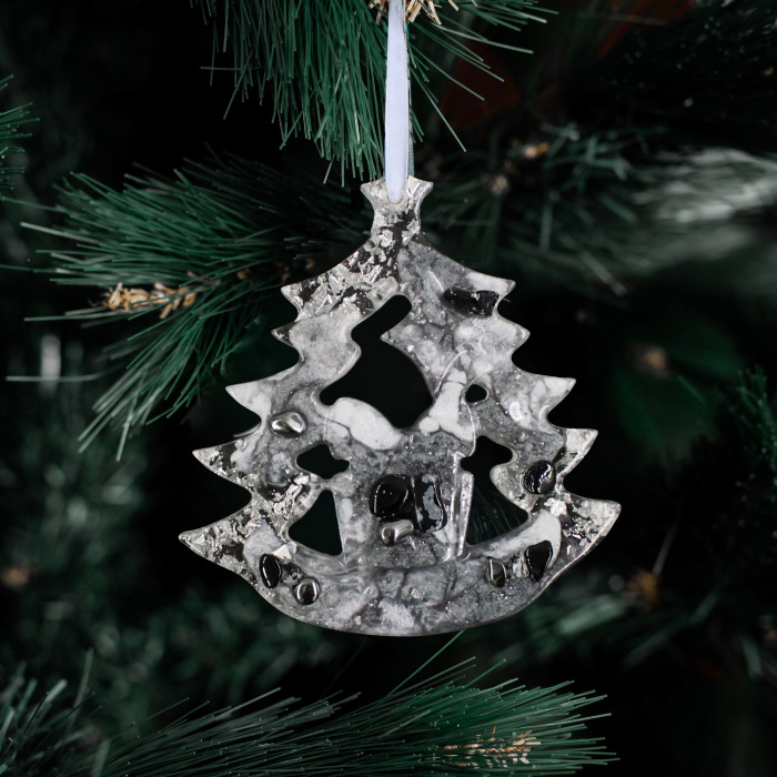 Набор ёлочных игрушек из обсидиана и смолы "Новогодний" коллекции "Stories" 3 шт