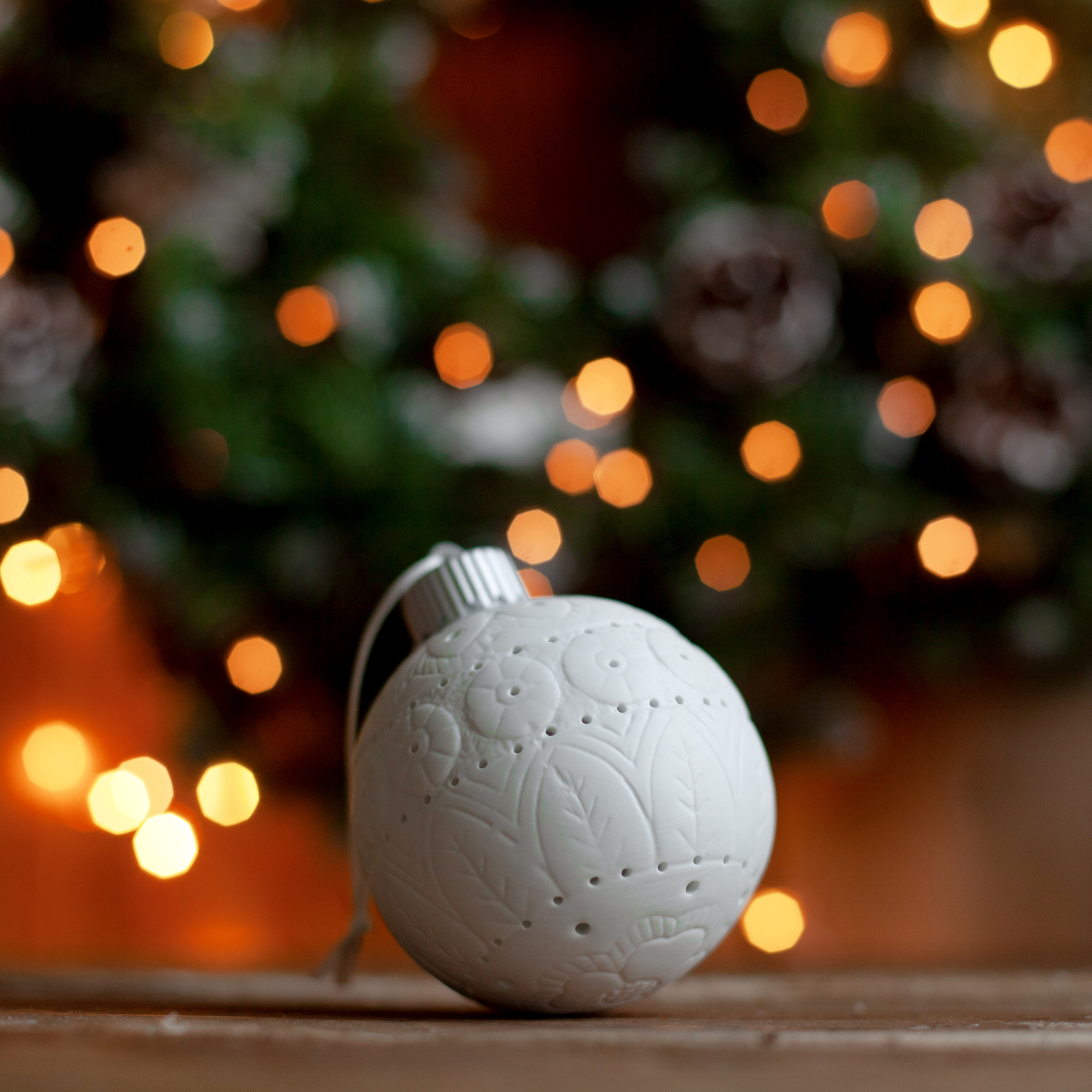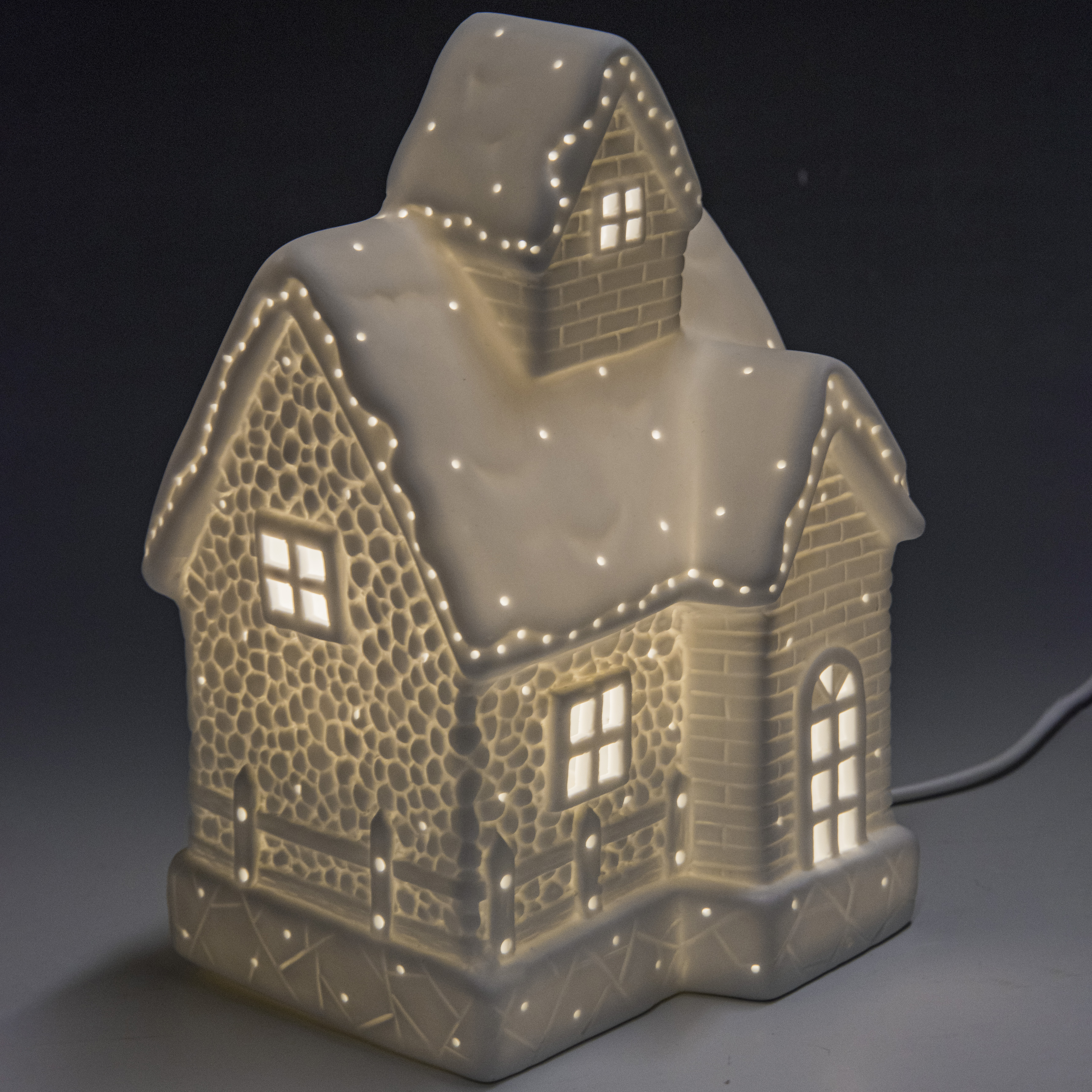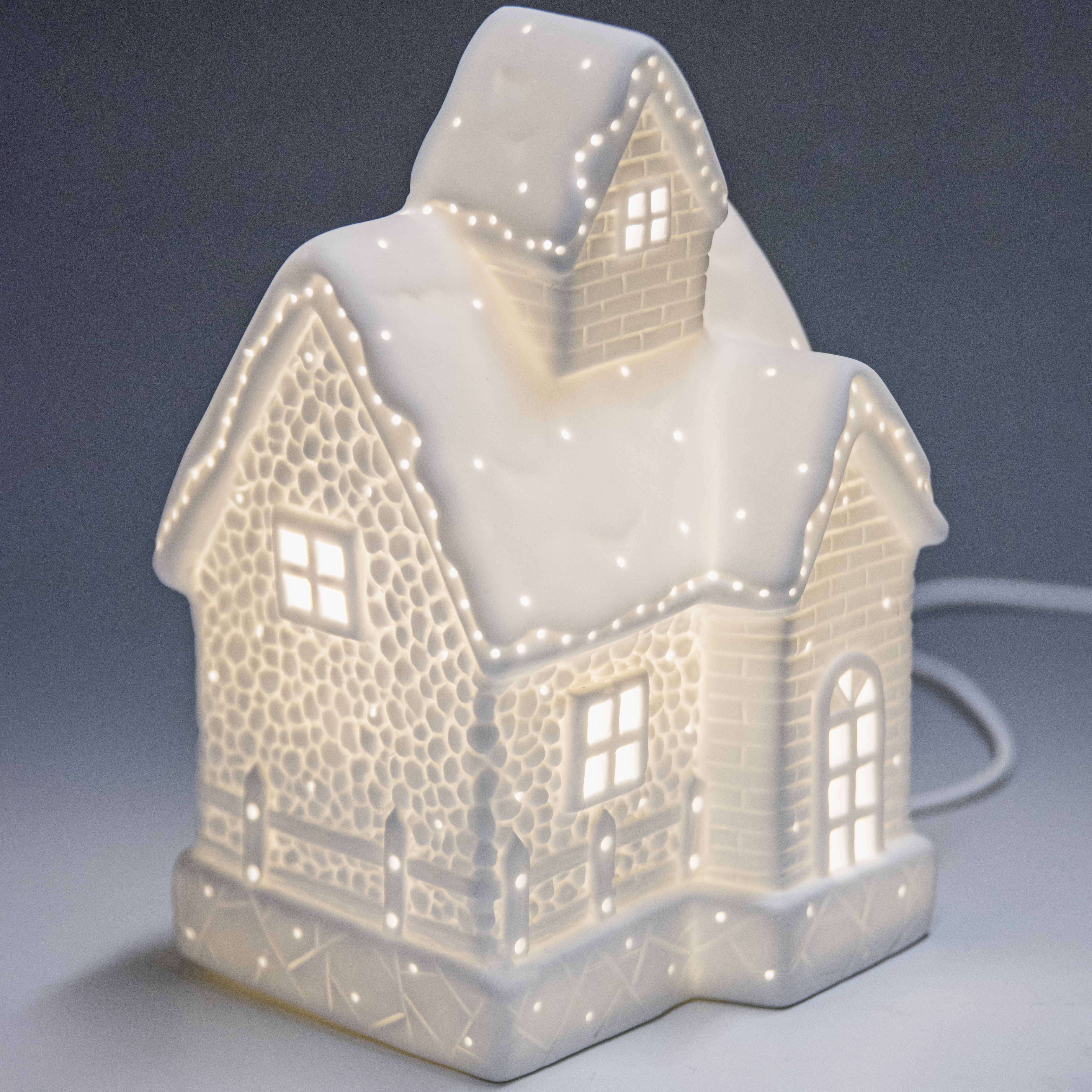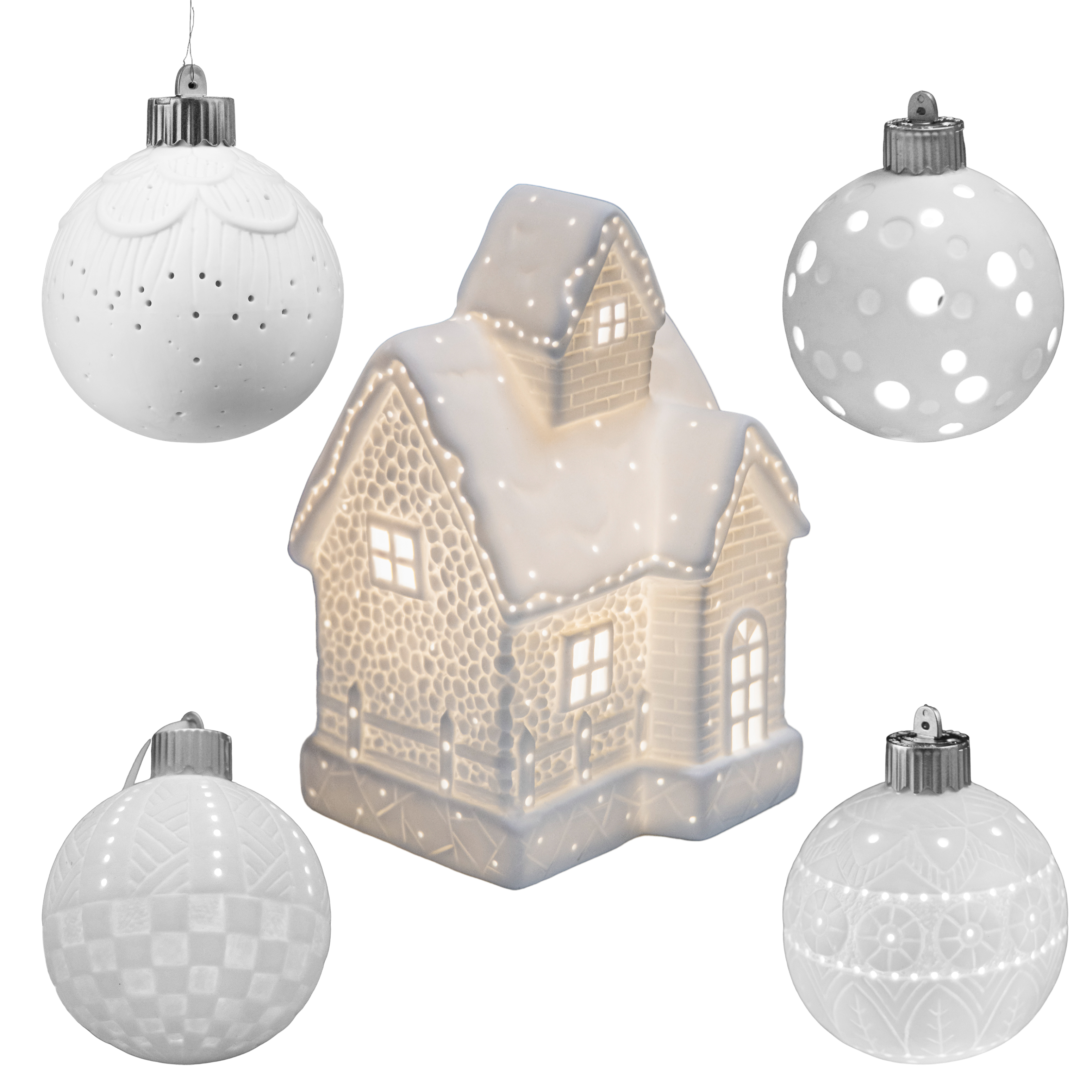 Набор фарфоровых светящихся елочных шаров со светильником "Пряничный домик"