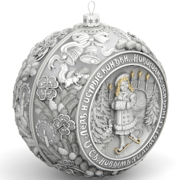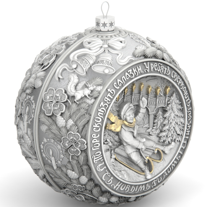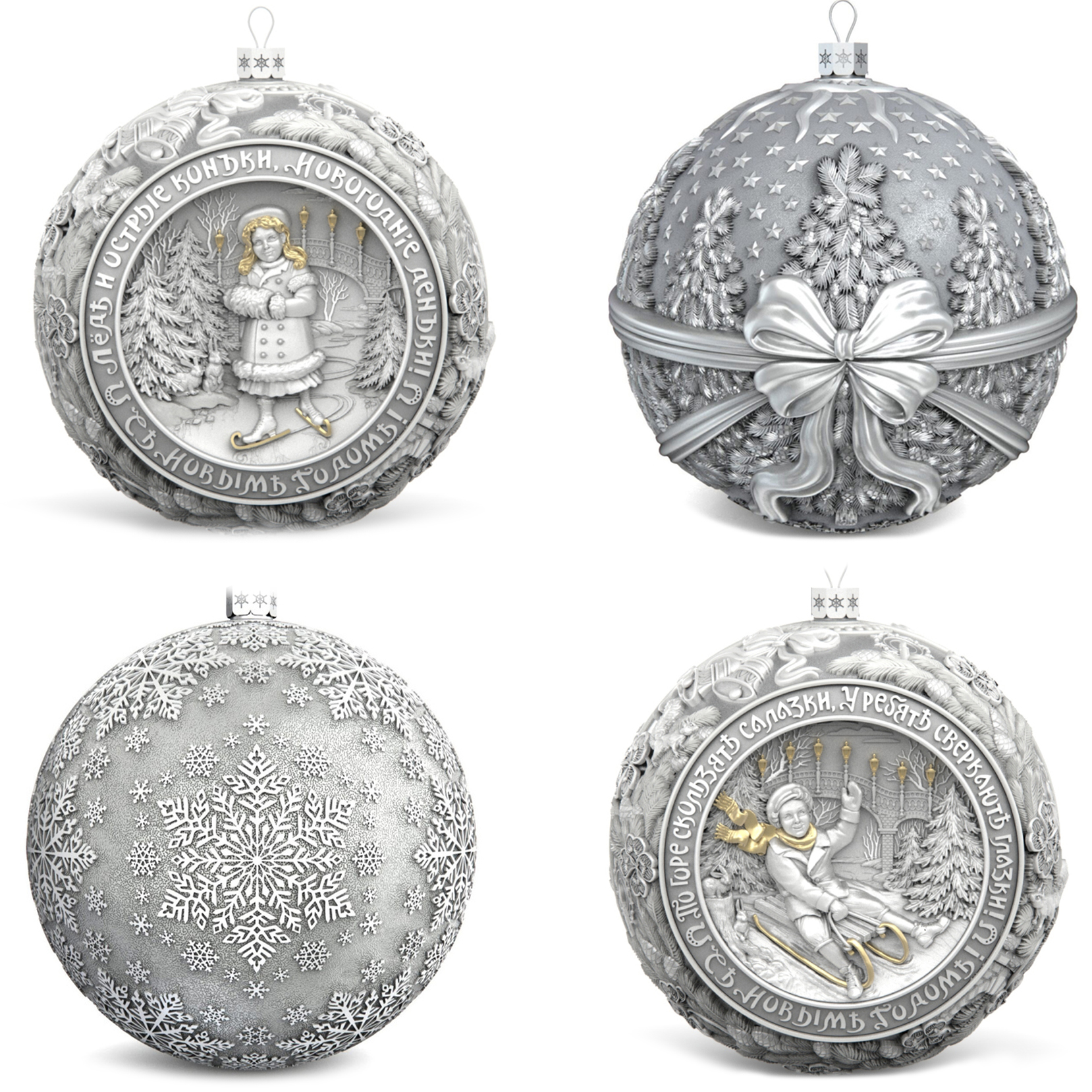 Набор серебряных елочных шаров "Зимние забавы" 4 шт