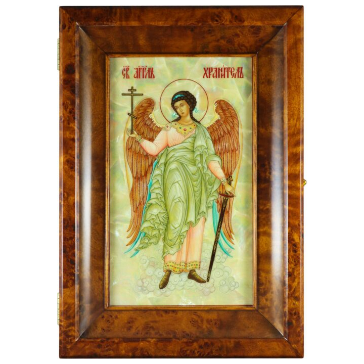Икона в киоте "Ангел Хранитель" на натуральном перламутре