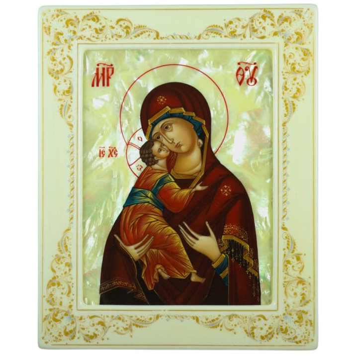 Икона "Владимирская Богоматерь" с перламутром в белой раме